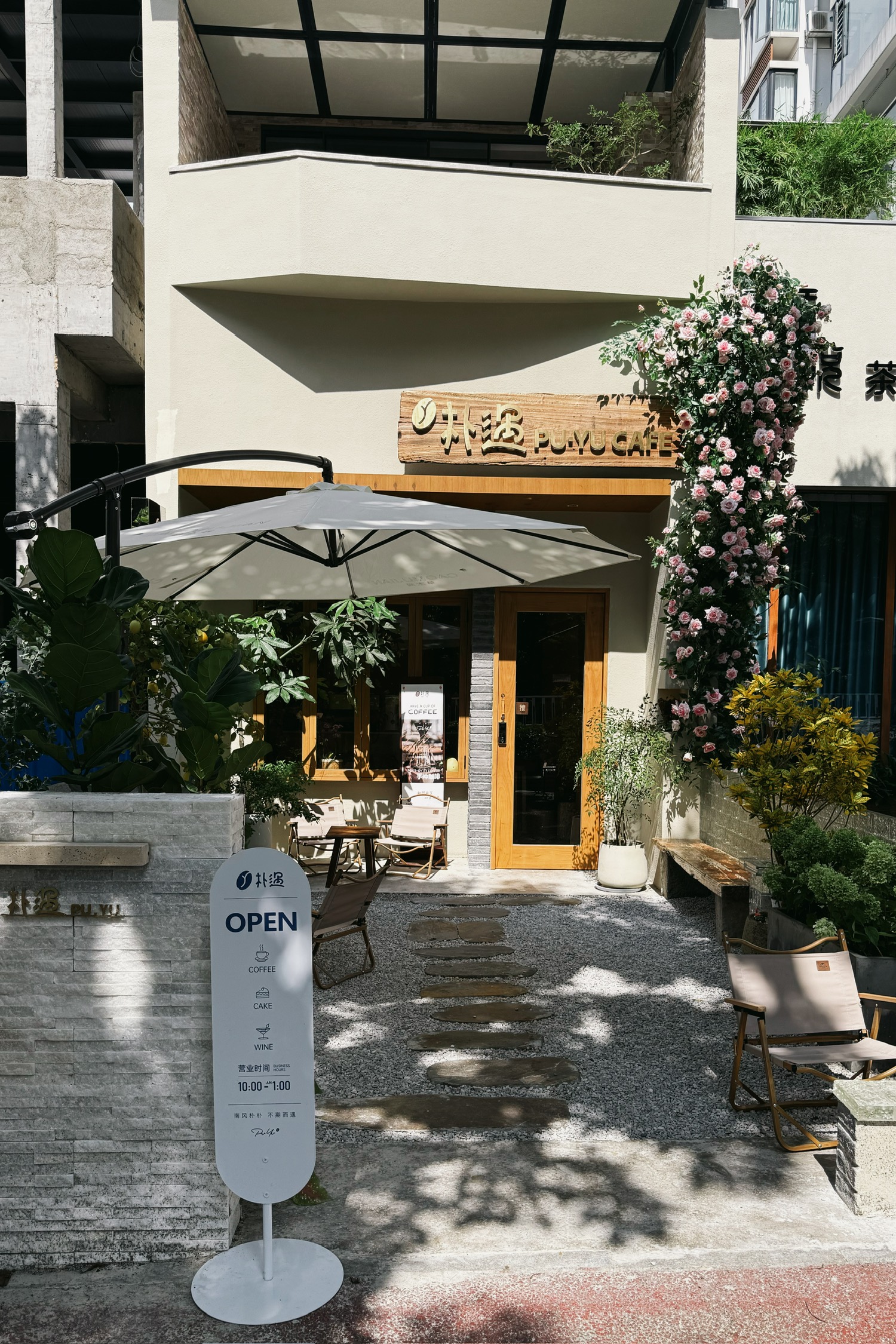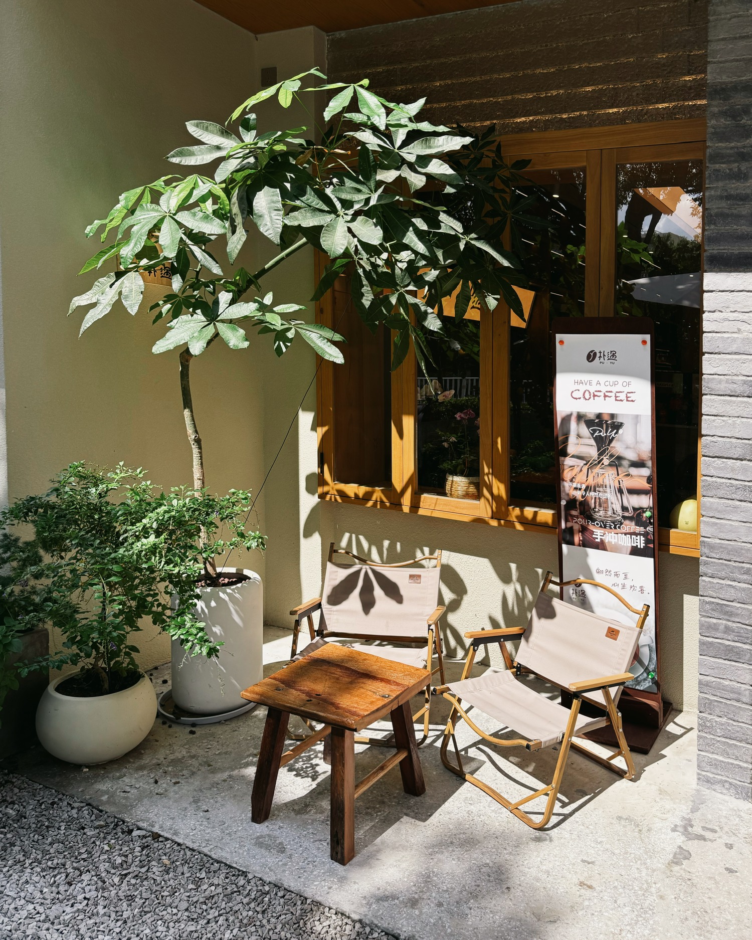 本来想去探苏州的铁手咖啡,结果沧浪亭街在施工走不进去,转头去了另一家我标记过的小山咖啡。门口就看出来是日式极简风了,还有一个想做但没做出来的枯山水庭院(?