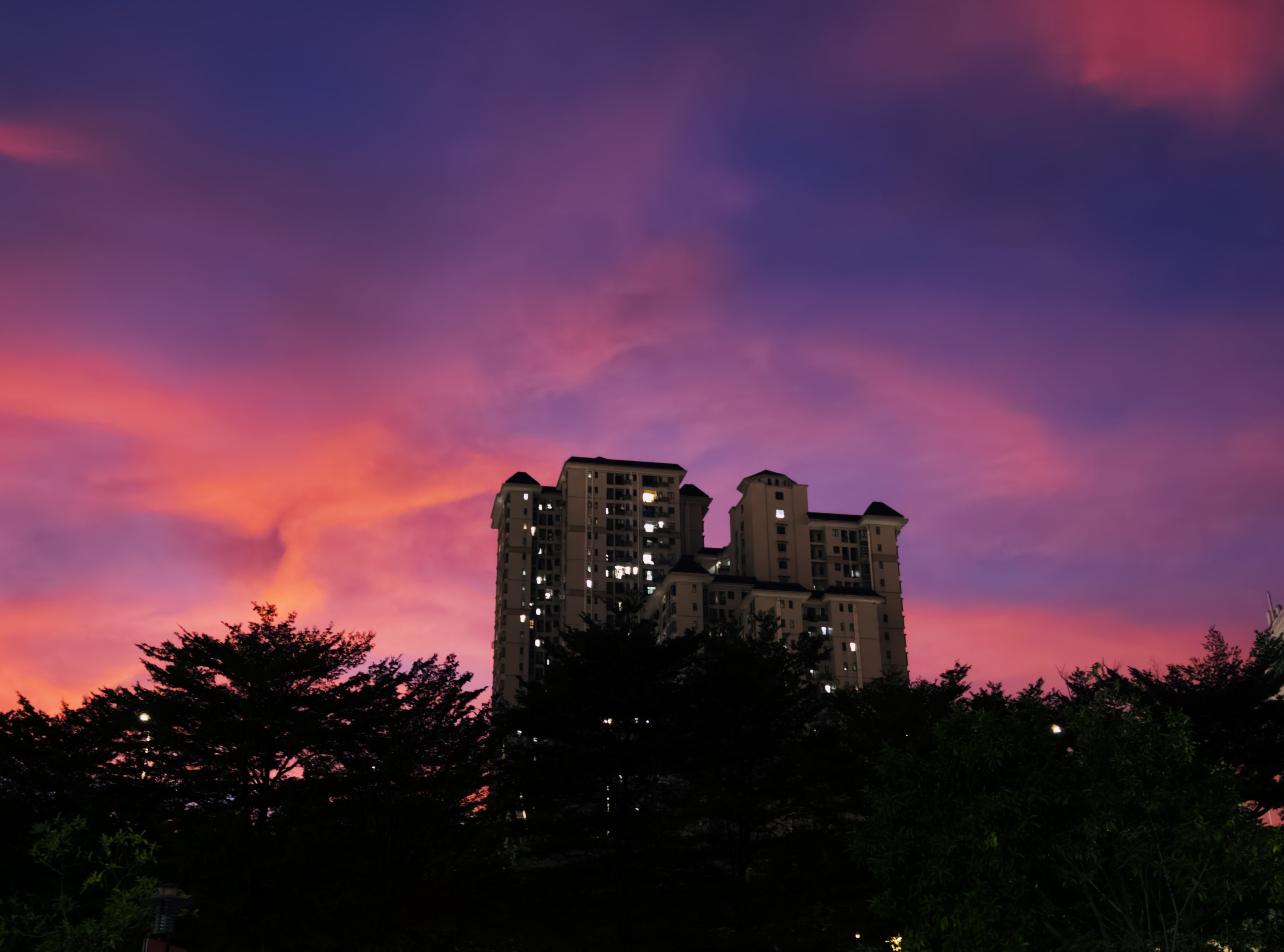 在高圆寺旮旯里艰难拍一下今晚烧红的晚霞