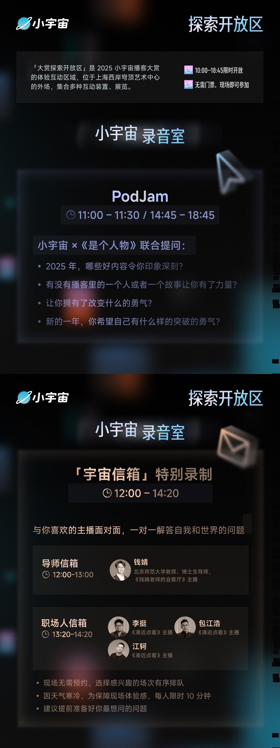 更多活动相关信息,将于2026年1月初陆续公布,我们将通过小宇宙官方账号持续释出,敬请期待。