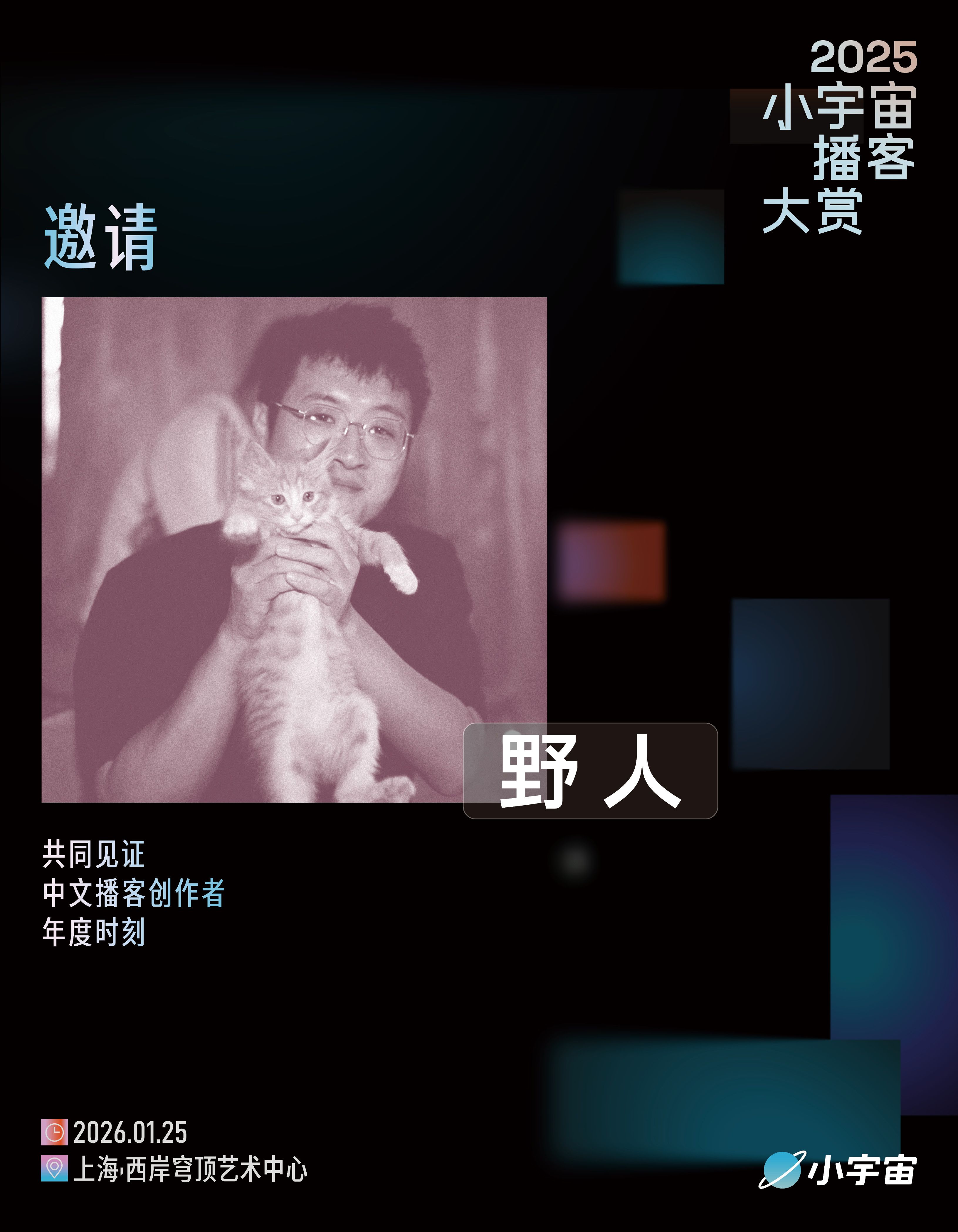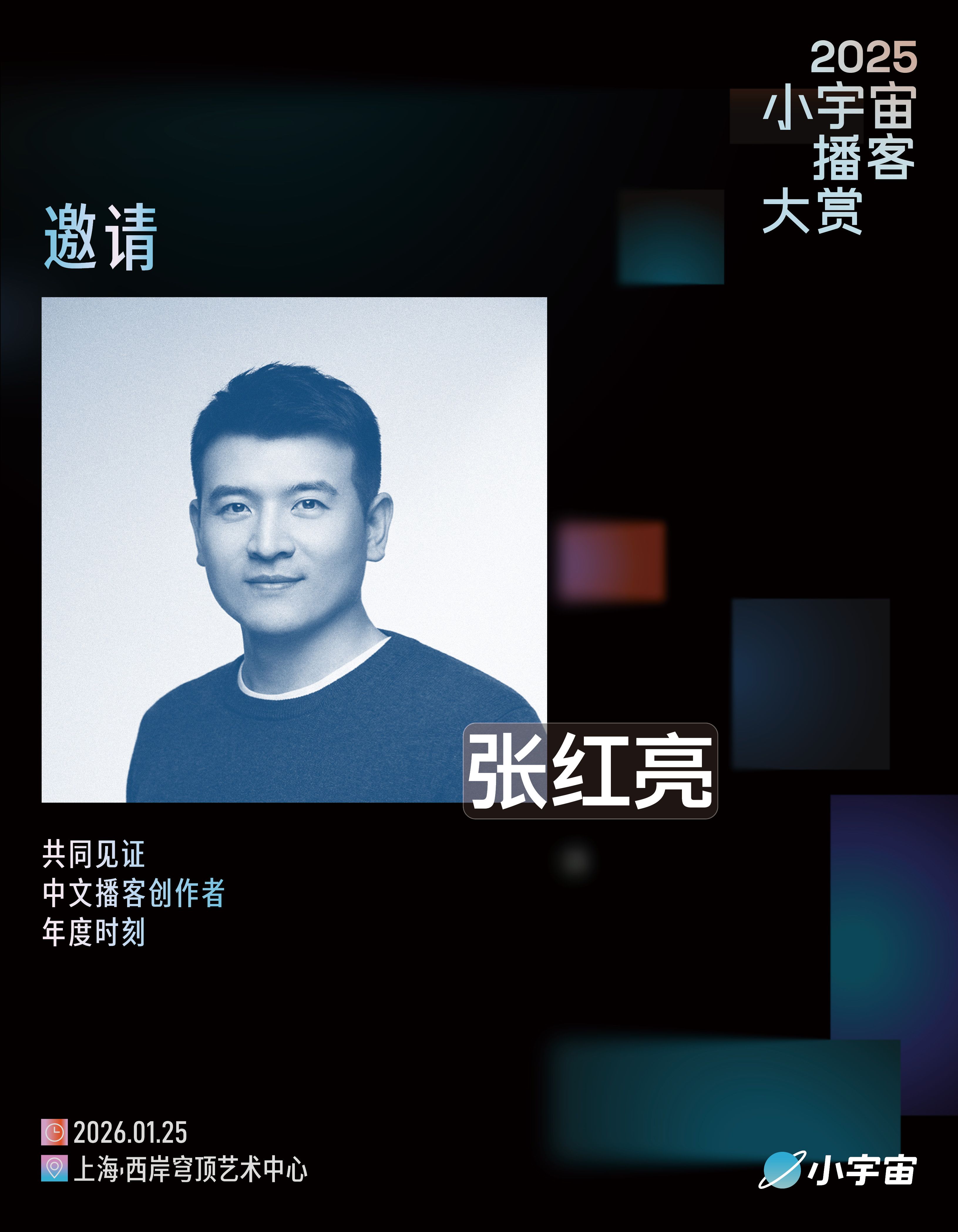 今年,大赏正式升级。我们将在2026 年 1 月 25 日,于上海·西岸穹顶艺术中心举办首场线下颁奖盛典,将聚光灯投向播客创作者,共同见证属于这一年的回响与共振。
