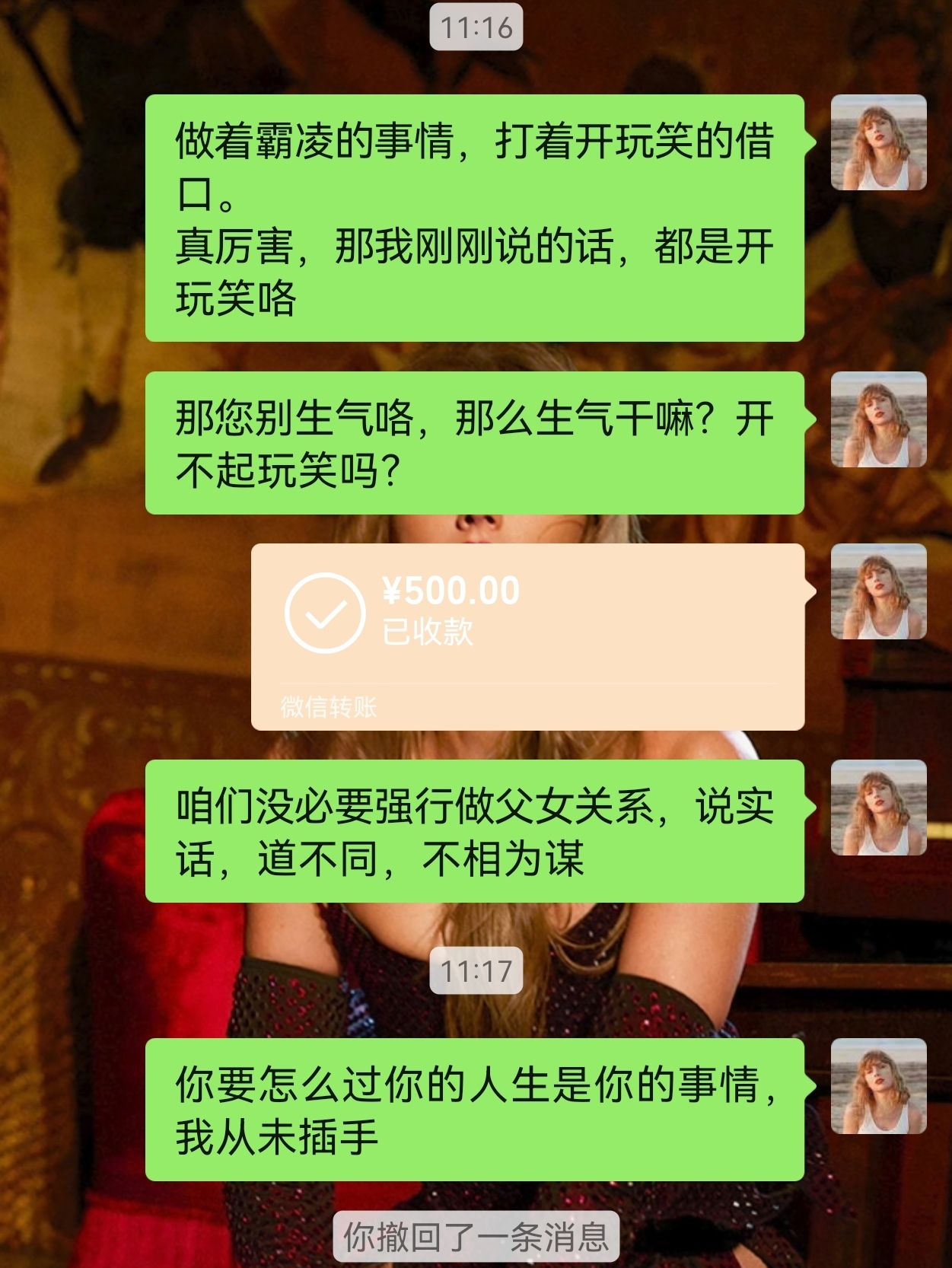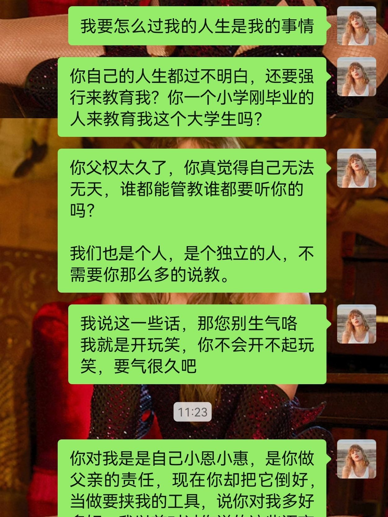 我觉得完全没办法做到不反抗。我知道心理老师教过我。当做没听过点头哈腰就好。但是他一遍一遍的教育,我就很容易应激。最后还是大应激大爆发,但是我爽了。不会觉得自己可怜,只觉得这种不舒服的关系我没必要维系。
