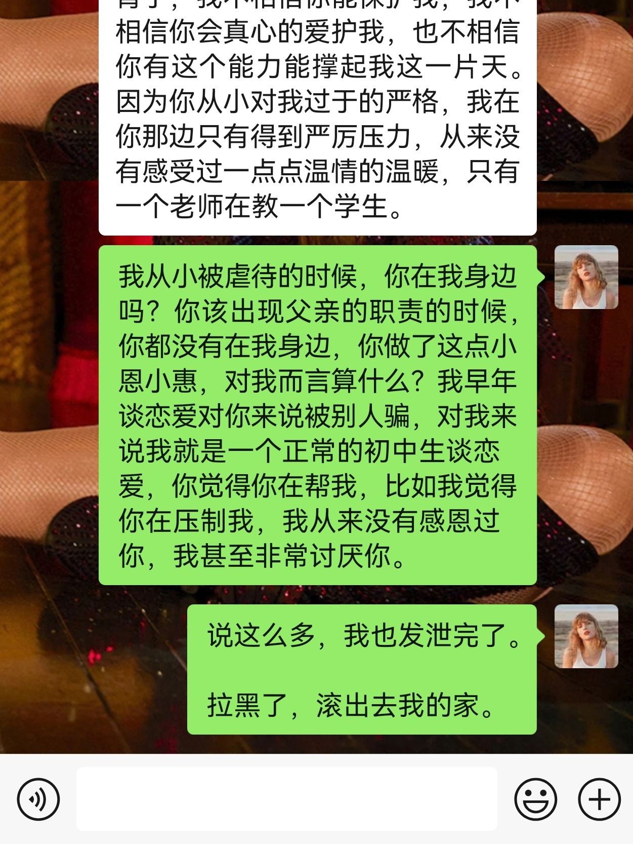 做了一件想做很久的事情断绝关系刚刚发生了争吵。就是因为相亲的事情,我礼貌拒绝了,但我爸不断地教育我。