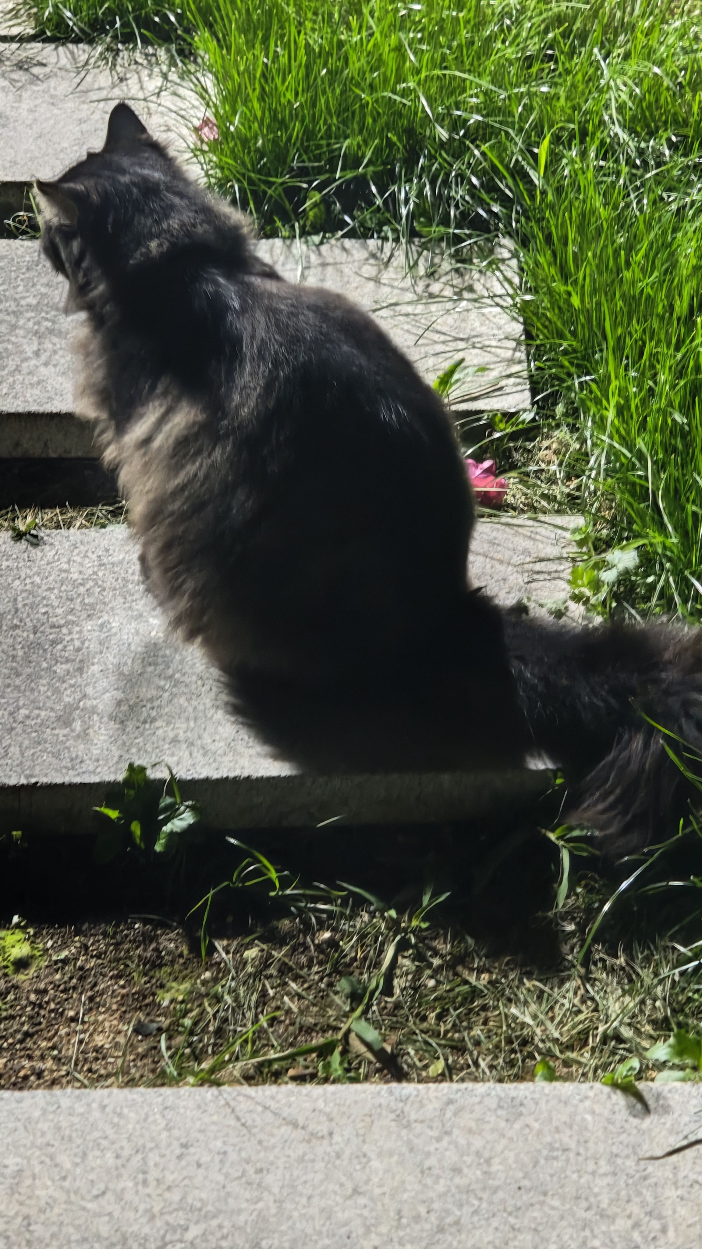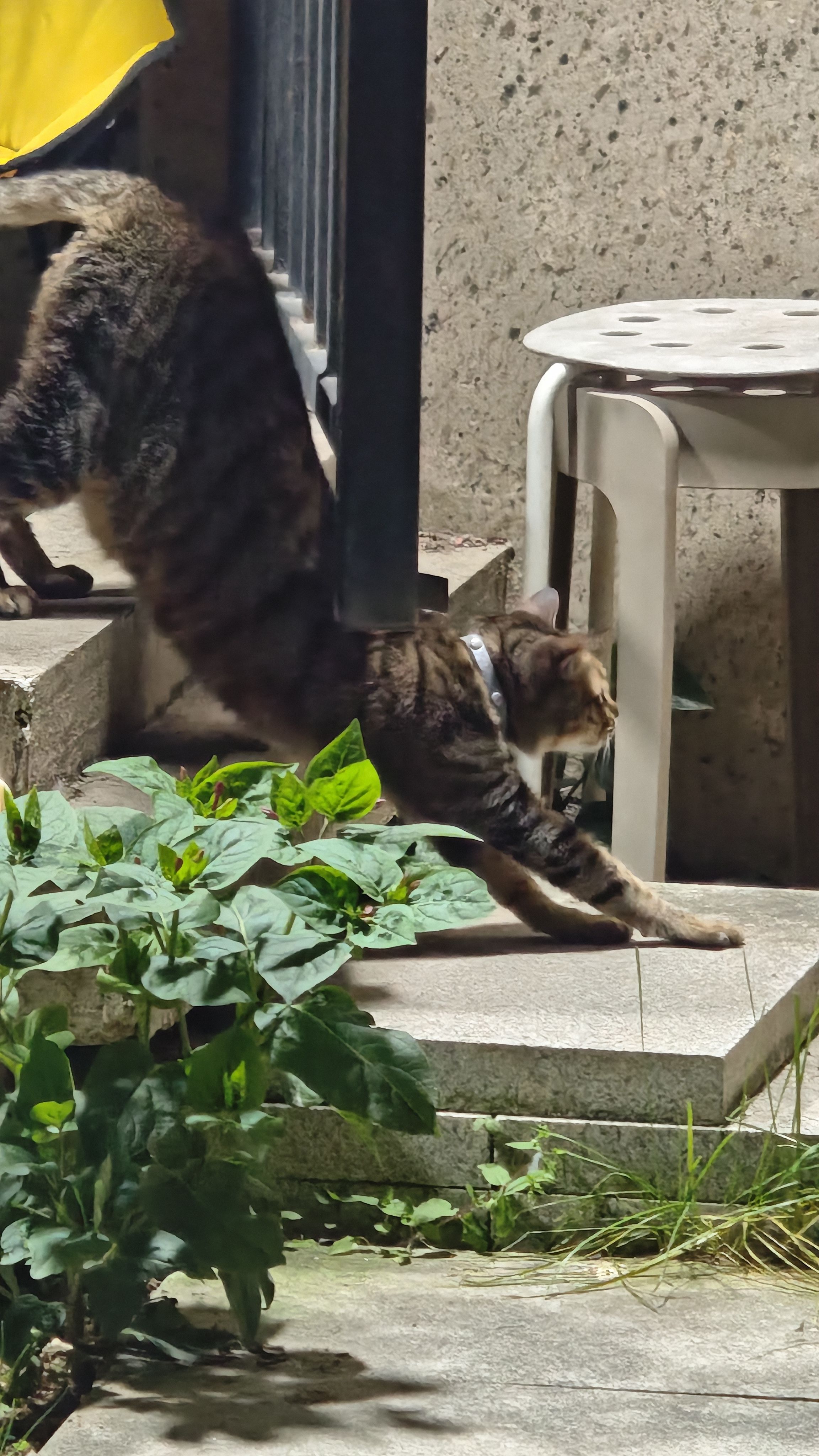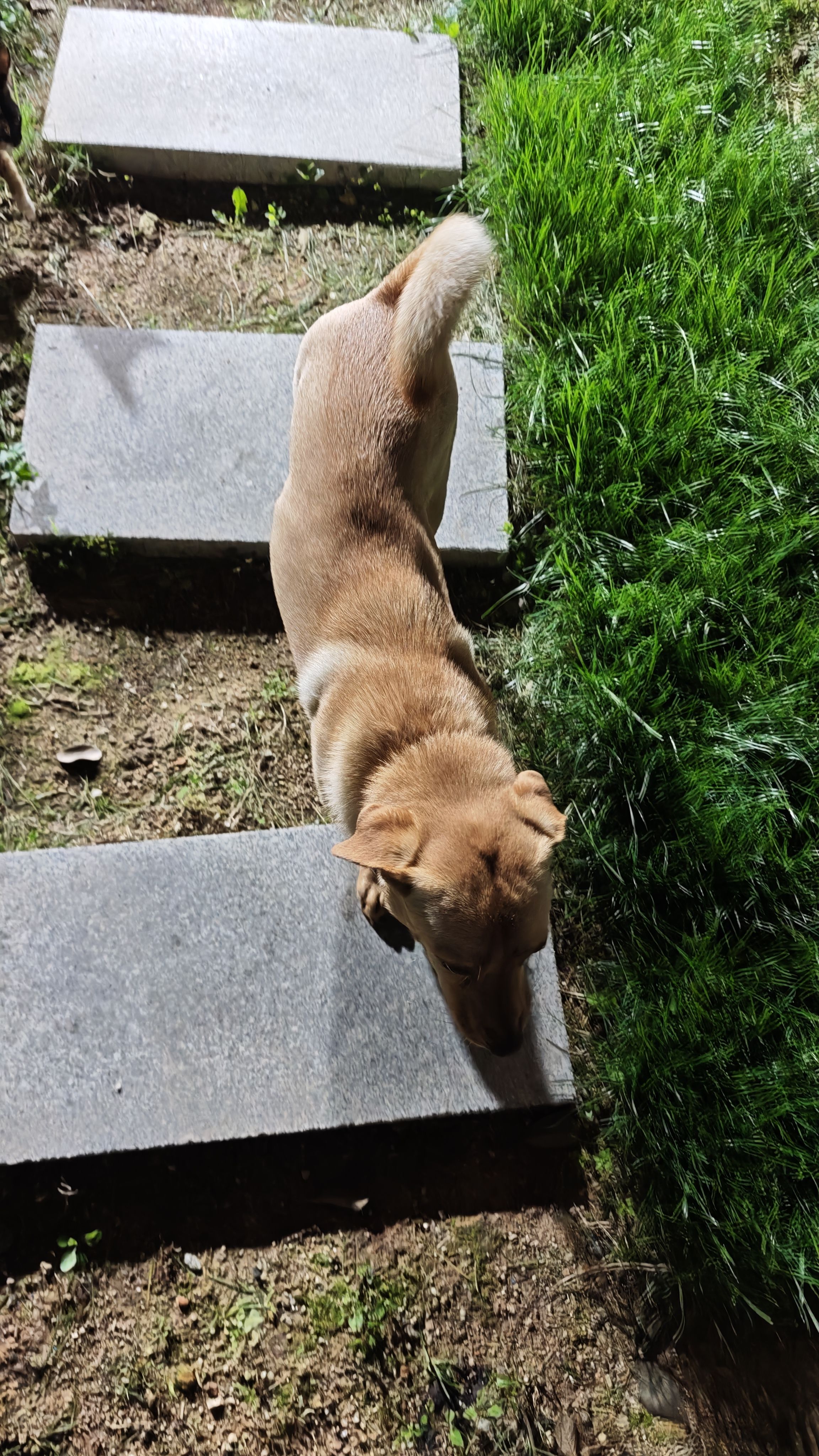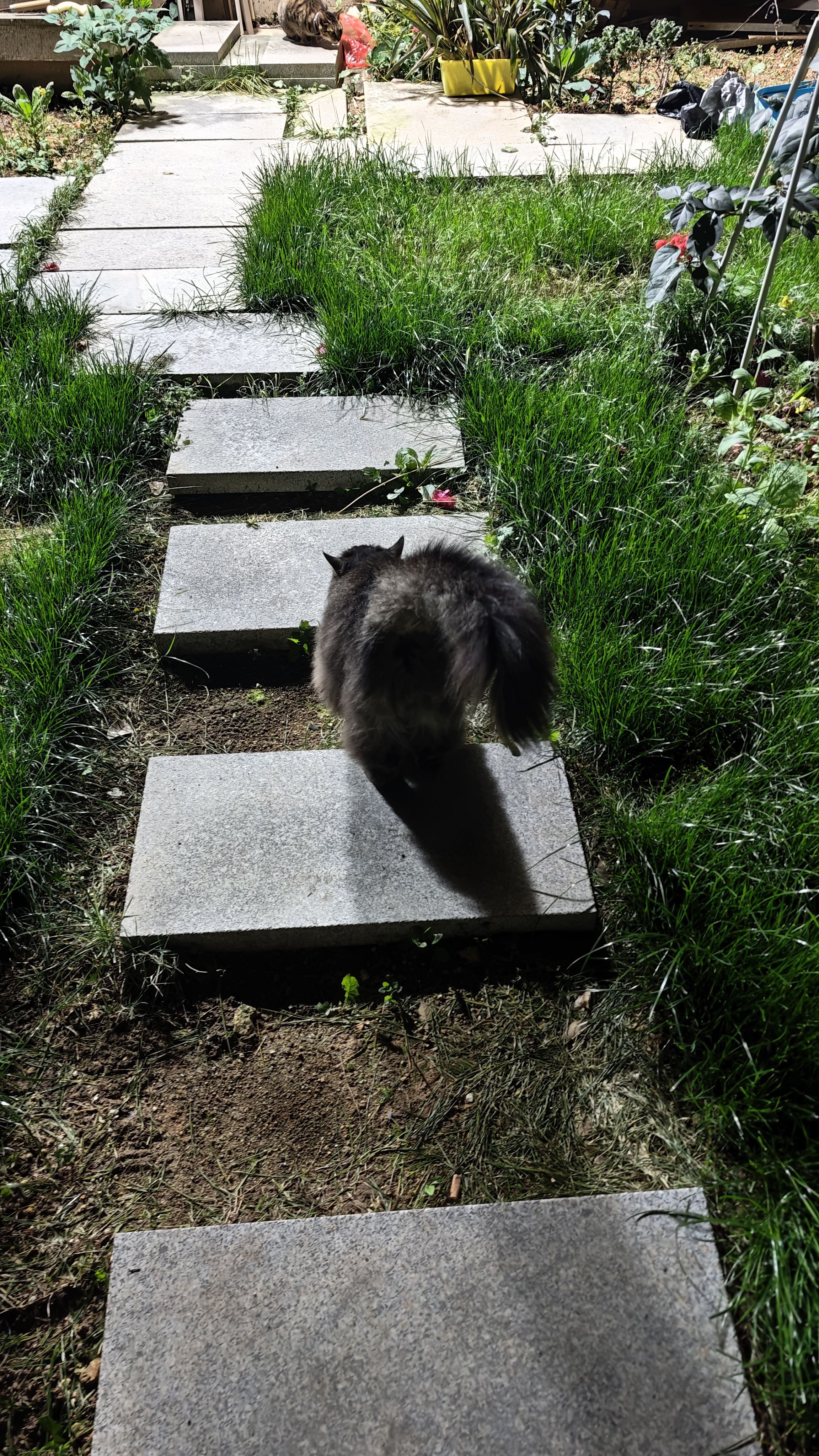 和朋友吃完饭回来,毛孩子们都出来院子里走走。