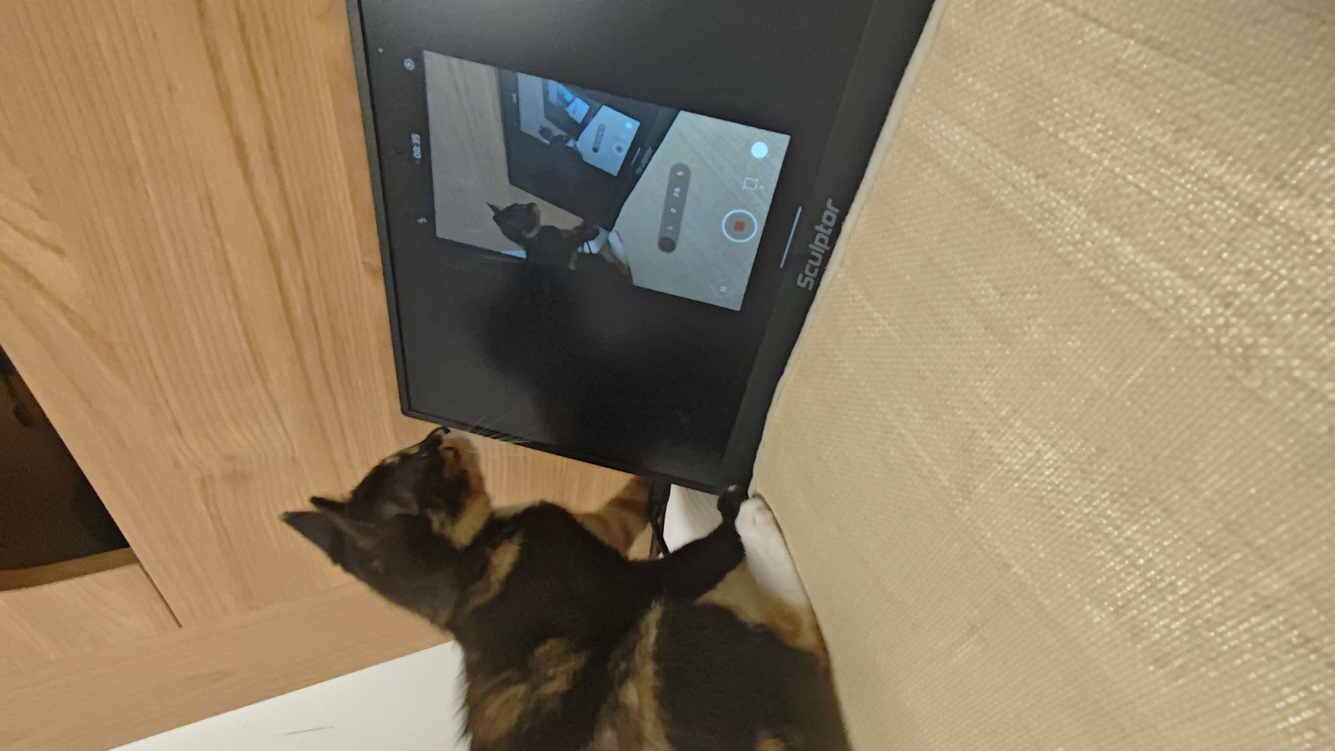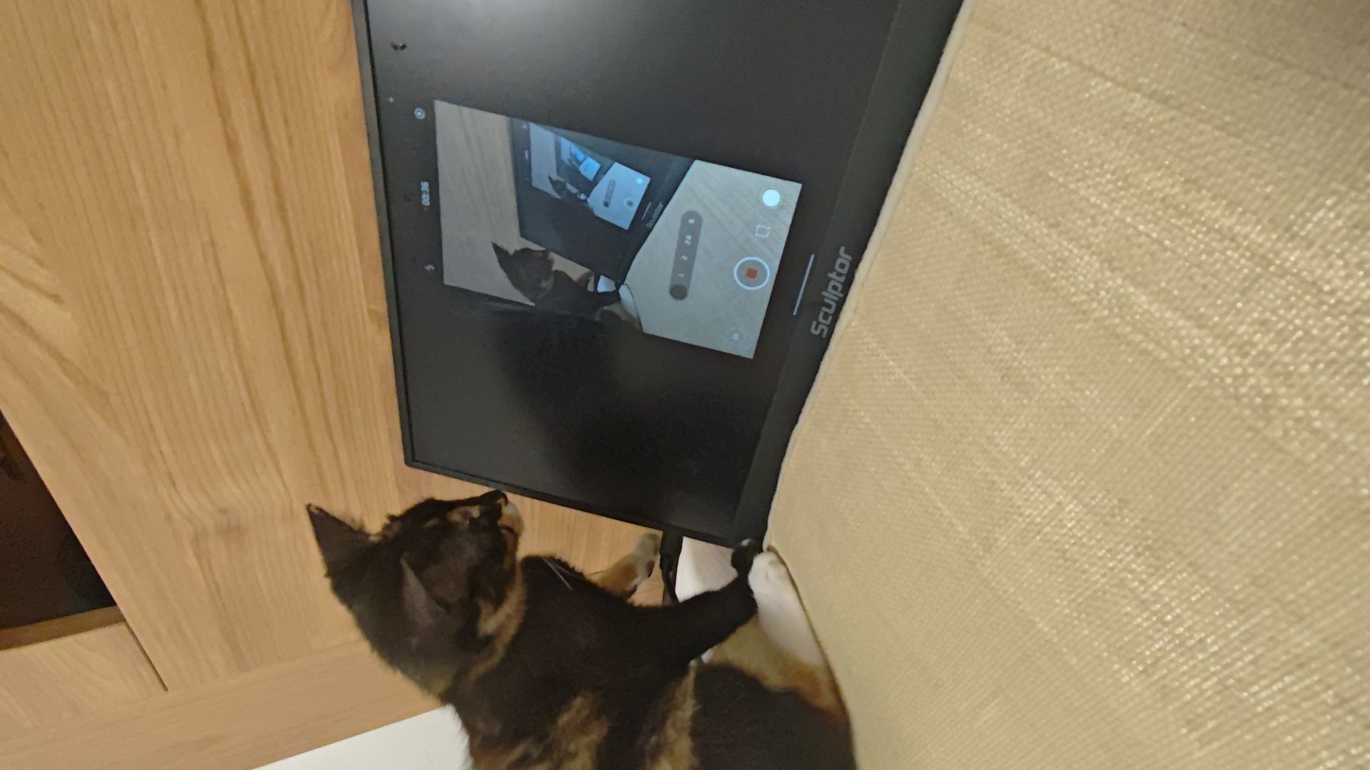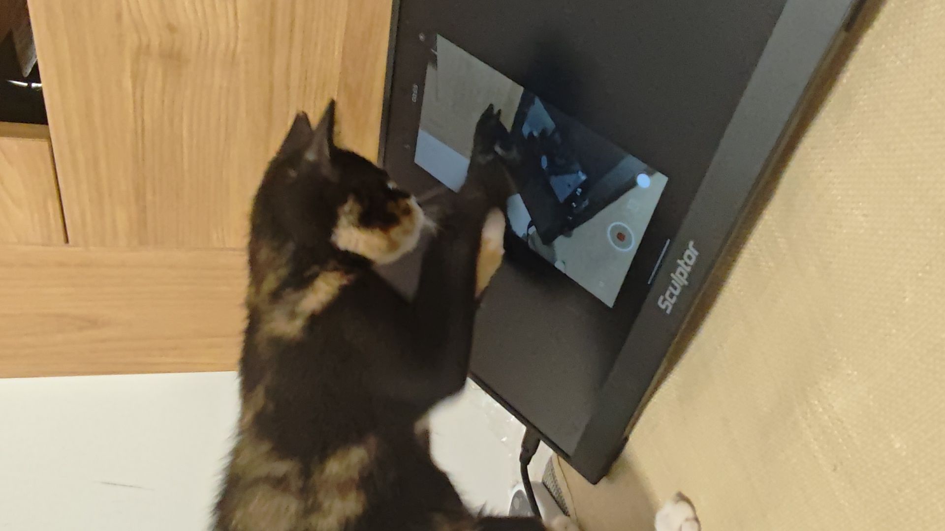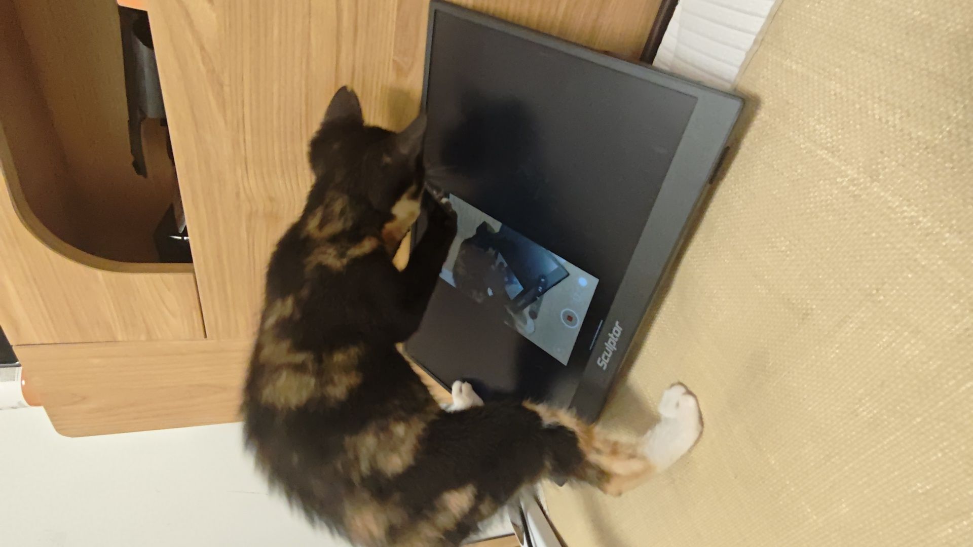 自从我弄了个便携屏,一投屏,小美就咔咔挠这块屏幕。