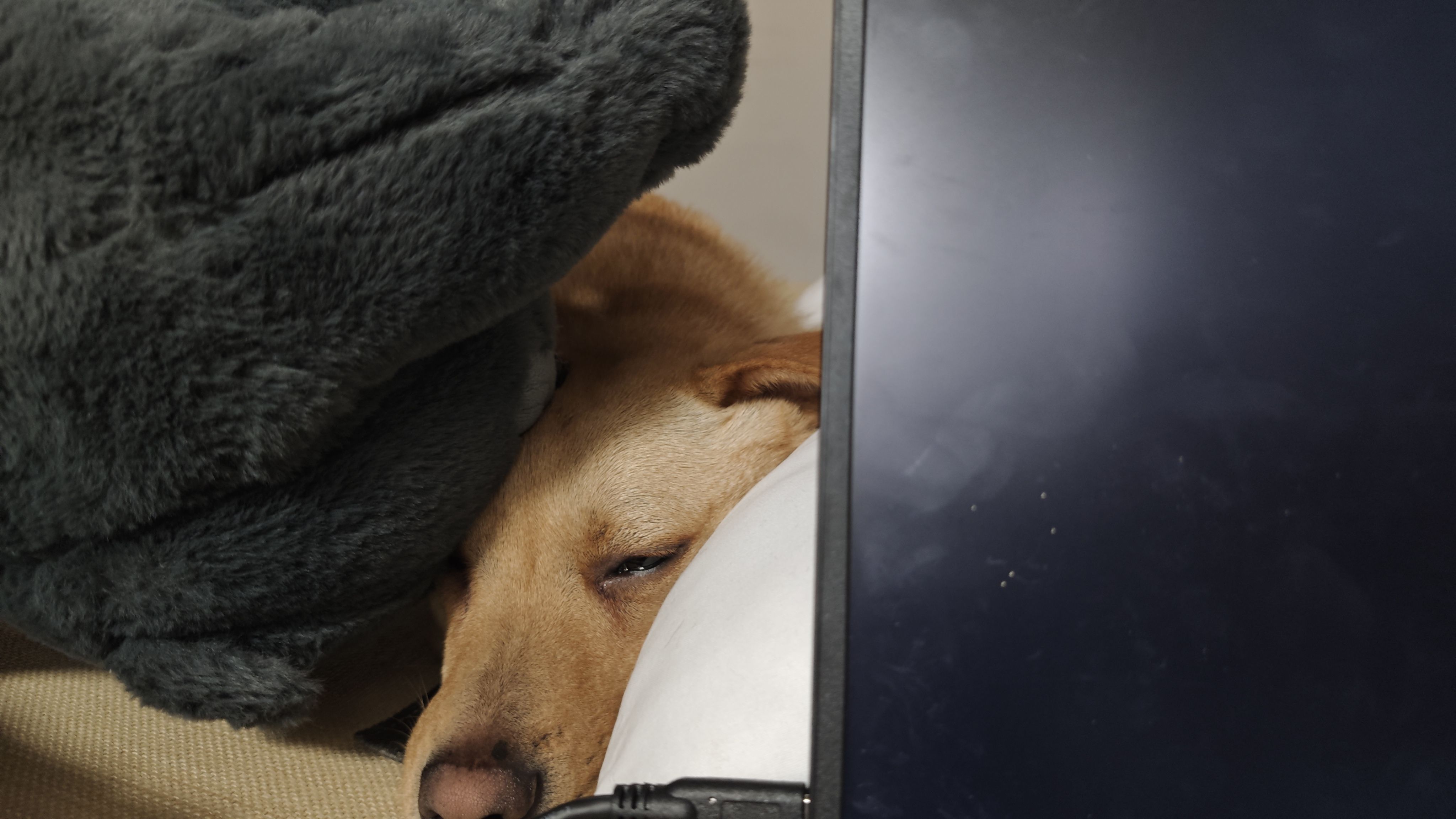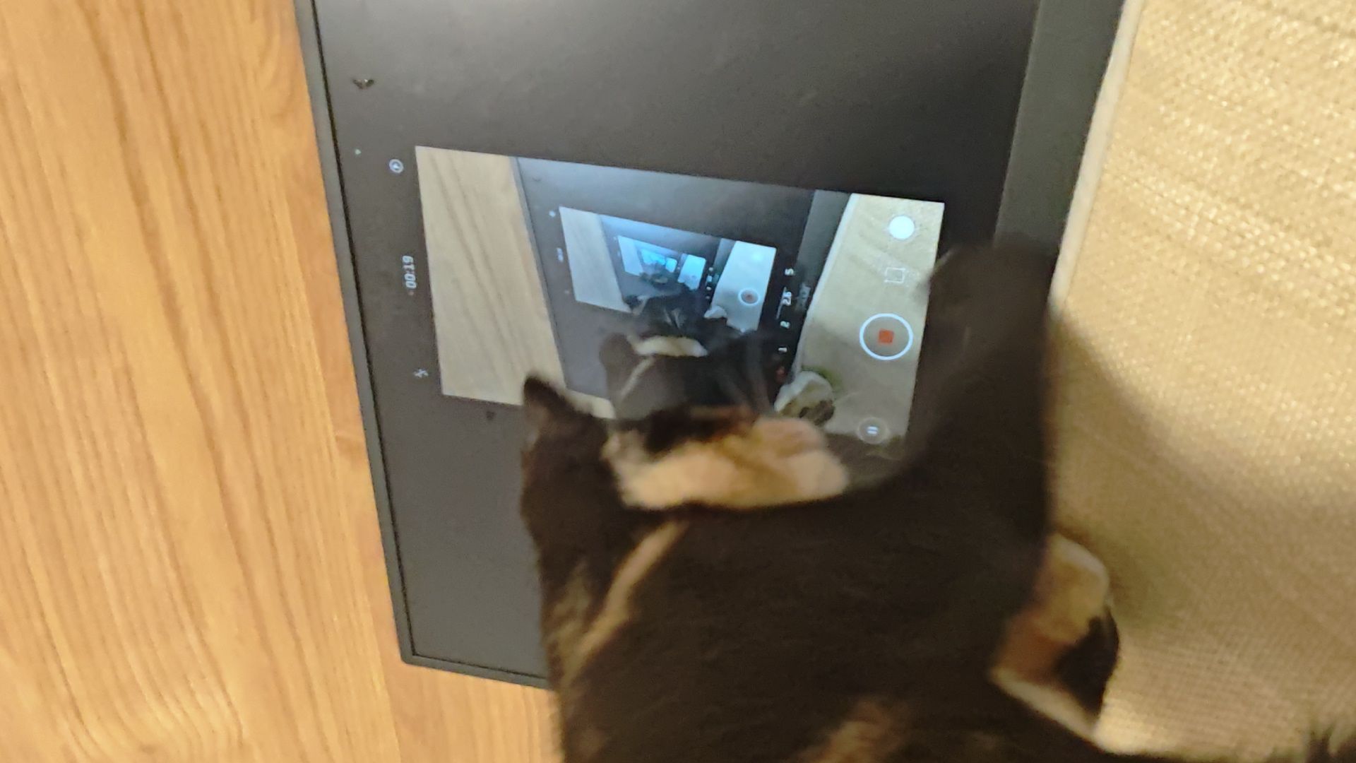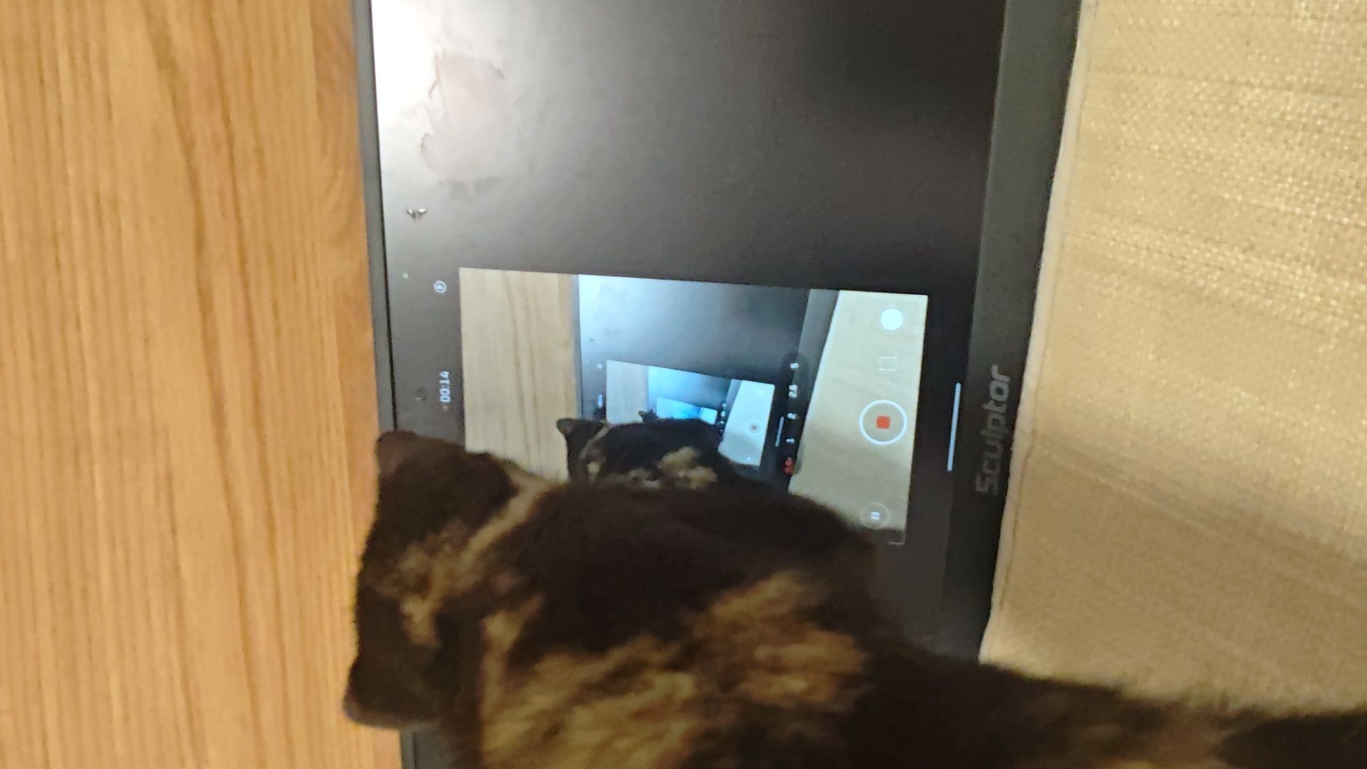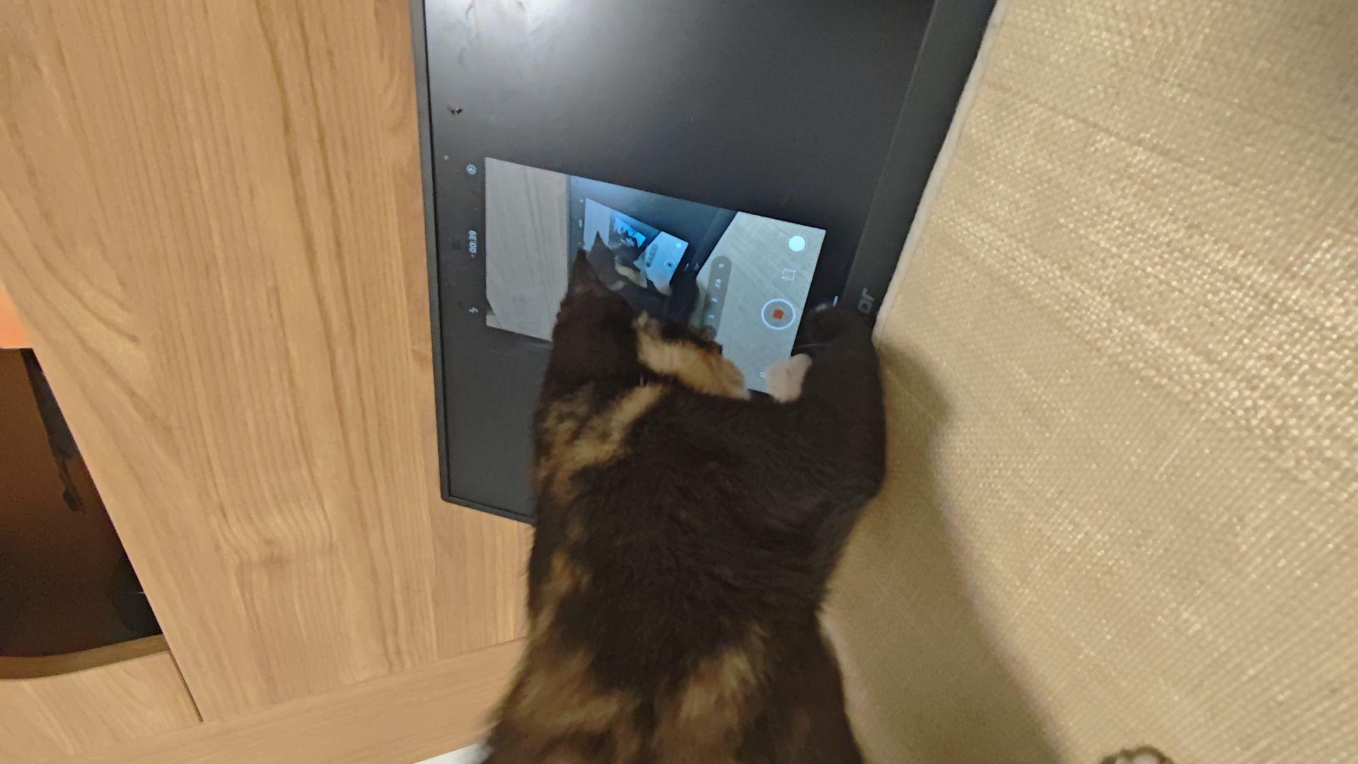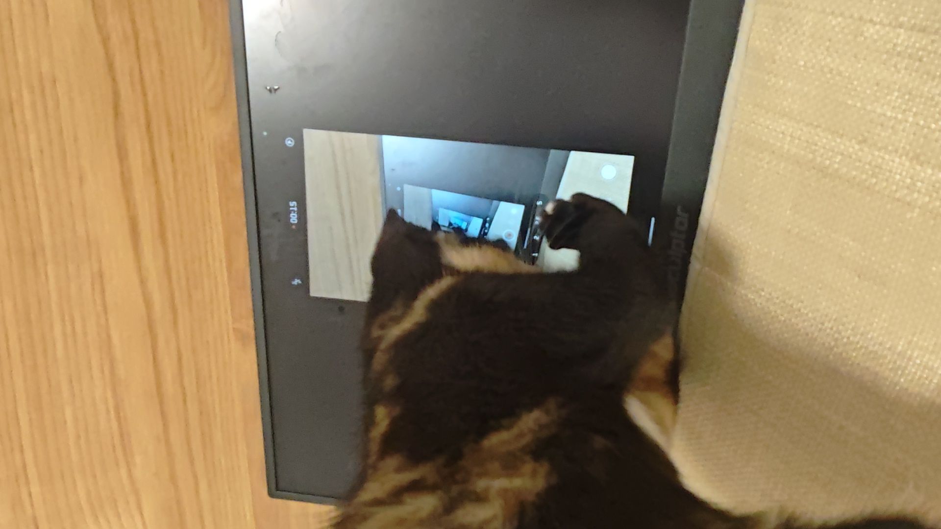 自从我弄了个便携屏,一投屏,小美就咔咔挠这块屏幕。