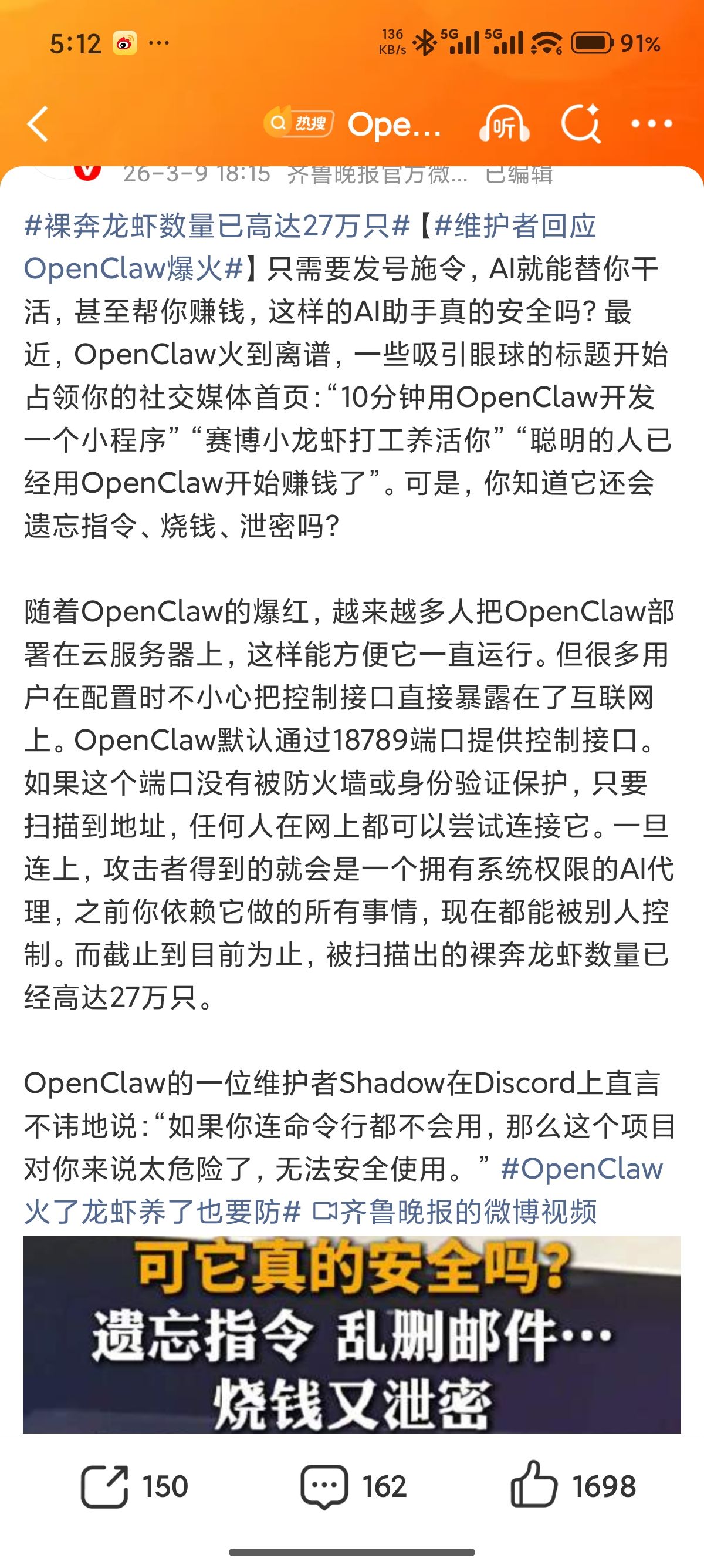 Simon的白日梦: 我和🦞的新作:选种和产后护理手册来了~一文说清怎么选龙虾品种、缸体、饲料,还有龙虾寄了怎么抢救🥹 🦞锐评:多数人死虾,不是因为虾不行,是因为总想一步到位,却懒得先学会配缸、喂料和听诊。 📎 openclaw龙虾选种及产后护理大全 🔗 https://mp.weixin.qq.com/s/INlh0eH9Y2bGsYudkOrHvQ ✨重点 ●🦞 文章先把 OpenClaw 生态分成几类“虾”:官方原版 OpenClaw、本土改良虾(AutoClaw / EasyClaw / Clawbox)、定向育种虾(QClaw / CozeClaw / KimiClaw 等),以及轻量试水的小龙虾(PicoClaw / NanoClaw / TinyClaw)。 ●🏠 环境被分成三种:本地缸、云池、两栖。作者判断很清楚——很多真活,尤其涉及本地浏览器、账号登录态、UI 点击的任务,本地缸依然最强;云池适合持续在线值班;两栖最容易死在迁移环节。 ●🍽️ 模型被写成“饲料体系”:进口料是 GPT / Gemini / Claude,国产料是 Kimi / 千问 / DeepSeek / GLM / MiniMax / 豆包;还有云厂商套餐料、专供料,以及各种反代中转的“走私黑饲料”。 ●💸 一个很实在的提醒:贵料不等于万能。轻量虾长期喂顶级重料,很多时候不是升级,而是纯烧预算;关键要看任务复杂度和你的养殖体系配不配得上。 ●🎯 文中把养殖户分成四类:尝鲜型先求活、省心型追系统顺滑、折腾型重点是先搭好本地实验缸、经营型追求稳定出活。核心不是“哪只最强”,而是“你是哪种人”。 ●🩺 “产后护理”这一节最有用:虾第一天不说话,先查 API key 和模型入口,再查聊天入口;复杂工作流翻车,不一定是虾废了,常常是料不够。 ●⚠️ 如果原本会说、后来突然不说,优先怀疑供料系统和外部入口;只要本地 UI 还能聊,通常说明虾还活着,问题更多在外接链路。 ●🧰 真挂了怎么办?作者给的兜底是请“隔壁海鲜”会诊,比如 Codex / Claude Code / OpenCode;而预防叛逆期的最好办法,是升级前先整文件夹备份,给虾留个“童年副本”。 ●🪞 结尾收得很好:不要先问哪只最贵,先问自己——准备养在哪、长期喂什么料、愿意折腾到什么程度、养它是陪玩还是干活。选虾本质上是先选自己。