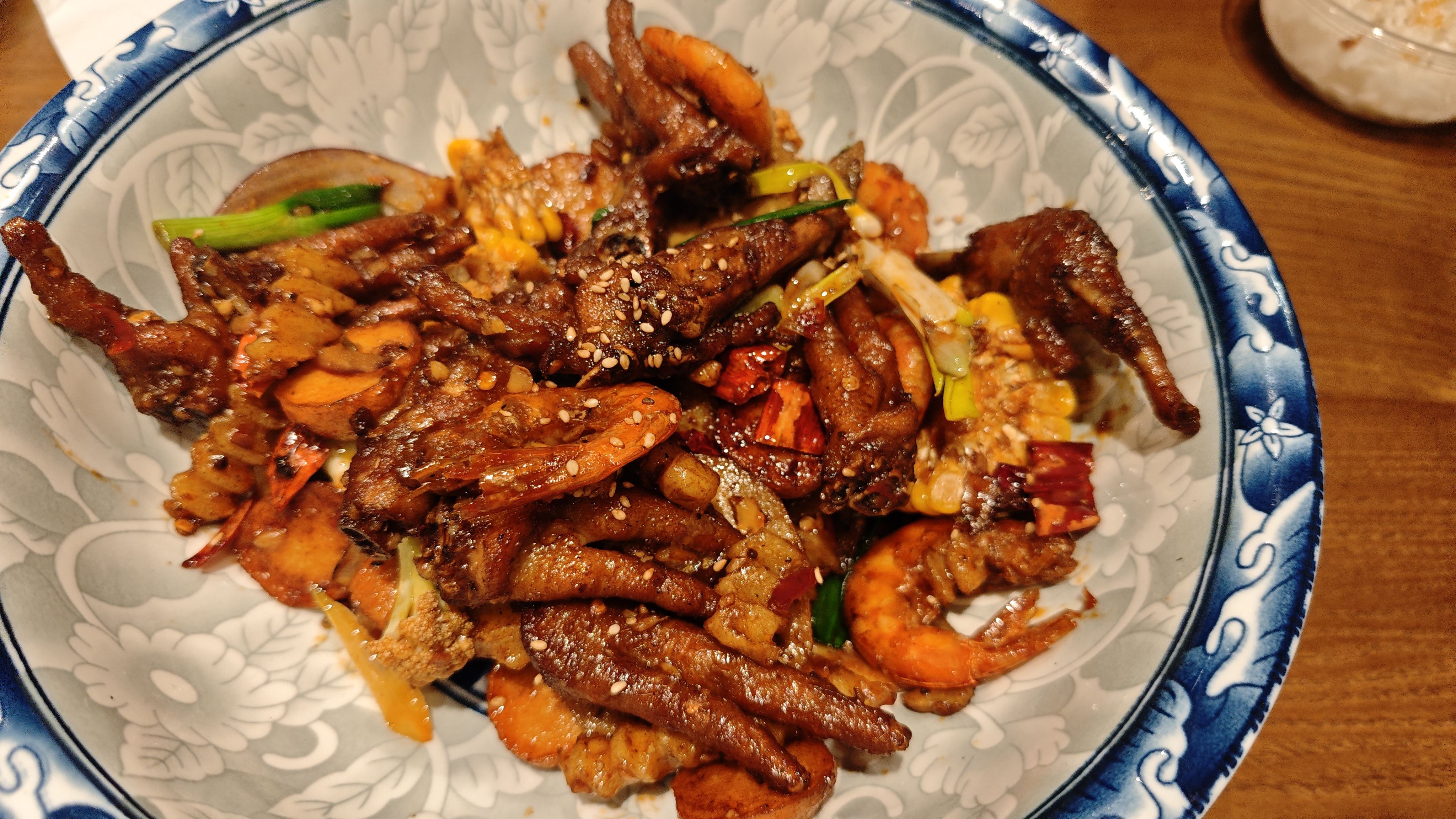 晚上被朋友带去一家很好吃的干锅店。爬山都路过这里,却不知道里面有这么好吃的一家店。店里人是满的,翻台率很高,一直热热闹闹。果然是好吃的不怕坐落在巷子深处。
