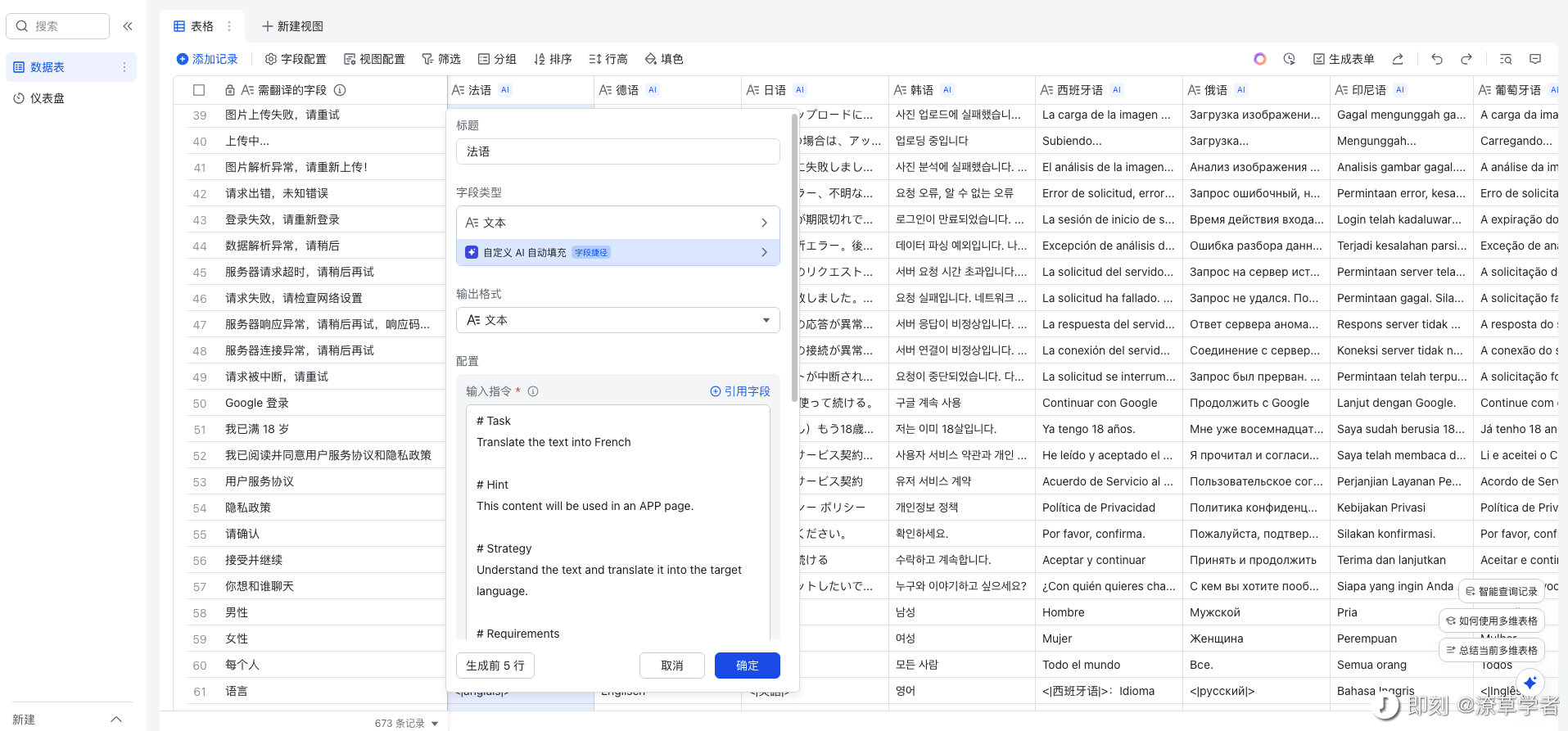 而且得益于字节整个产品的生态,在多维表格里可以使用飞书多维表格中丰富的插件生态;可以接入豆包模型 api,使用 AI 来批量处理数据(P3);可以直接调用 Coze 的工作流。