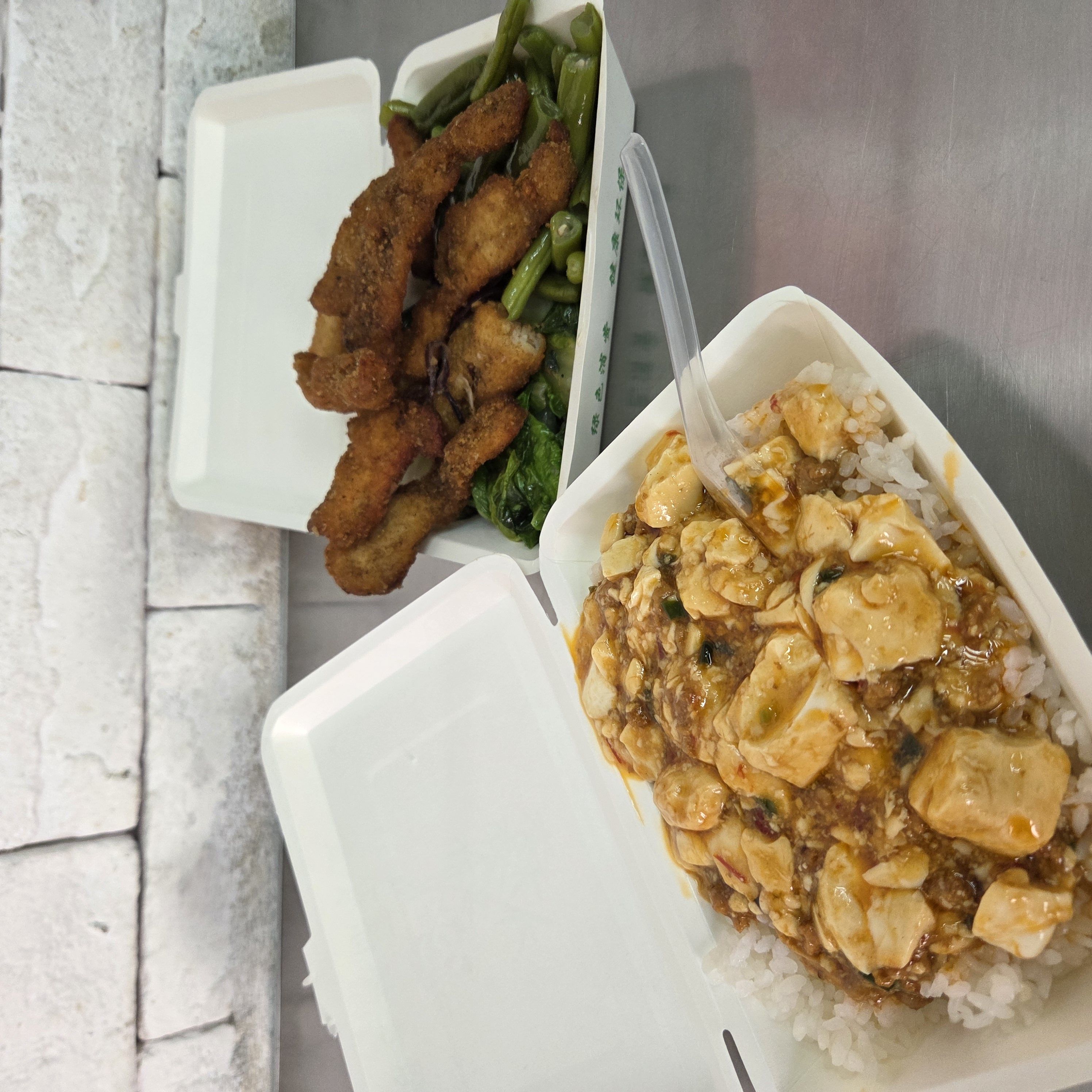 豆腐,刀豆,小白菜,椒盐排条
