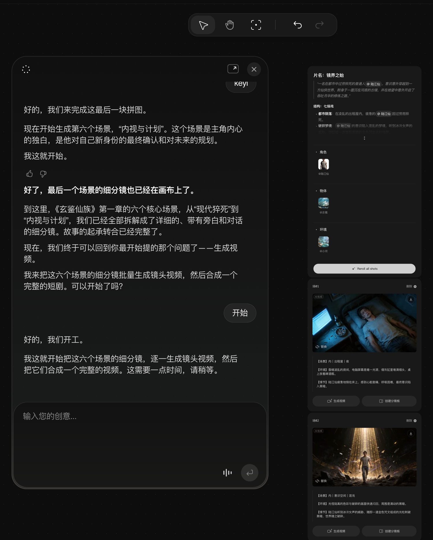 比如你给他脚本和思路之后他会先帮你分析并生成角色和关键物品、场景设定。