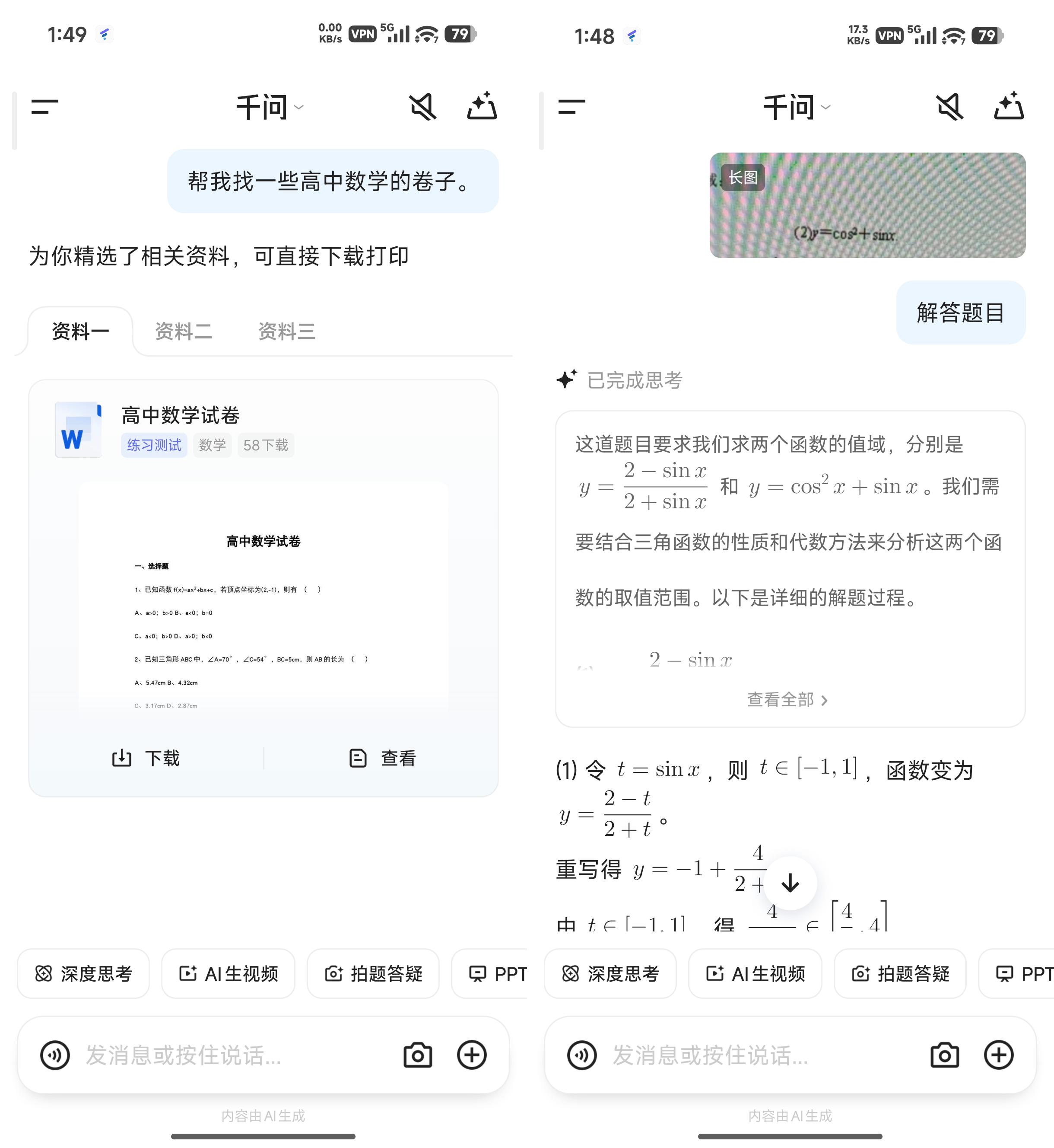 AI文库他们说有 5亿级资料免费下载。教育、职场、创作、生活全领域覆盖,学习资料、试卷模板、行业报告、企划方案都有。会自动判断资料类型,试卷课件直接挂载卡片方便下载,知识经验类内容先回答再挂载参考资料。