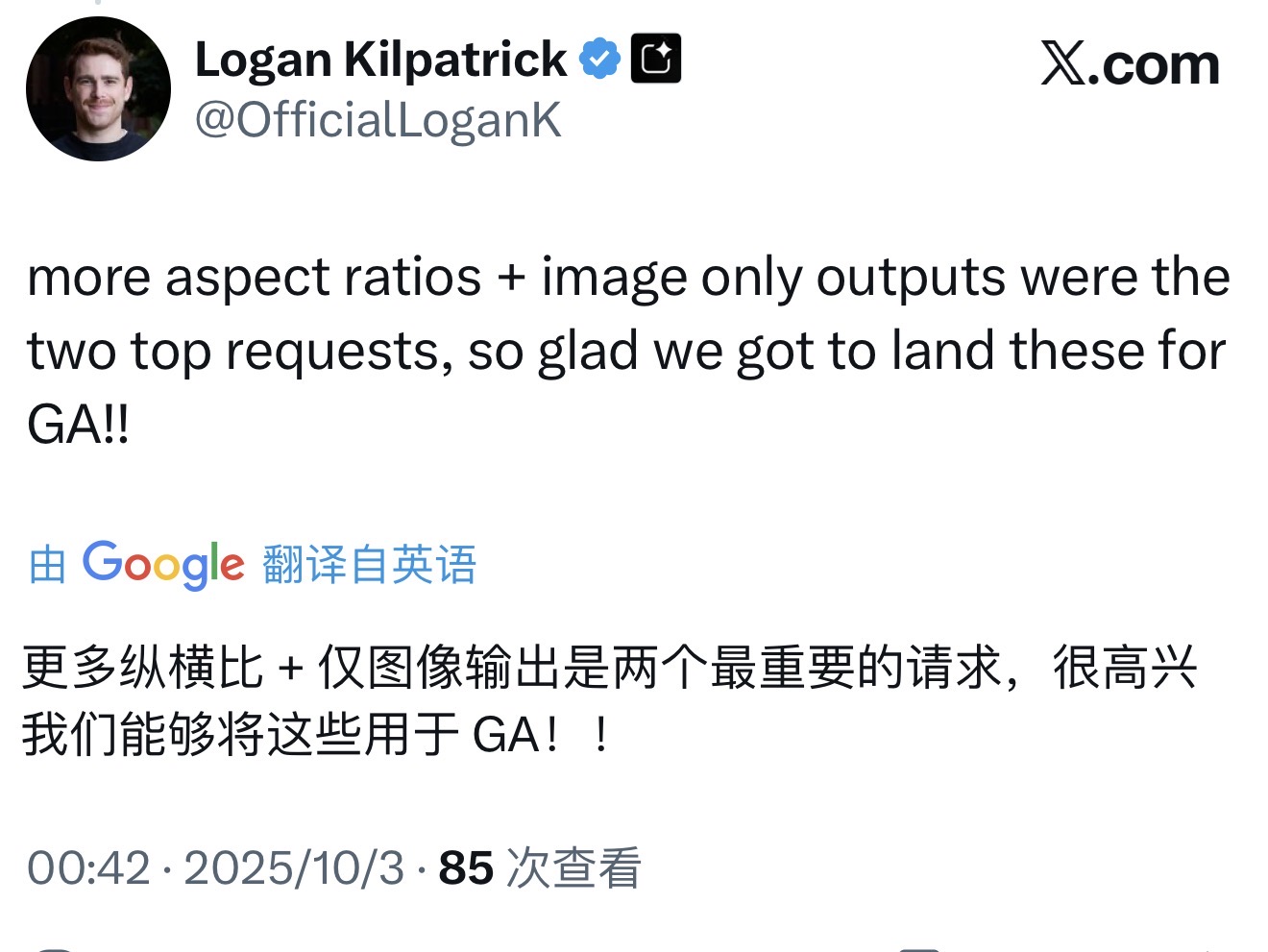 Nano banana 终于支持指定输出比例了,一共可以指定10种比例,常见的都支持
