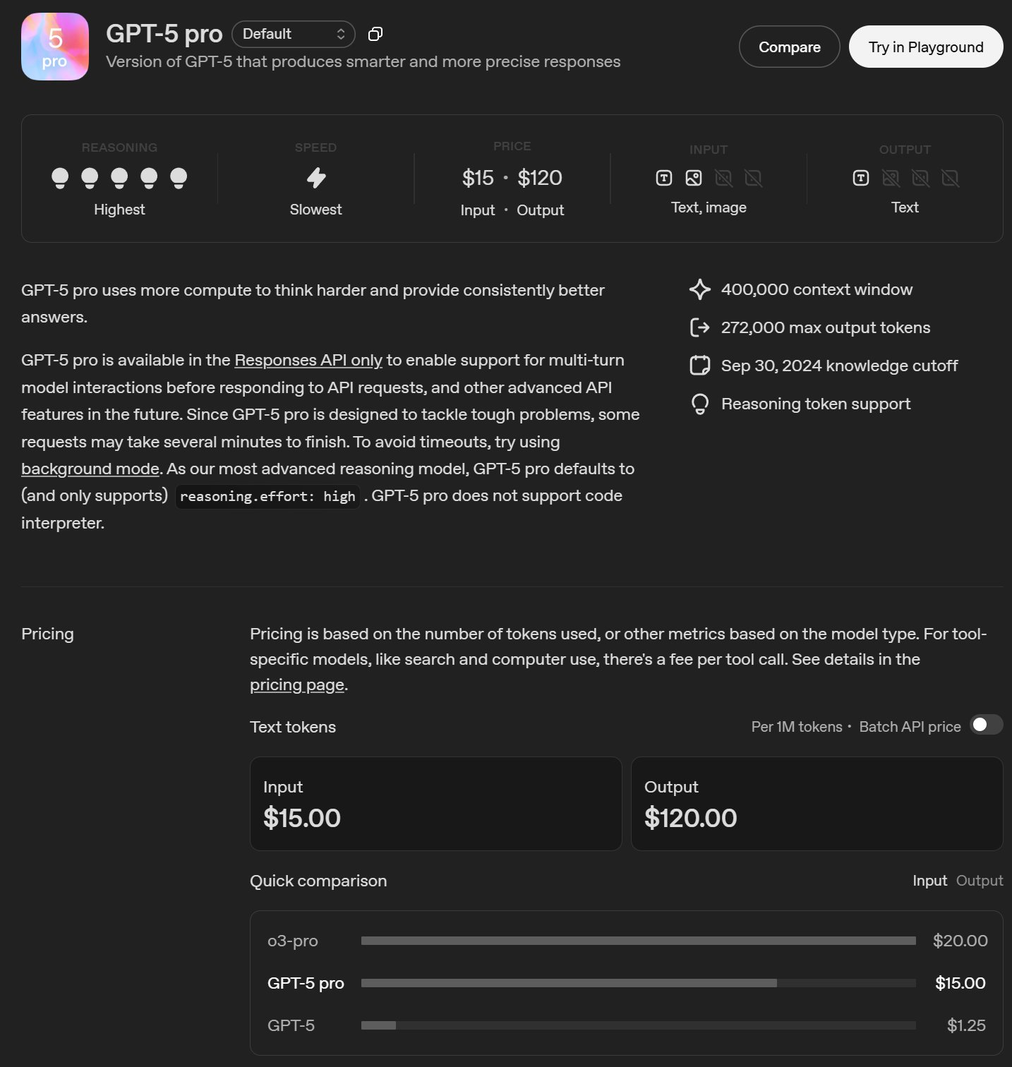 GPT-5 Pro 百万 Token 输出价格高达 120 美元