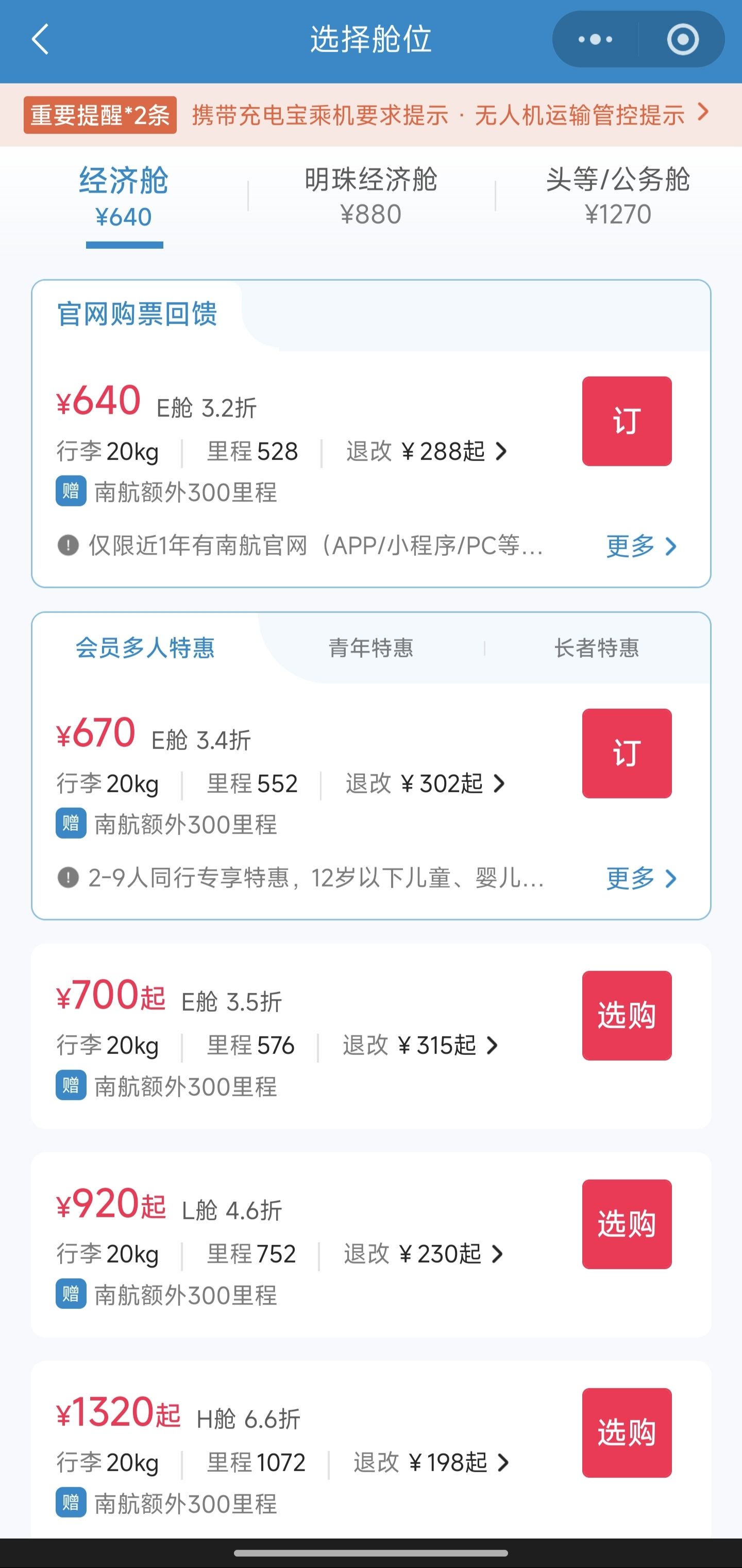 真怀疑南航小程序下单有问题,奔着公务舱去的,我手再抖也选不了这1320的H舱啊😂,维权ing!