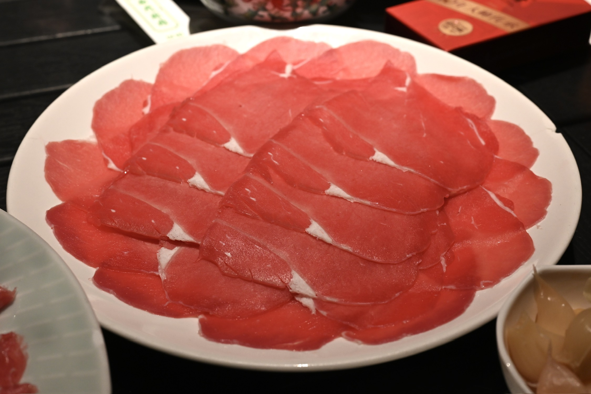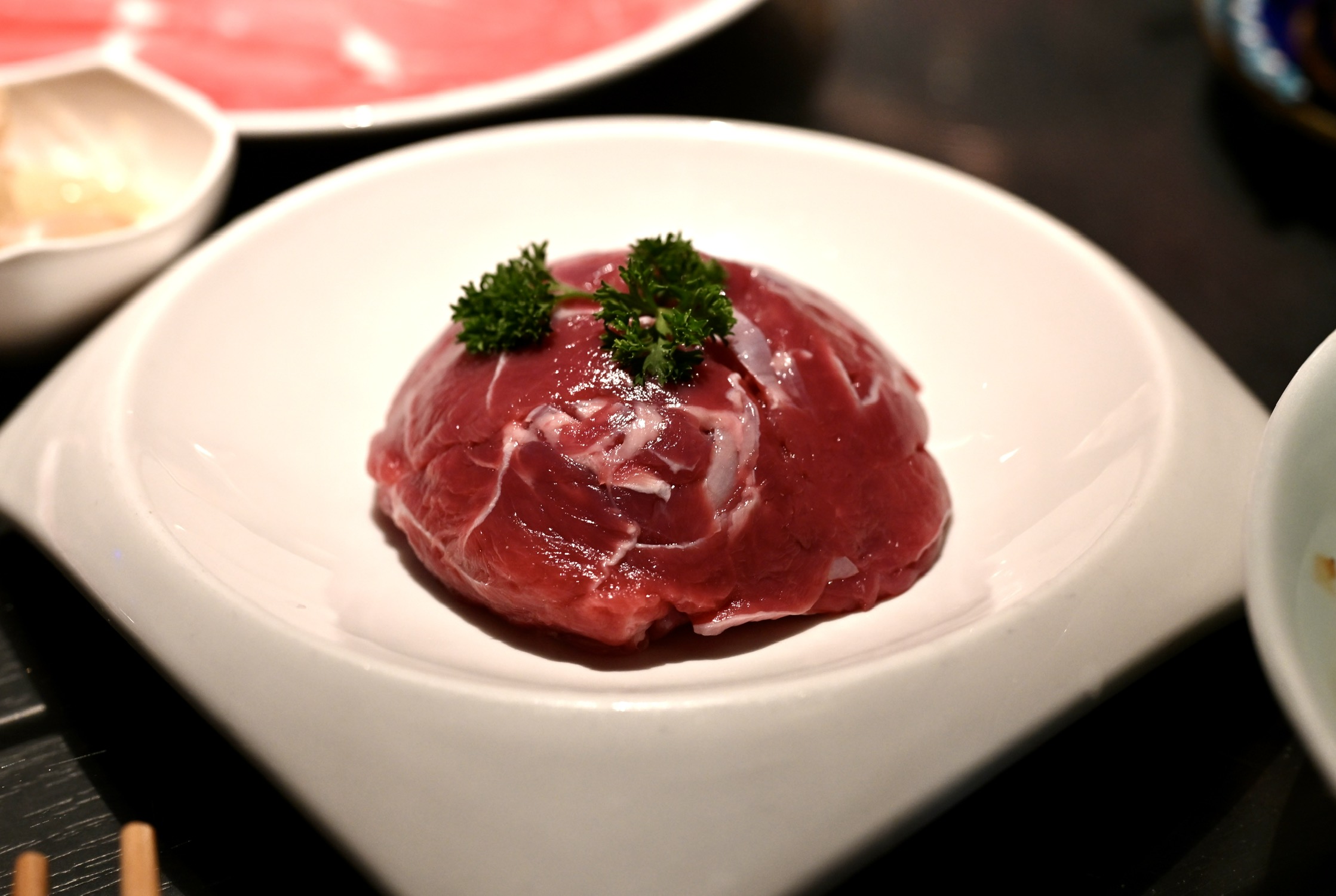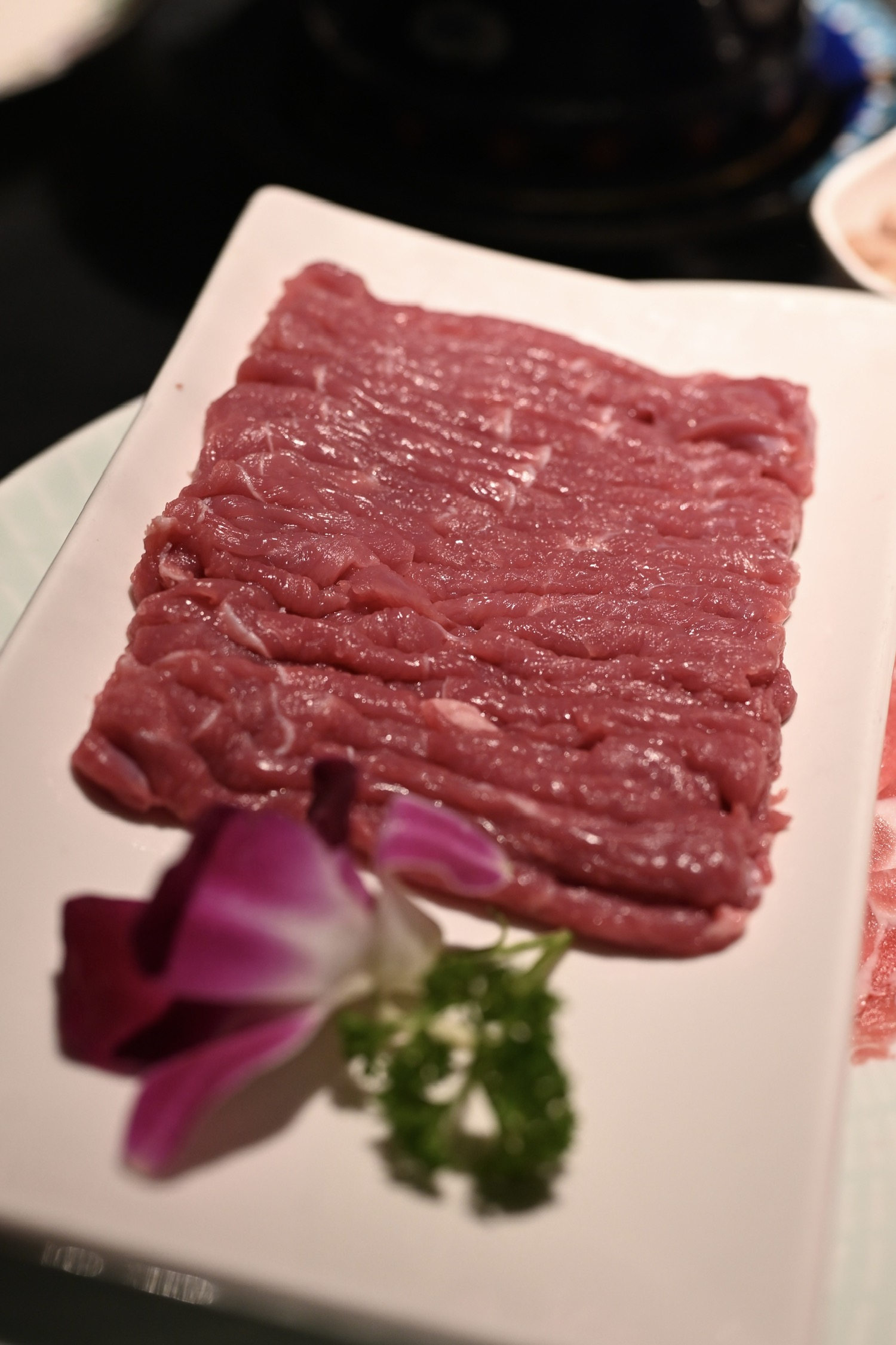香水莲花,作为头汤,在高汤冲泡下莲花析出苦味,这微苦的映衬下,菌菇汤头更显鲜甜。