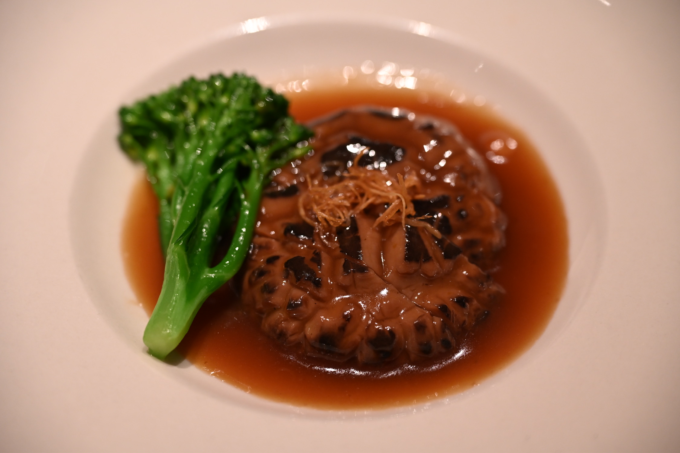 冬菇花姑,作为一道隐藏菜,全素的芡汁却呈现出鲍汁般咸鲜香甜的风味,冬菇便像是弹嫩的三头鲍,让人印象深刻。