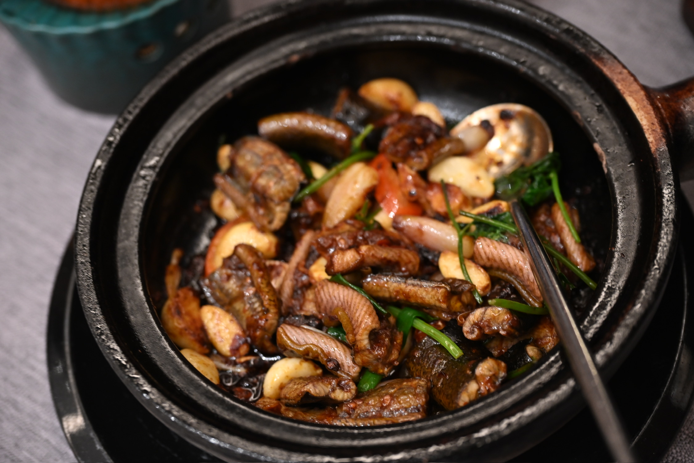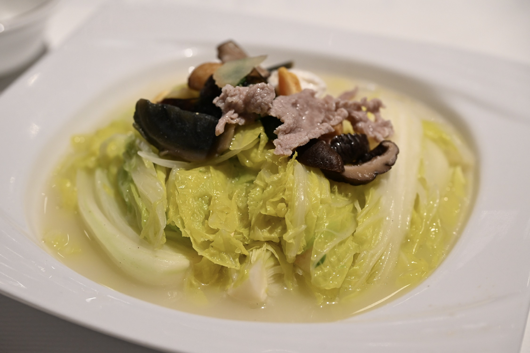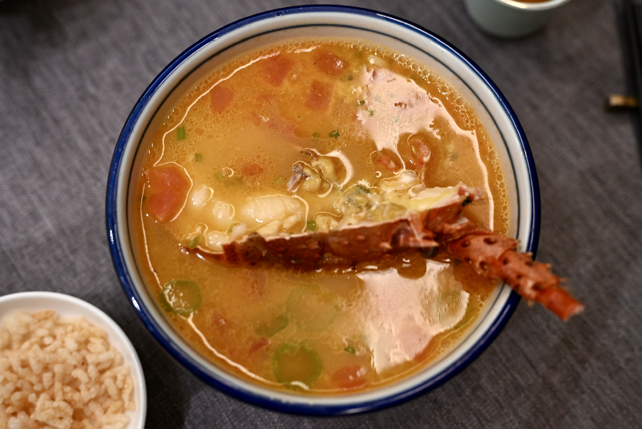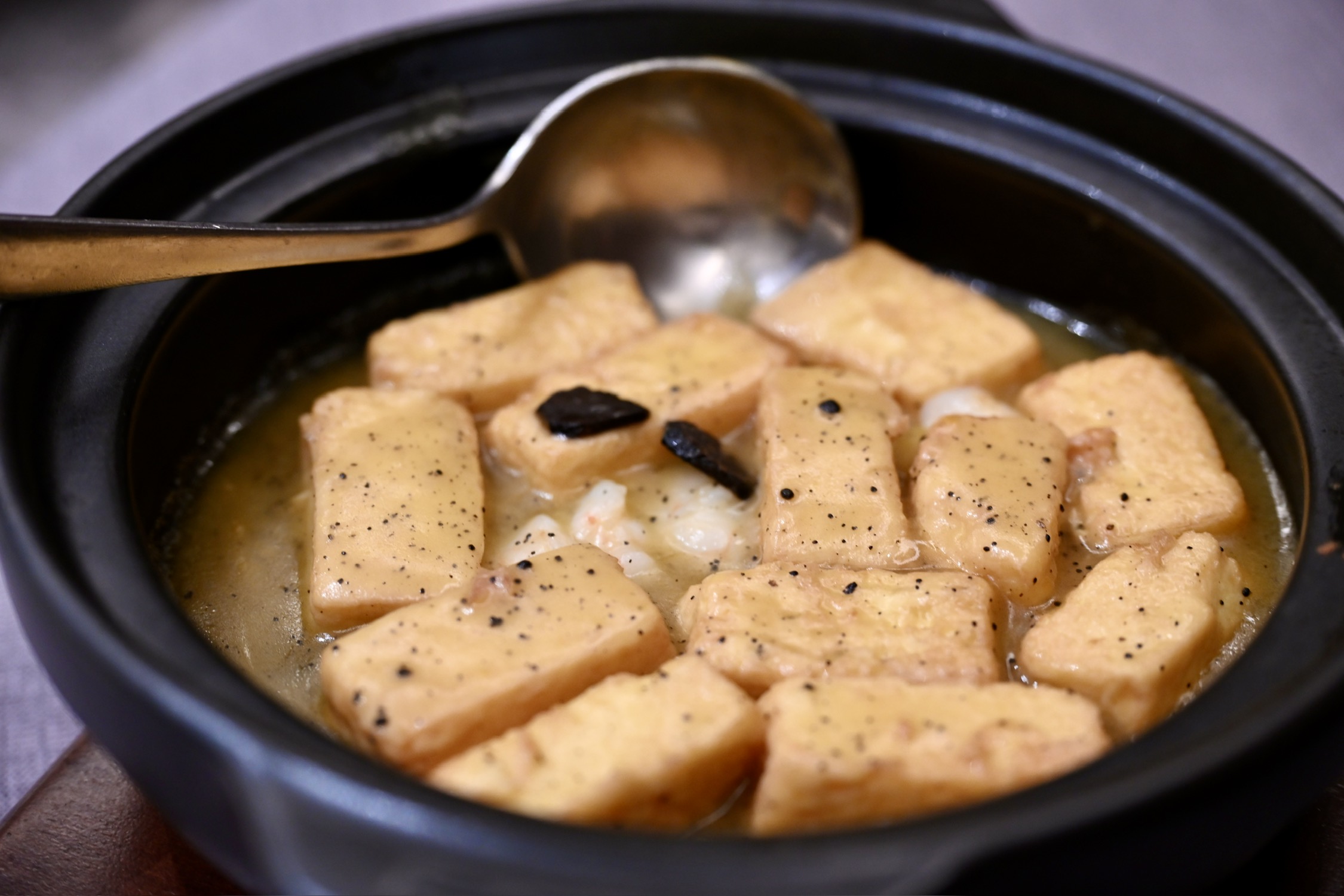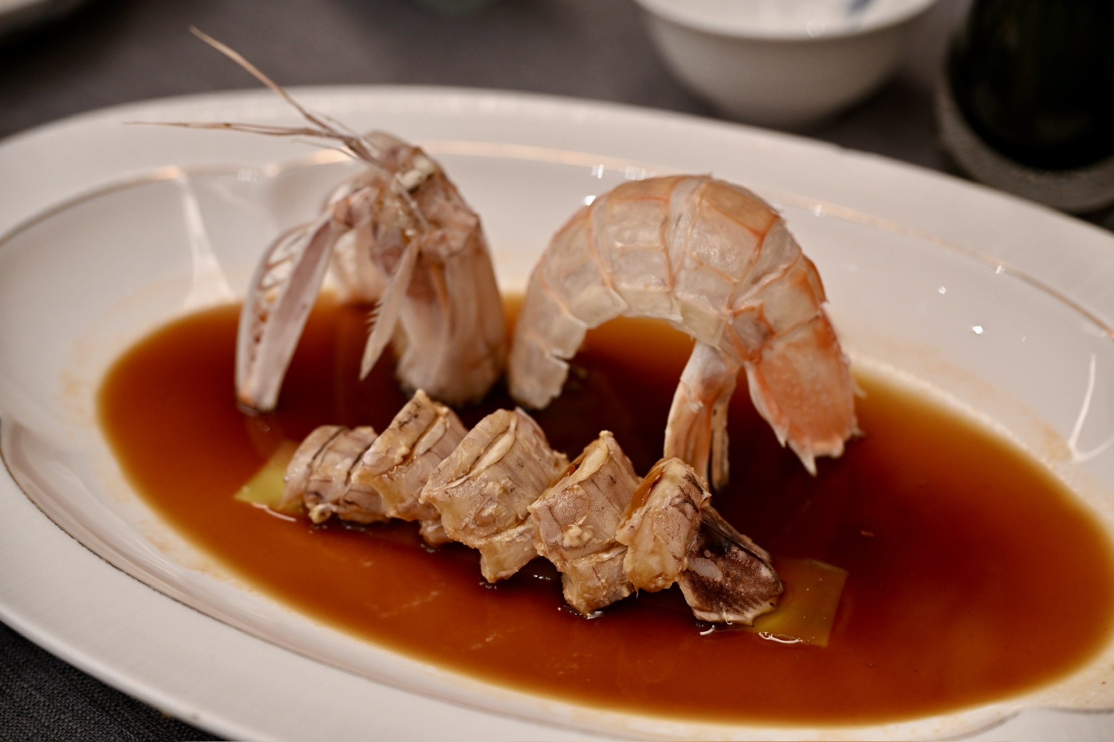 今天单人二刷锦堂春想,餐前服务挑不出毛病,茶位、纸巾和水果都到位了,感觉和第一次来的完全不是一家店。一人食,点了四道菜,其中海肠捞饭、啫啫黄牛肉相对出彩:海肠捞饭中加入陈皮,清新解腻,在咸鲜之上又增加了层次,海肠弹牙,捞饭软糯,相当爽口,让我连吃了三碗;啫啫黄牛肉,火候把控得很好,黄牛肉又嫩又弹牙,姜蒜和黑胡椒充分入味,口感咸鲜香甜,让人欲罢不能。五柳炸蛋,作为一道传统粤菜,我是第一次吃,比预想中的要好吃很多,酥脆酸甜,调味相当复古,不过感觉是热量炸弹。老醋海蜇作为开胃头盘无功无过,手磨杏仁茶浓郁醇香,是一个美好的收尾。总而言之,这顿二刷让人相当满意、吃得很惬意,这才是一家好餐厅应该给到食客的体验,出品在线,服务到位,希望下次再来时能收获更多惊喜。