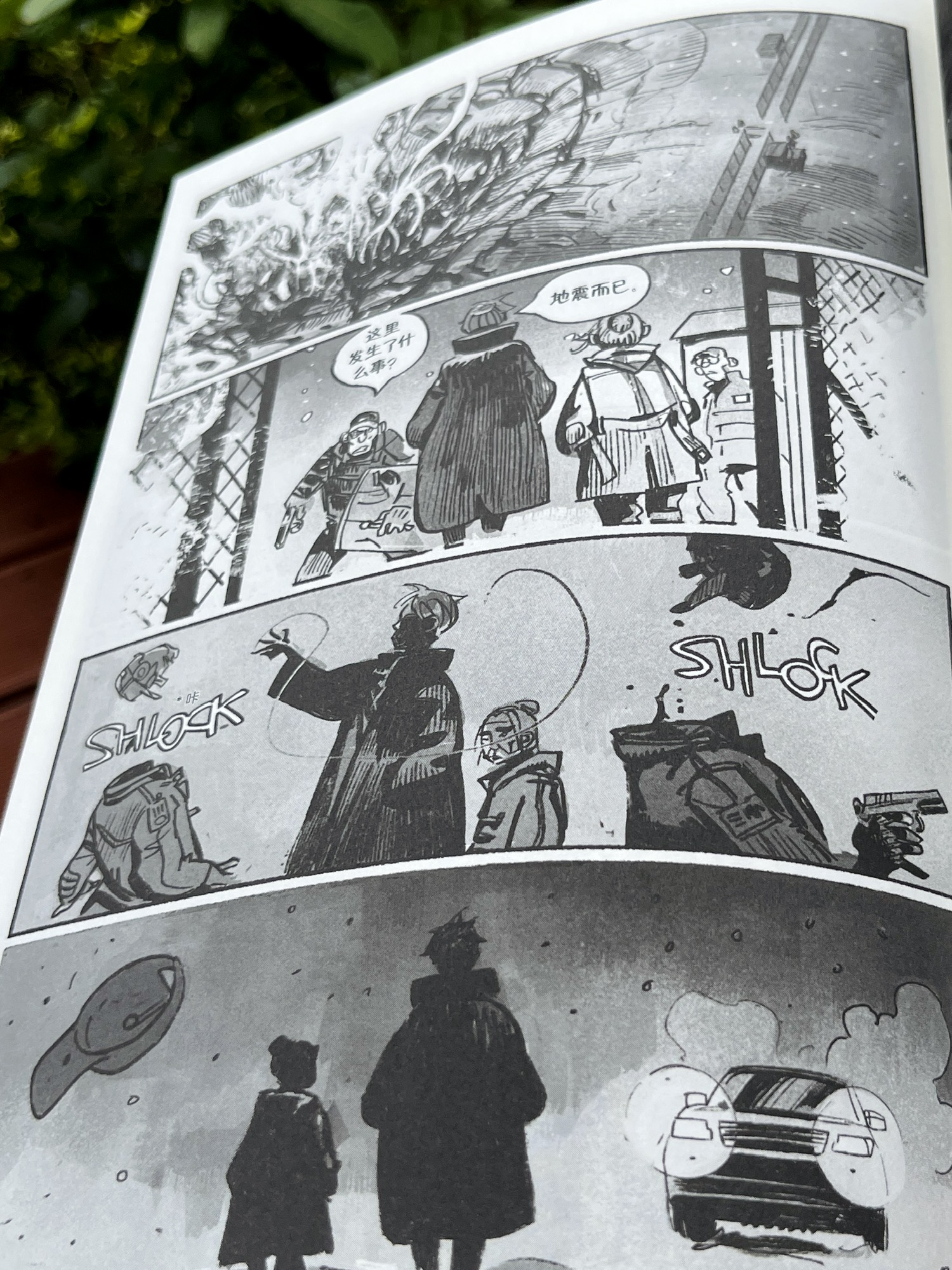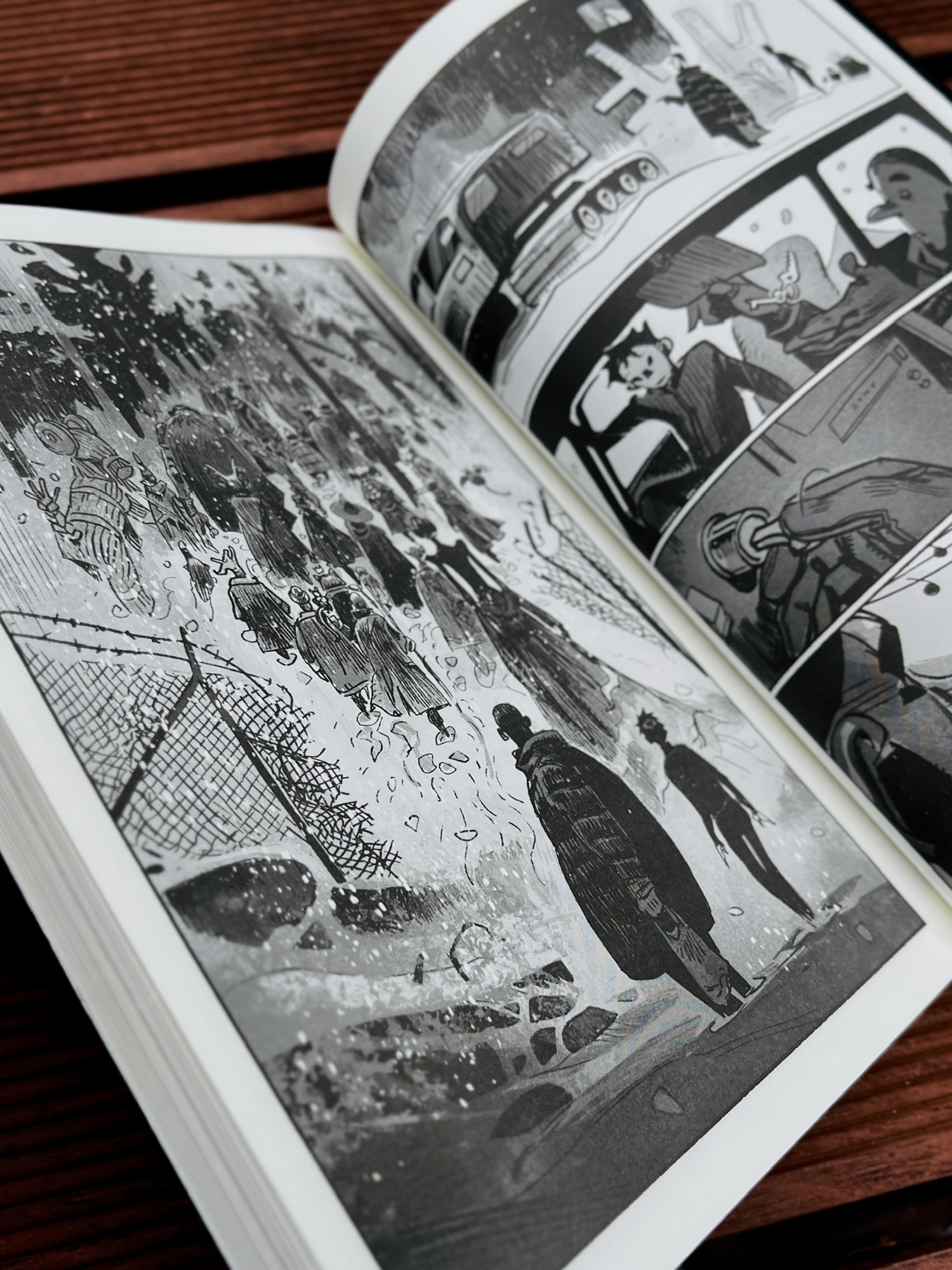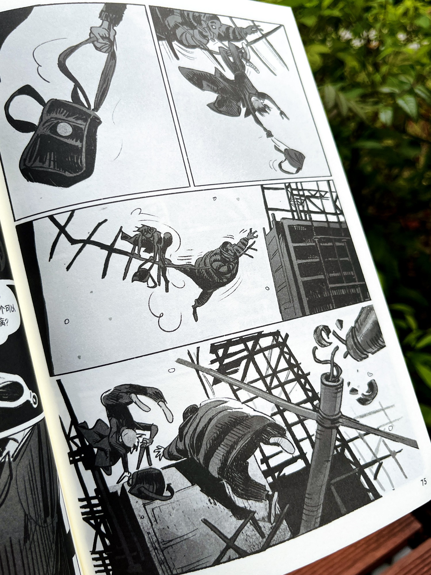 不过这部漫画还是有一定阅读门槛的,更适合有一定漫画阅读经验的读者。同时,书中有大量黑白灰处理的画面,粗粝的画风让人物显得有点简略,有些地方会有些模糊,阅读时常常需要停下来反应一下。