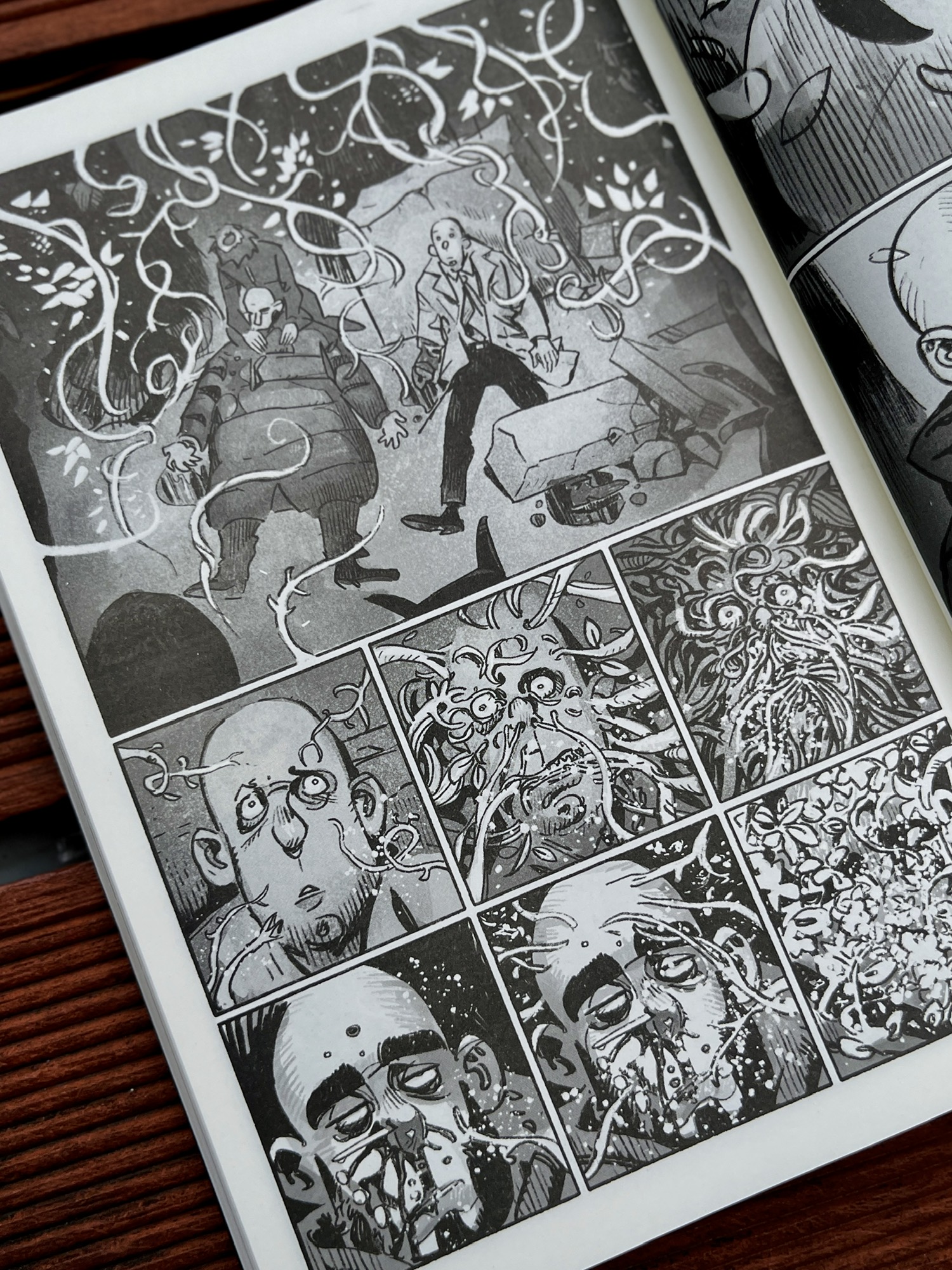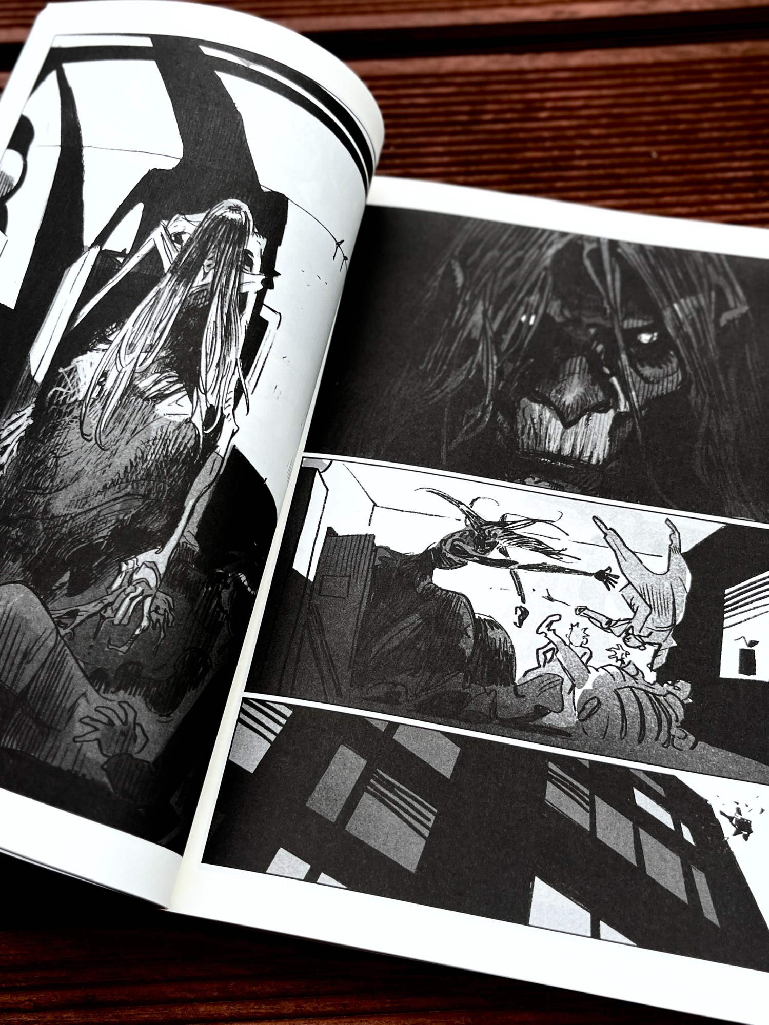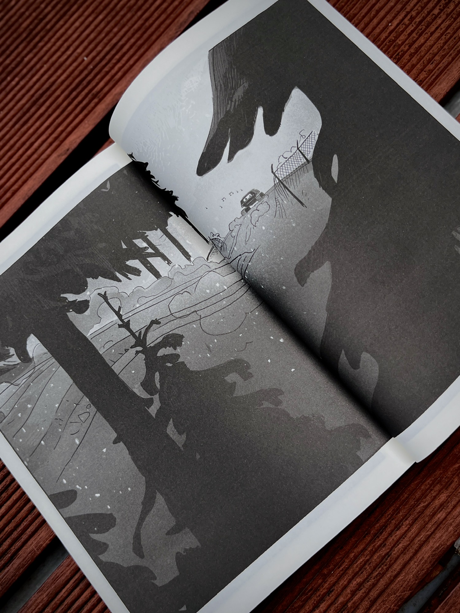 不过这部漫画还是有一定阅读门槛的,更适合有一定漫画阅读经验的读者。同时,书中有大量黑白灰处理的画面,粗粝的画风让人物显得有点简略,有些地方会有些模糊,阅读时常常需要停下来反应一下。
