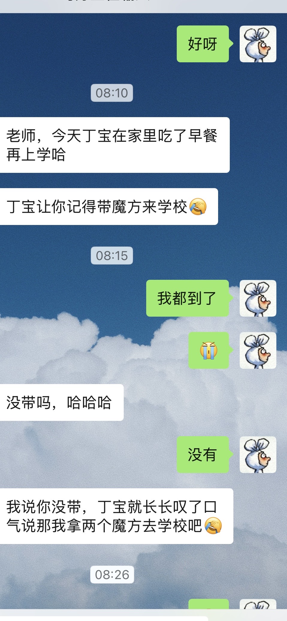 我们互相笑嘻嘻的遥望打招呼