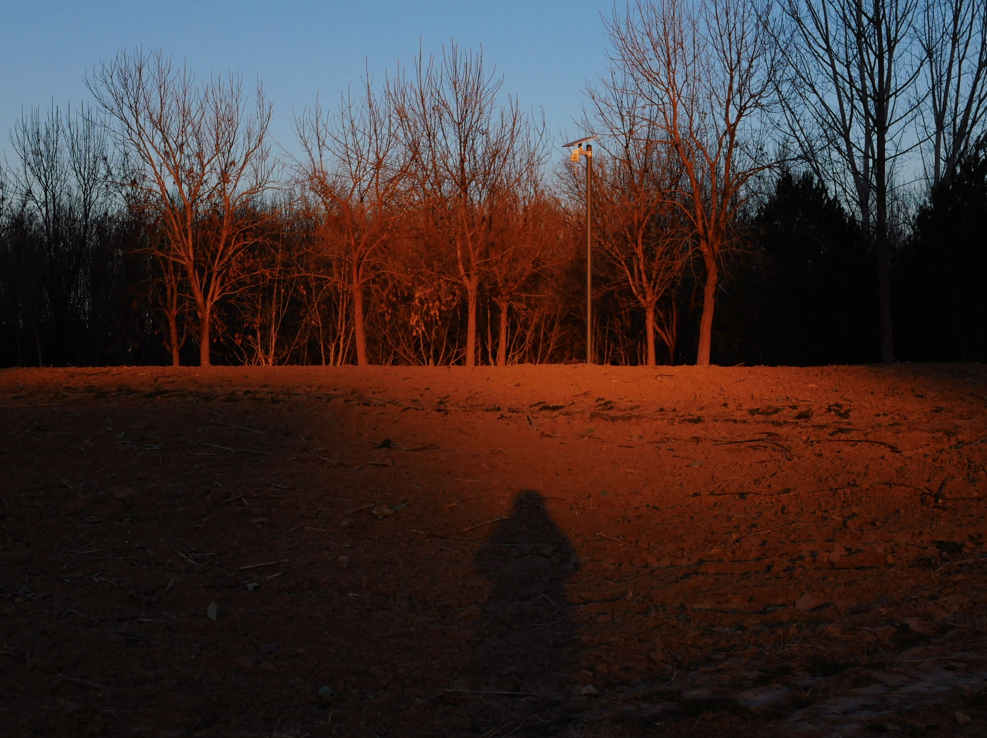 我的影子贴着夕阳。