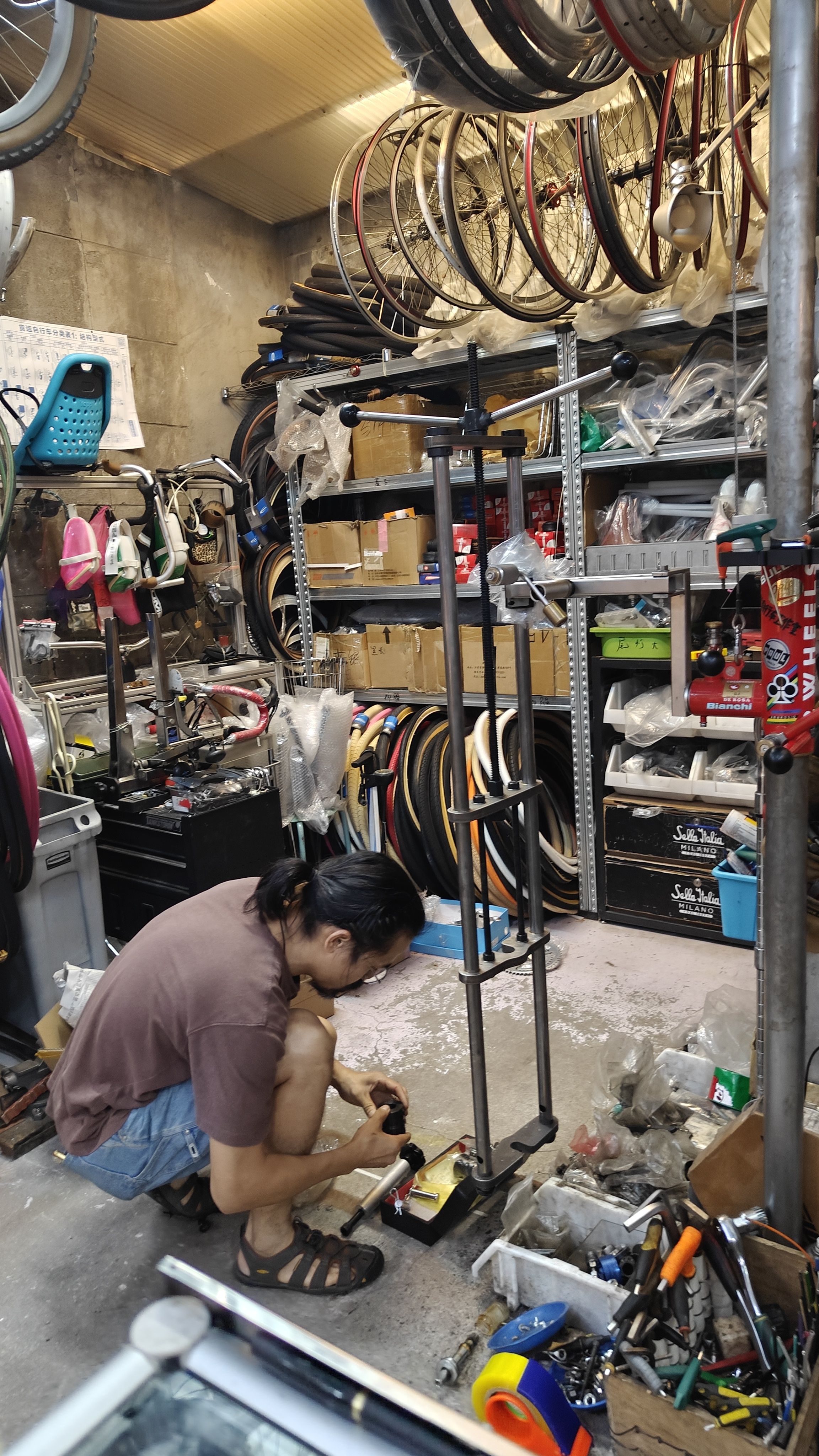 钢架自行车和坐管锈死在一起了,两个管子很紧,很难用上力,非常难搞。江湖人称「钢架癌症」。