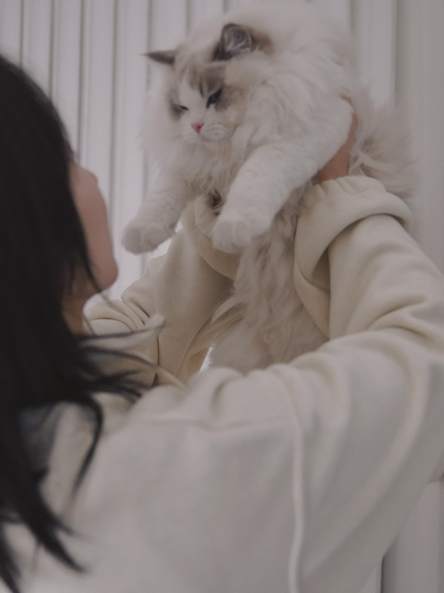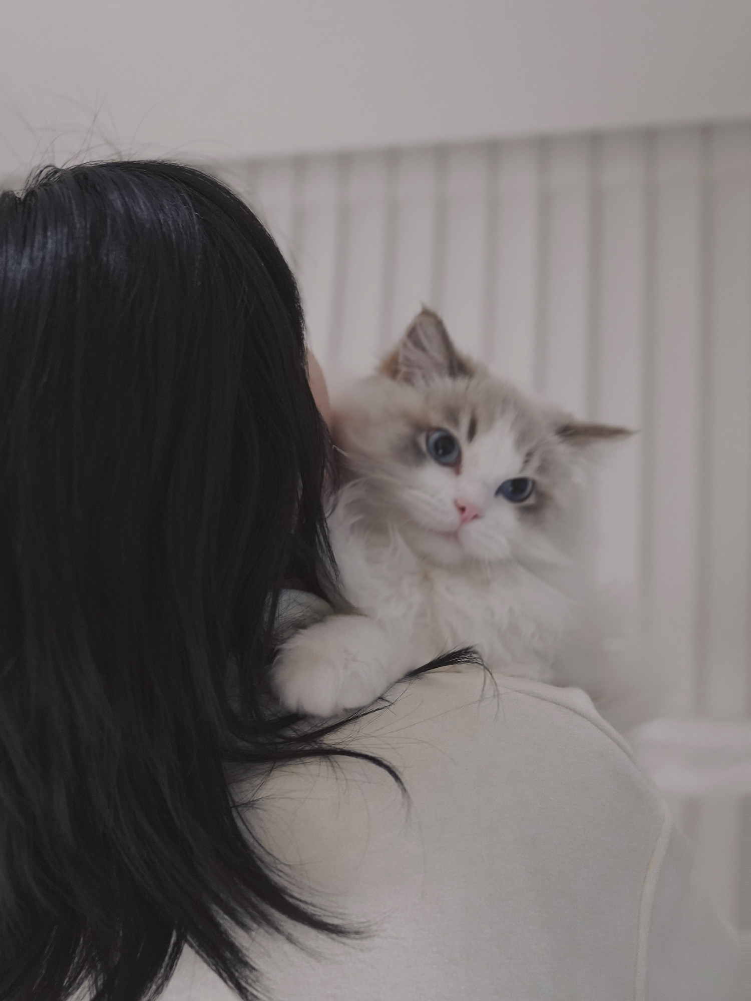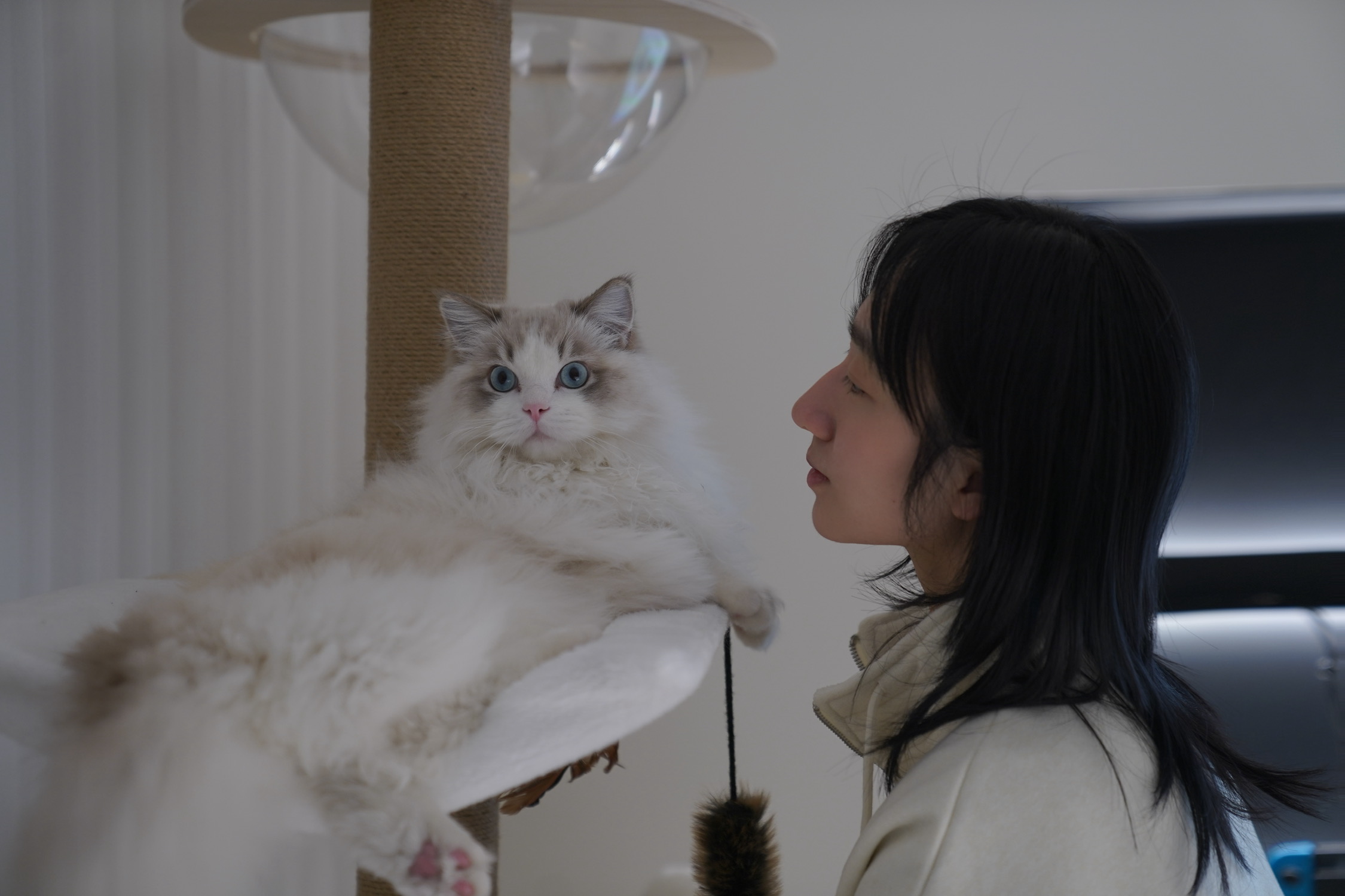 早上醒来小新就跑来靠在我头上睡