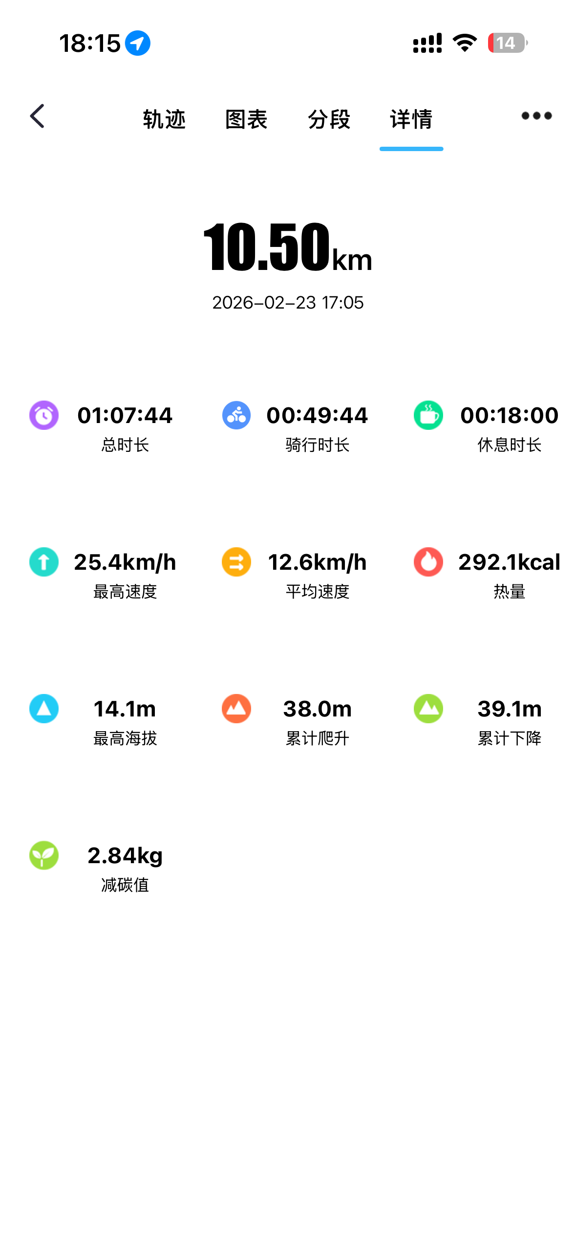 骑行15km(前面忘记开启记录了)