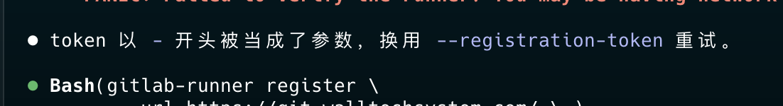 真是活久见,GitLab Runner 的 Token 居然是横线开头,在命令里会被当做参数识别,还好有 claude,不敢想象在没有 AI 的时代这个问题要排查多久。