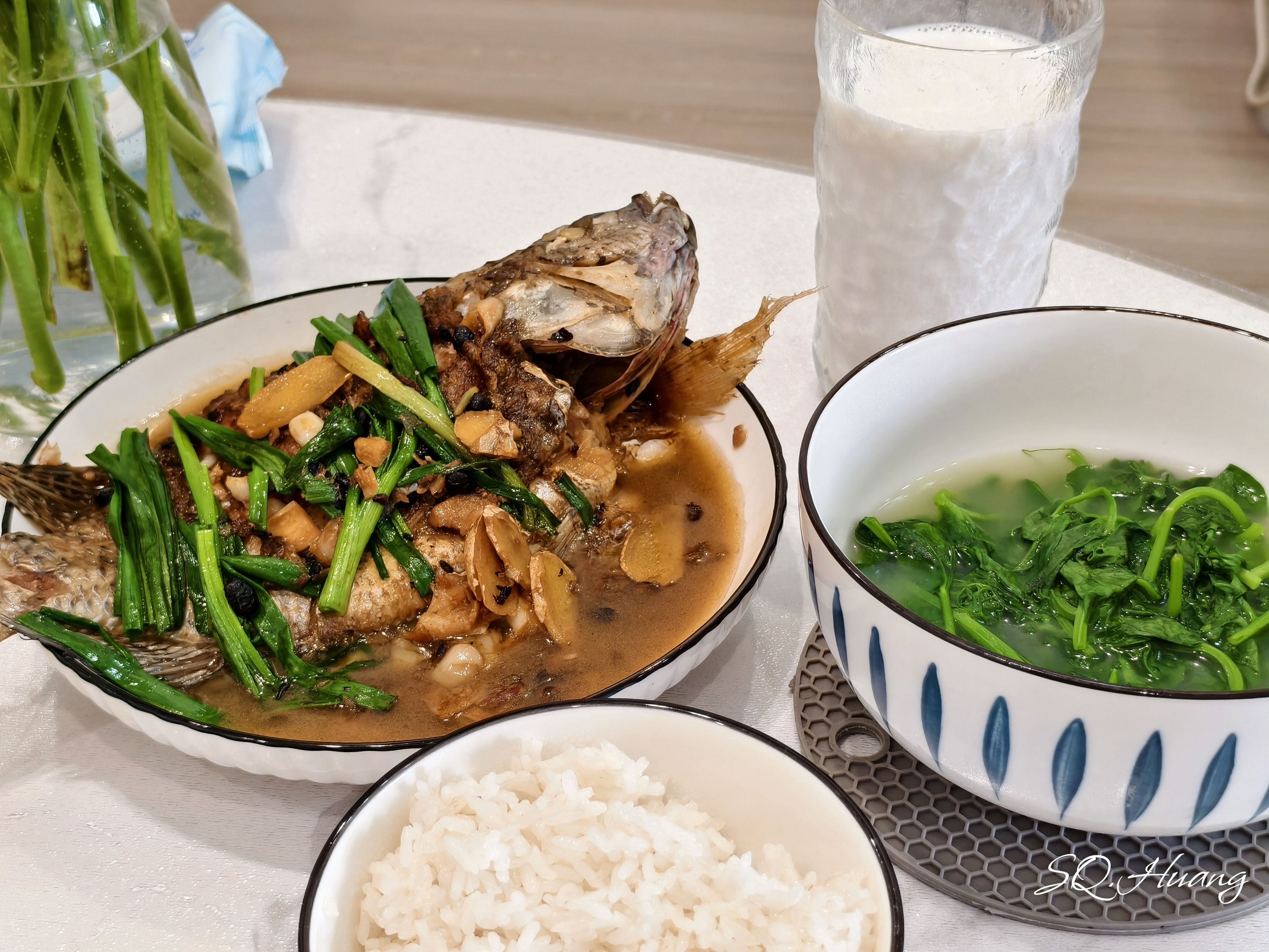 今日份一人食~豉汁罗非+上汤豌豆尖🙇🏻