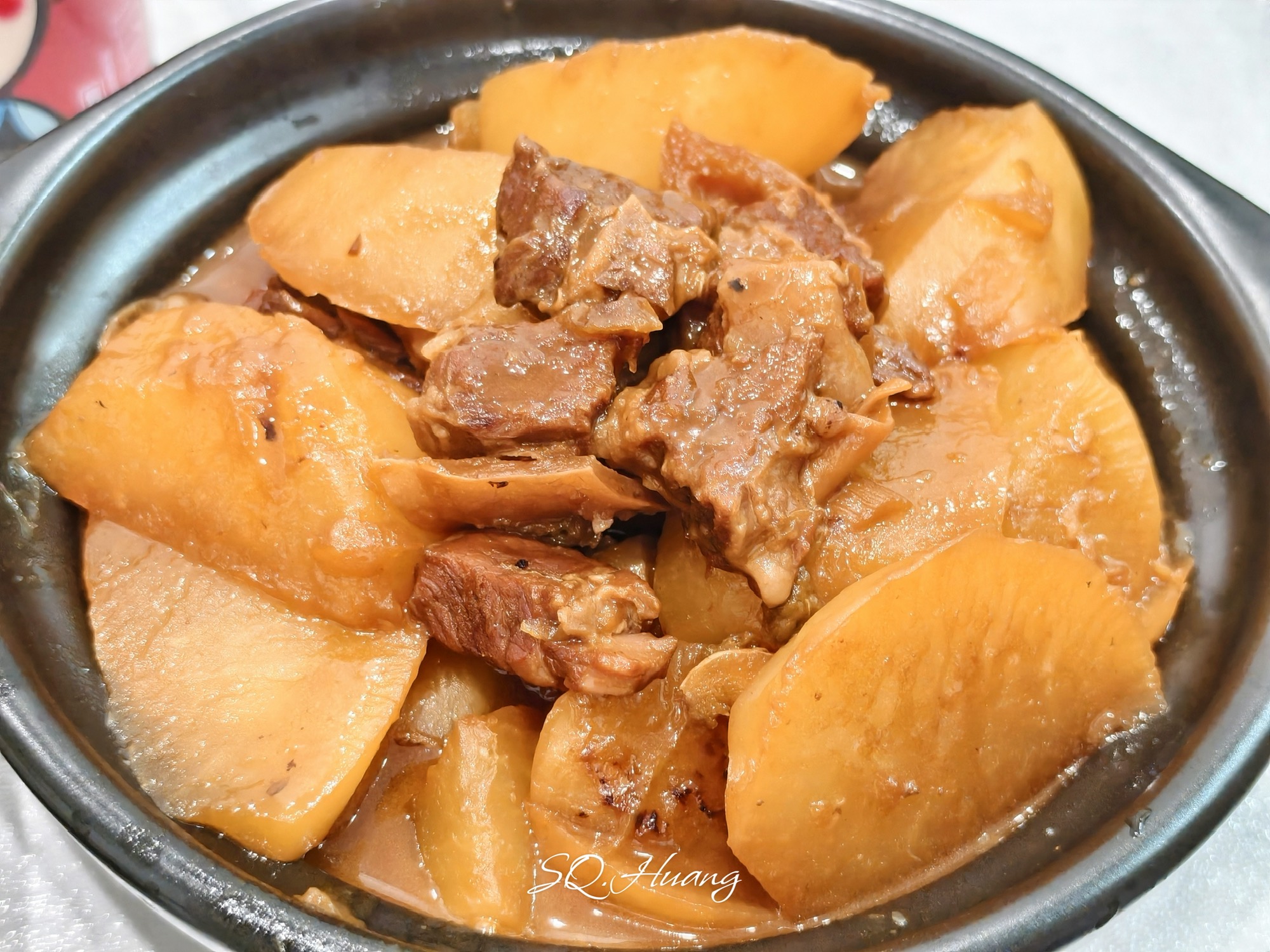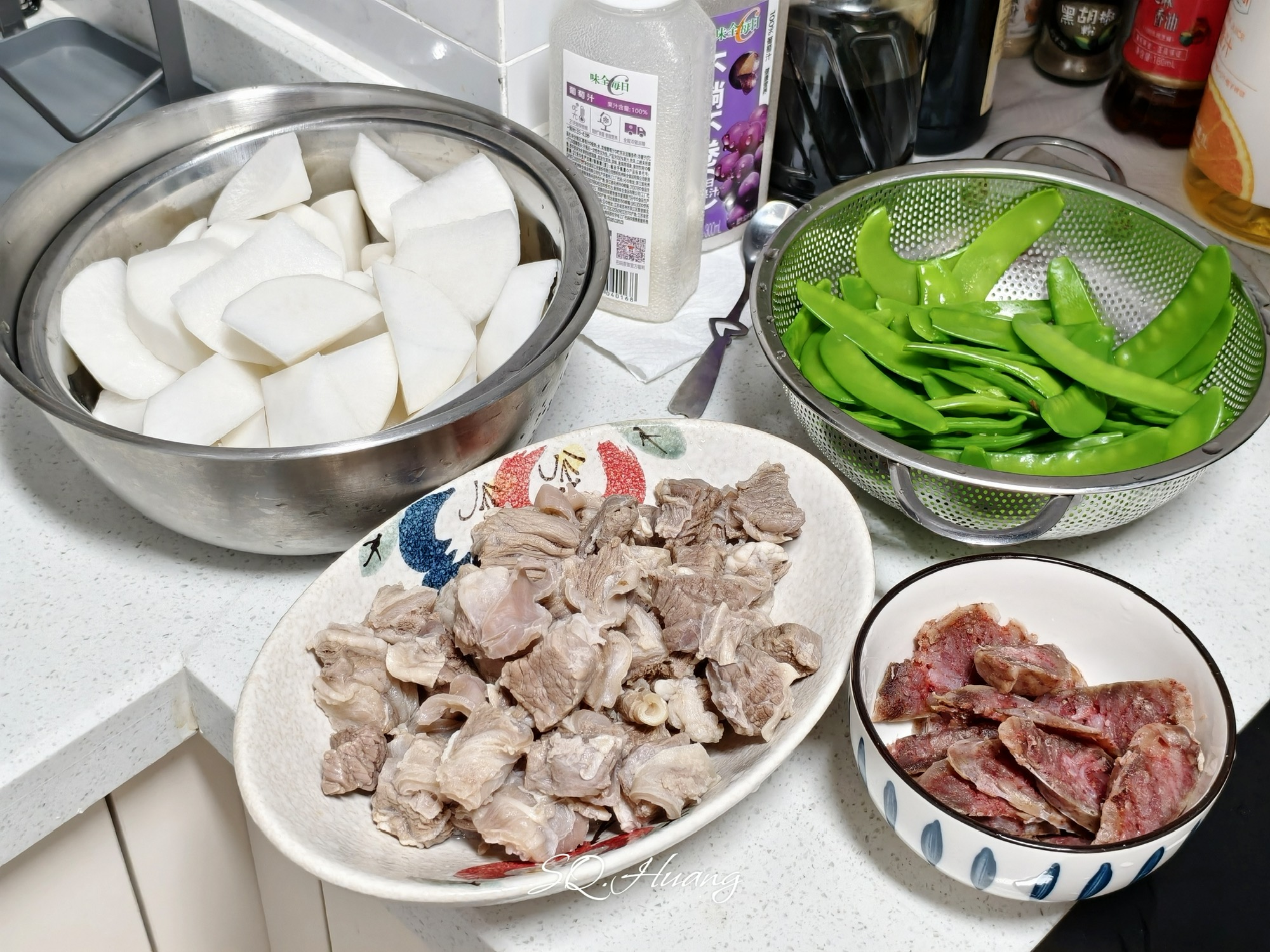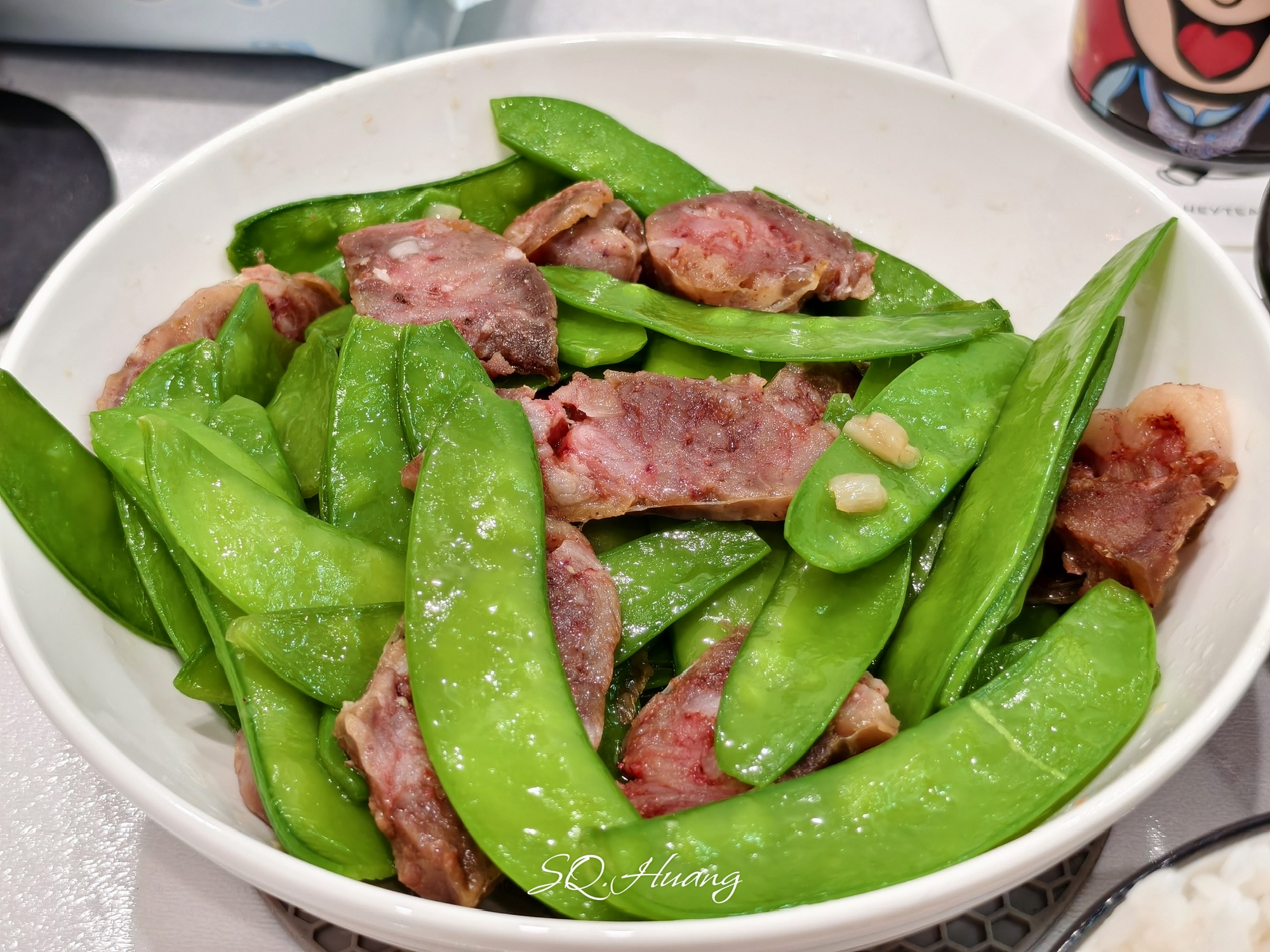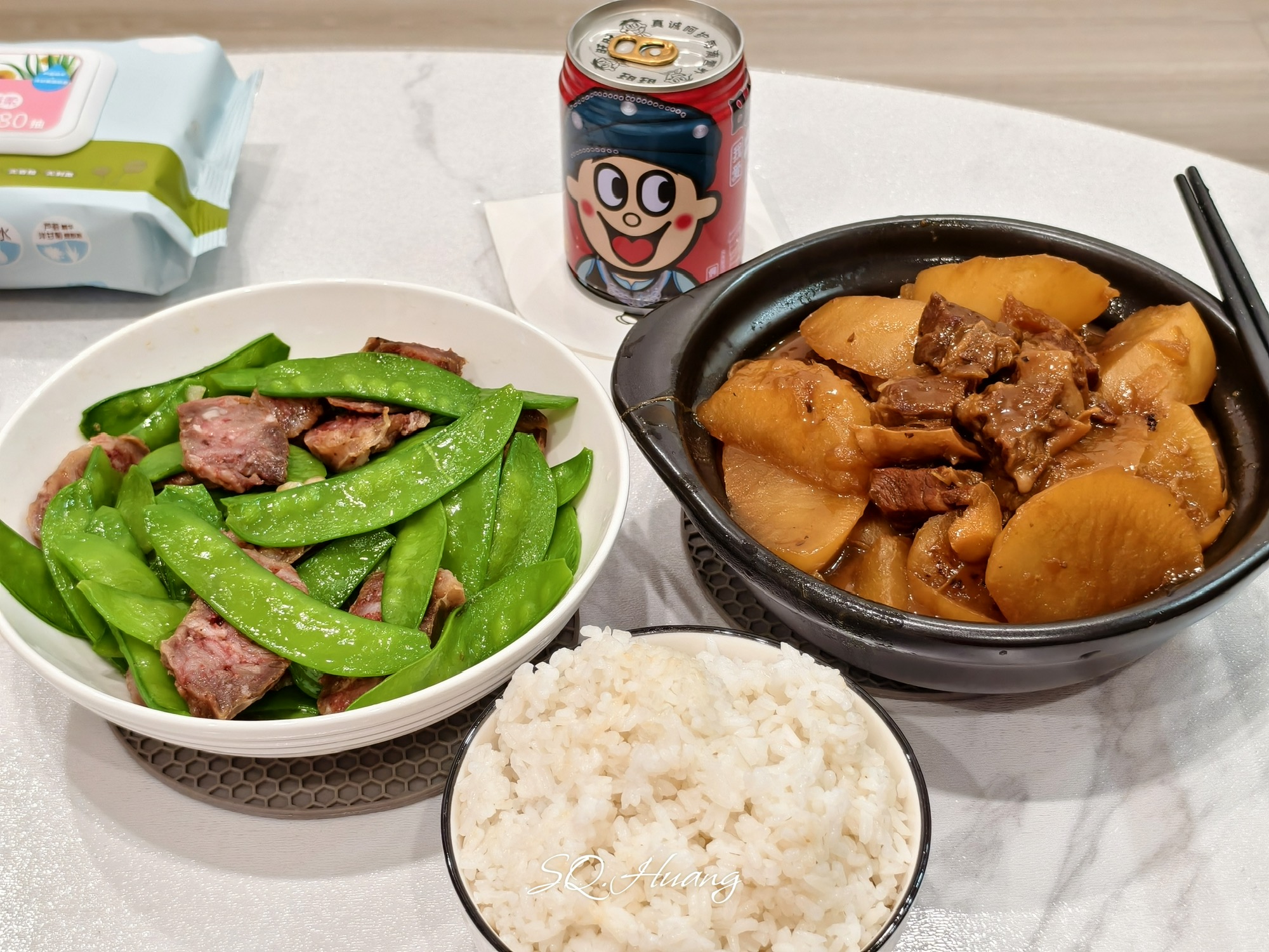 牛腩焖萝卜+腊肠炒兰豆