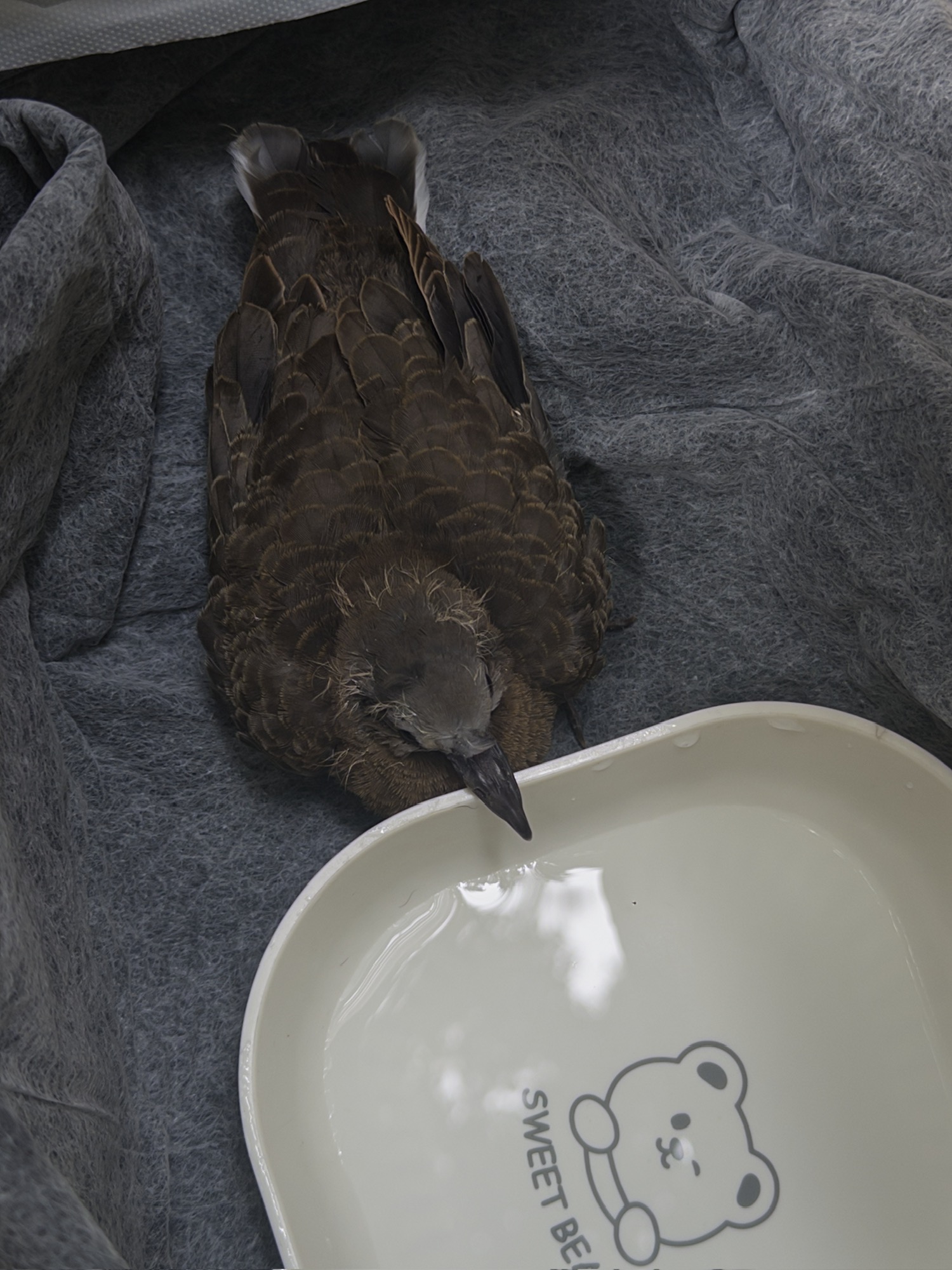 几乎每年都会有一只鸟掉在院子里,喝口水歇会儿吧~