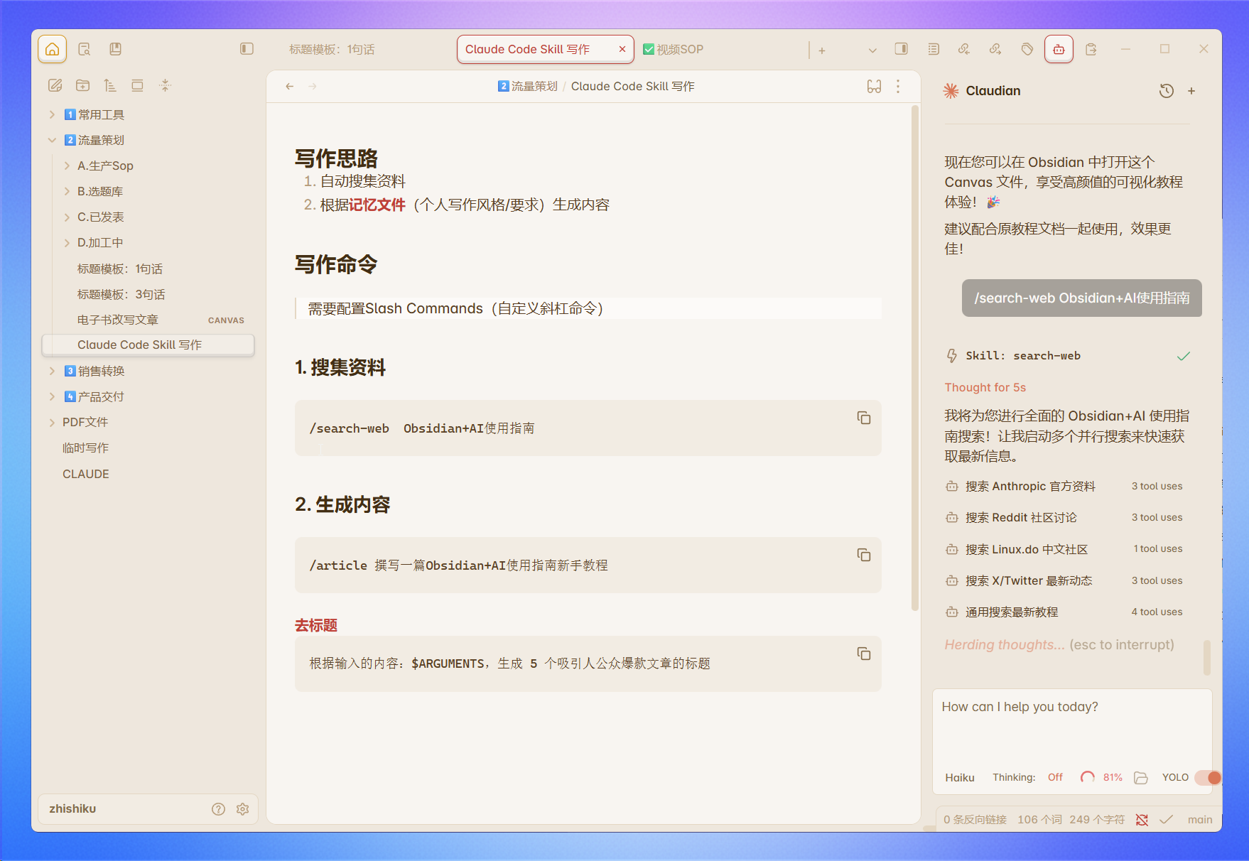 Obsidian插件Claudian配合Claude Code写作,真的离谱!