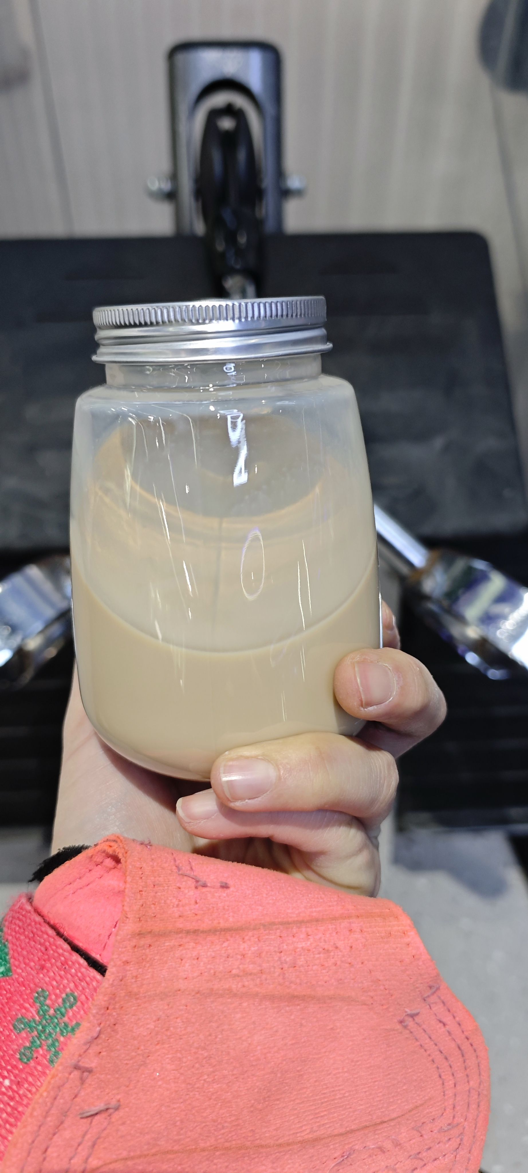 健身房一大兄弟自己做的,据说刚打发的时候咖啡与牛奶是分层的,这是来健身房的路上颠簸融合了。