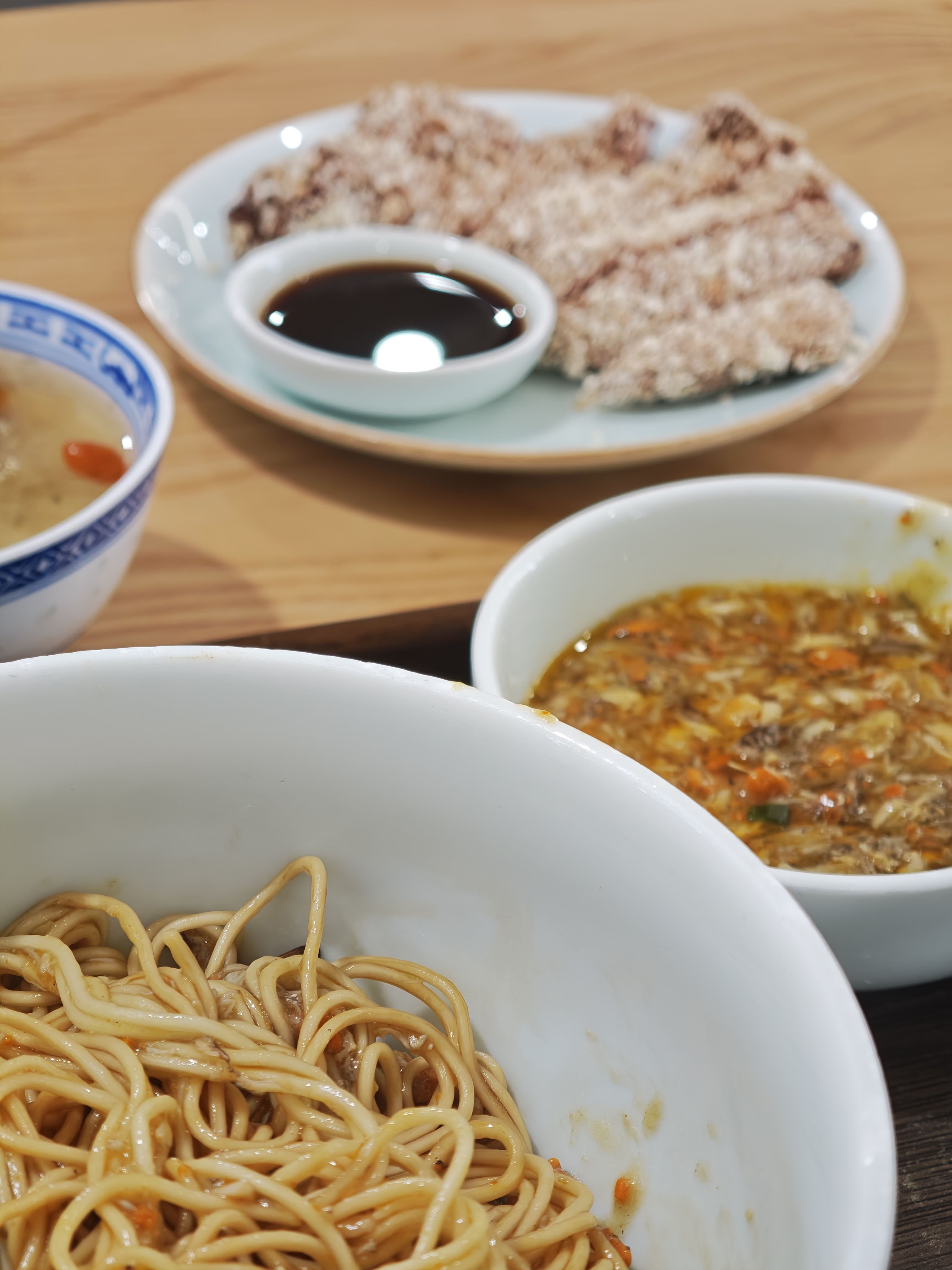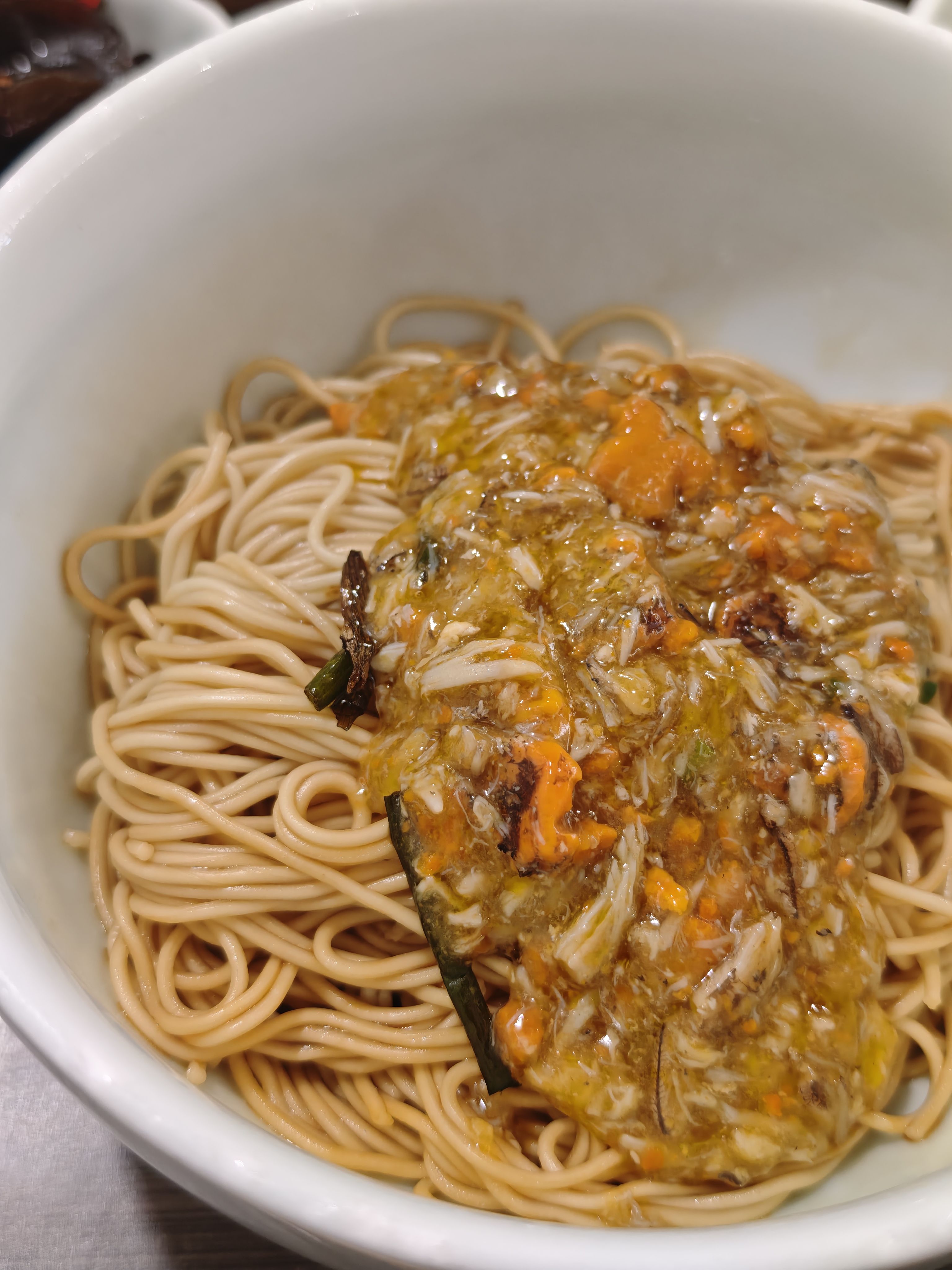 先吃一碗试试。蟹粉拌面。