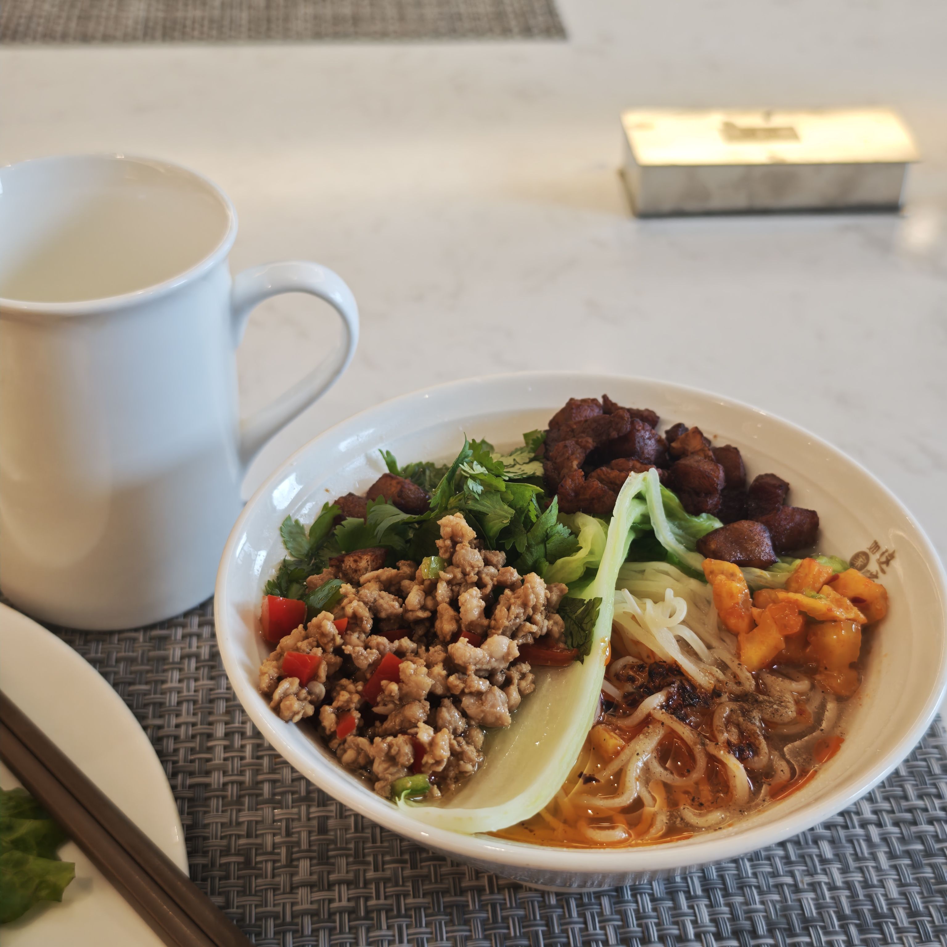 (酒店早餐🤫,一碗素面,自己加的料)
