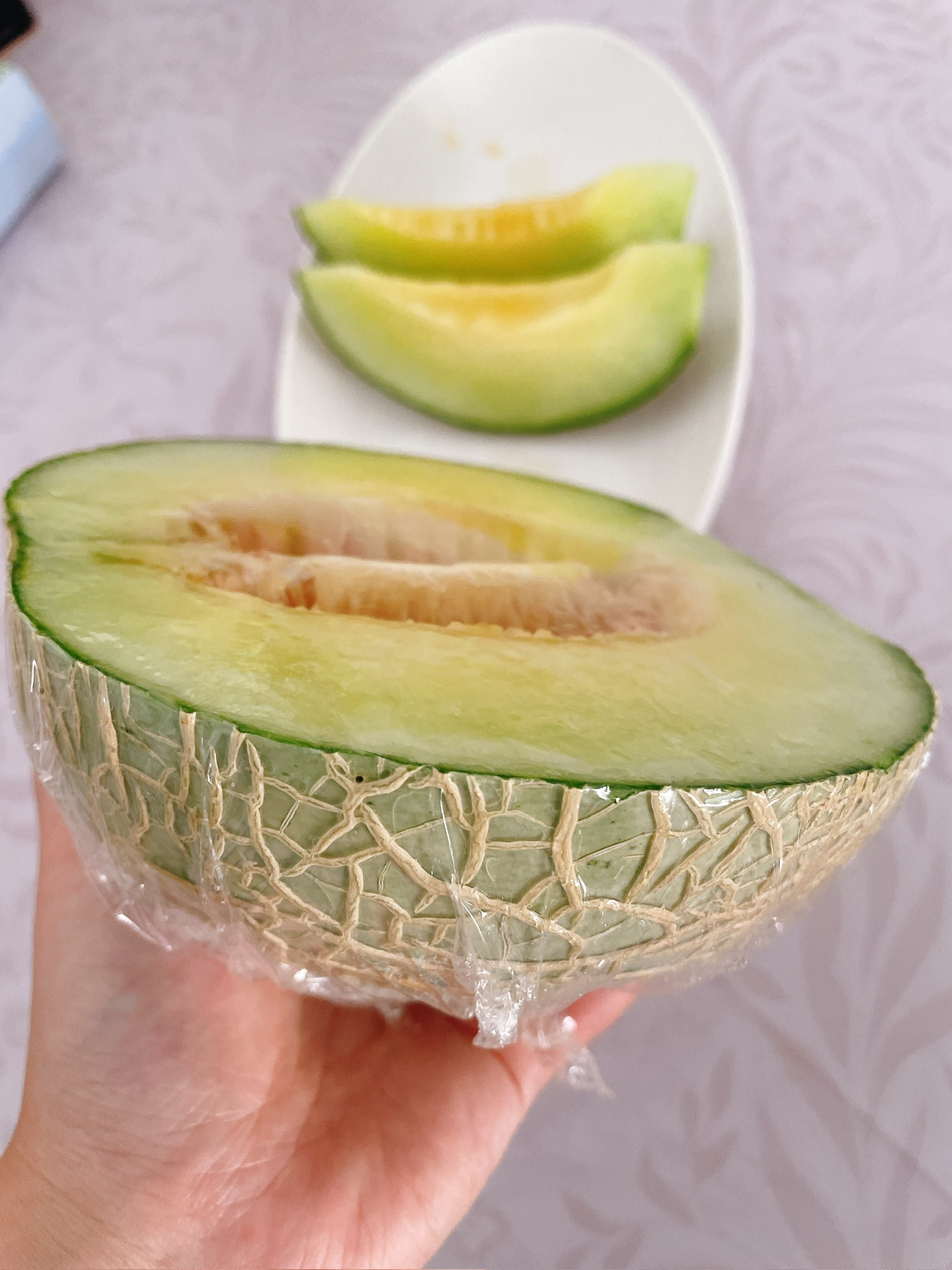 吃海南产的网纹蜜瓜🍈,水分充足,口感绵软,甜度是日本产的六七成,但是我觉得很适口。