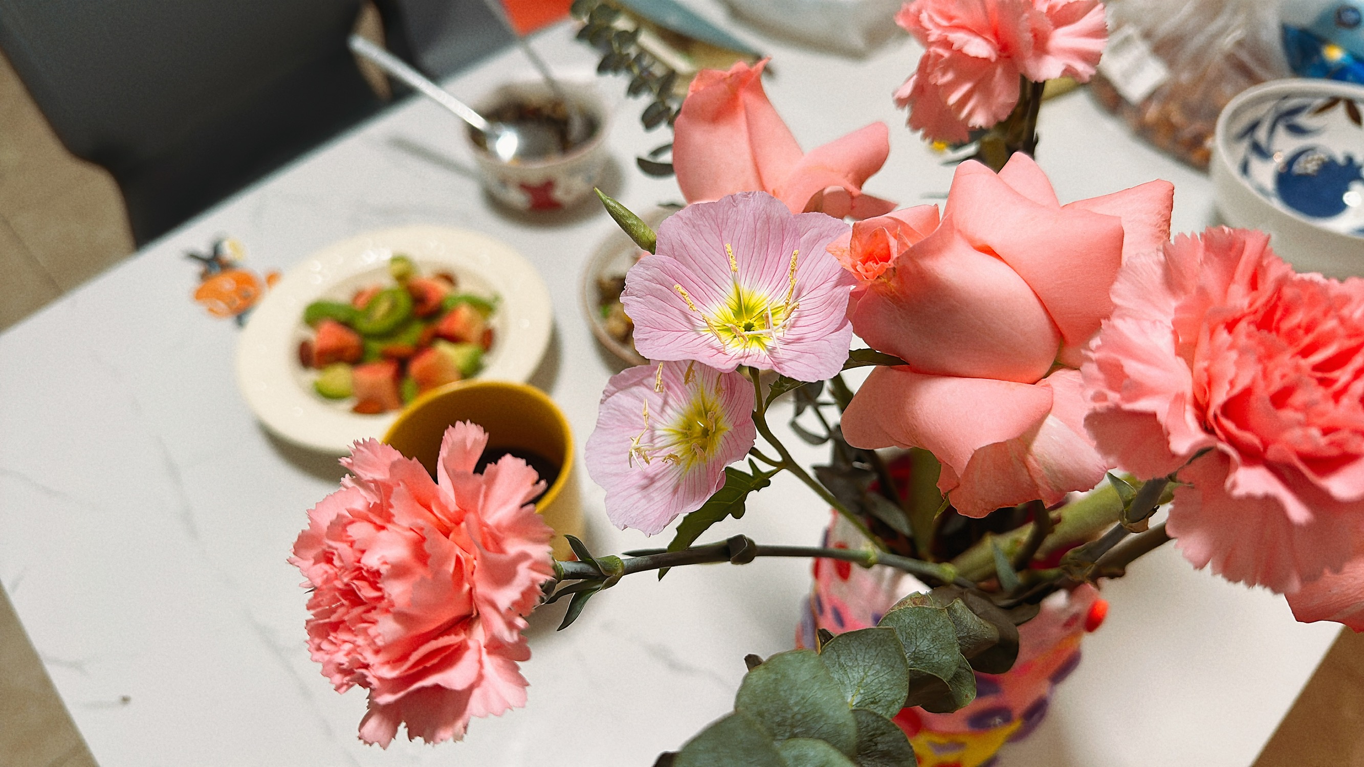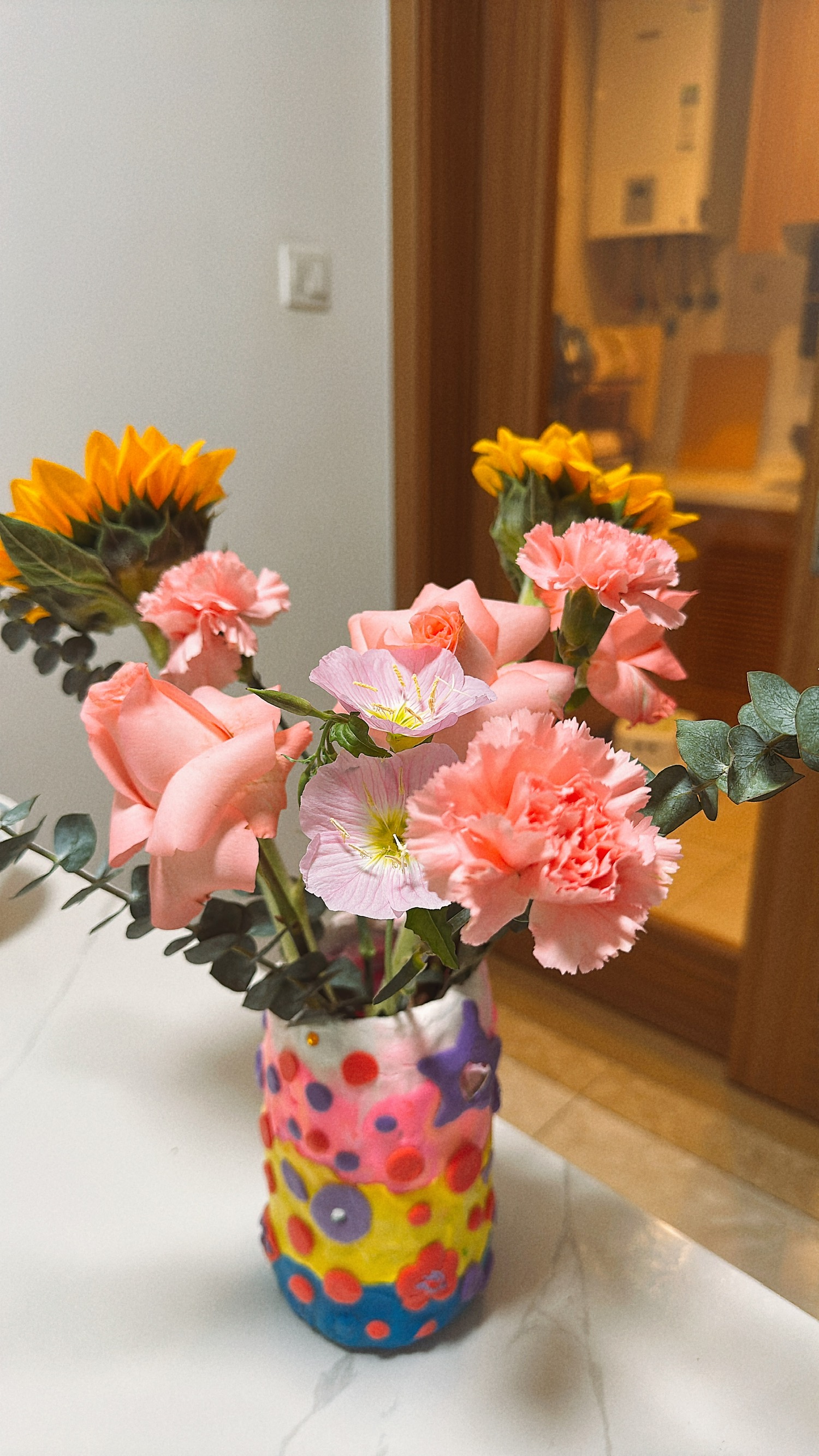 DIY 的丑花瓶和花束意外的合适。