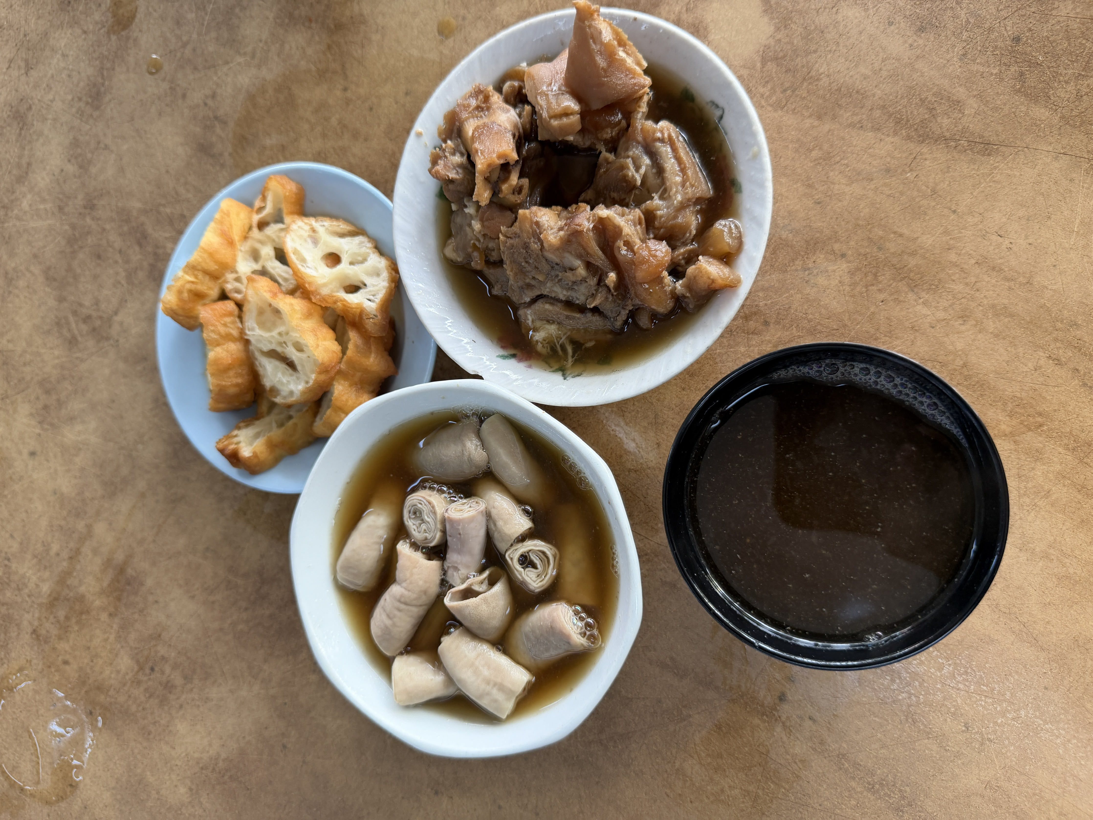 肉骨茶也极具特色,点了一份猪肠一份猪蹄,吃得舒服,茶汤的药味儿浓郁,喝着感觉很健康。