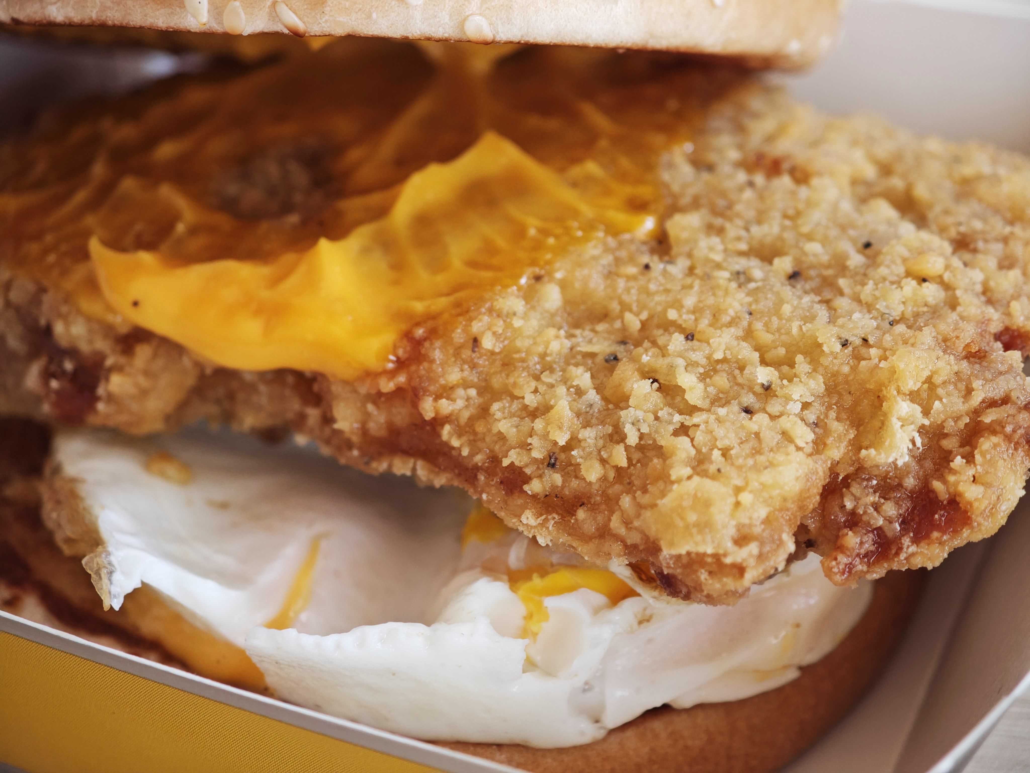 为什么不同麦当劳卖的东西还不一样啊!!这个咸蛋黄包不是每个店都有呢!但是是好吃的!!!