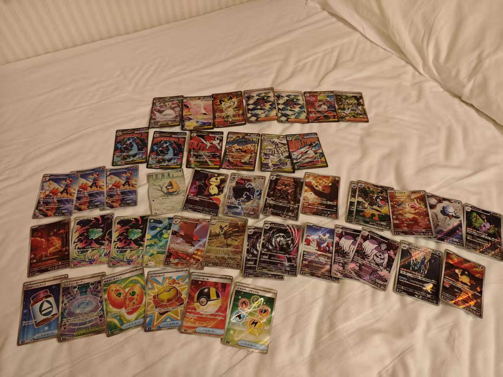 Anyway,虽然这么折腾,竟然还有些收获,开出了不少SAR卡,还开了一张价值400人民币的火箭队的喵喵怪卡,还有一些200多,几十,几块的卡片。