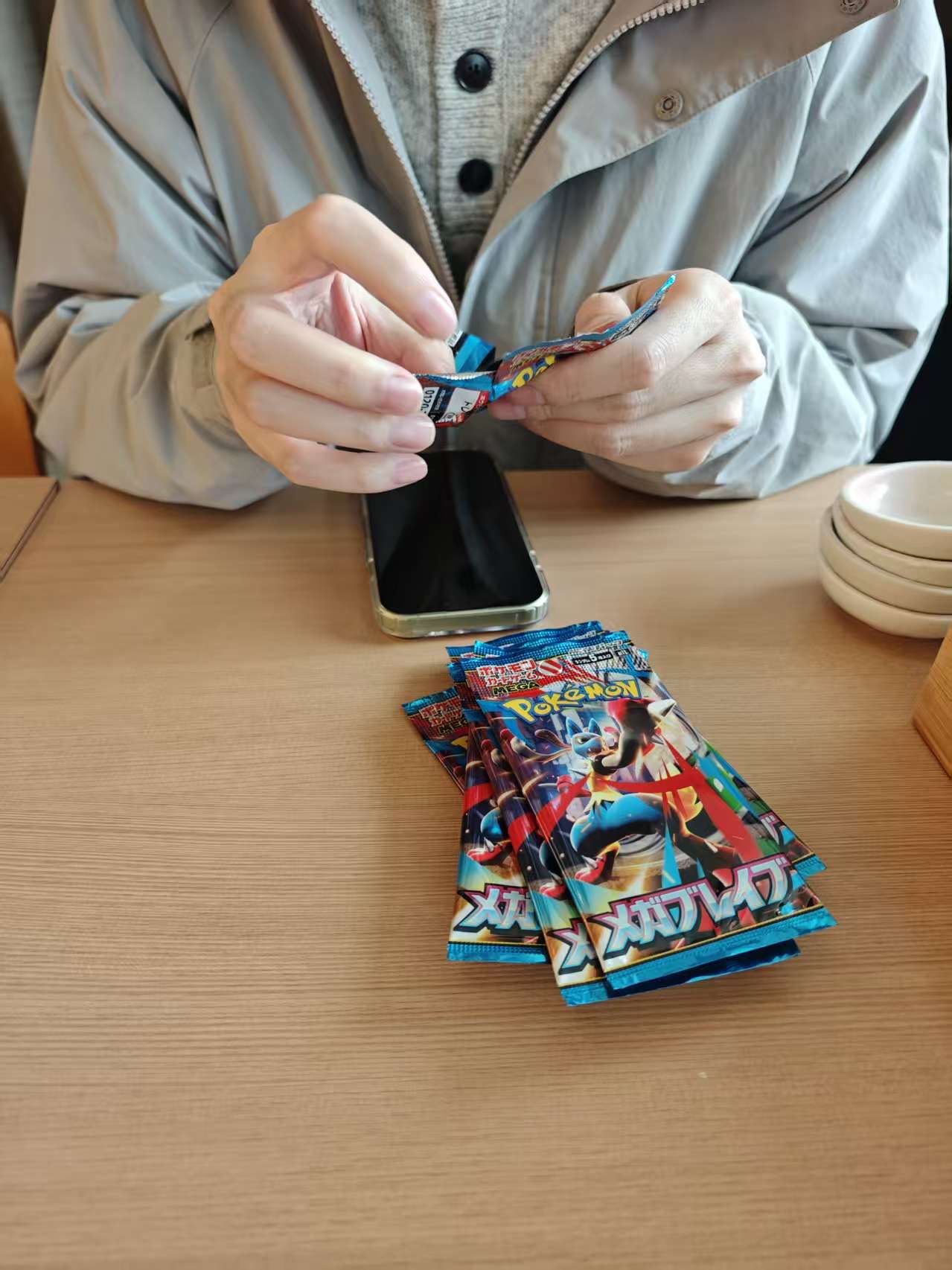 然后开始各种拆拆拆:吃饭的时候拆卡包、在抽到大吉的神社旁边拆,直接现场拆,回酒店第一件事就开拆。😂