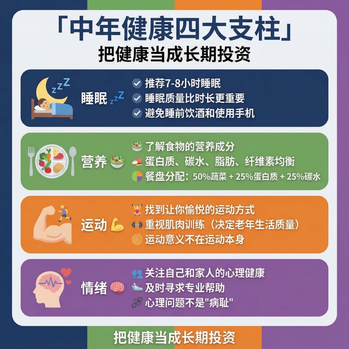 我是一个对健康十分重视的人,所以我早睡早起、保持运动、健康饮食。