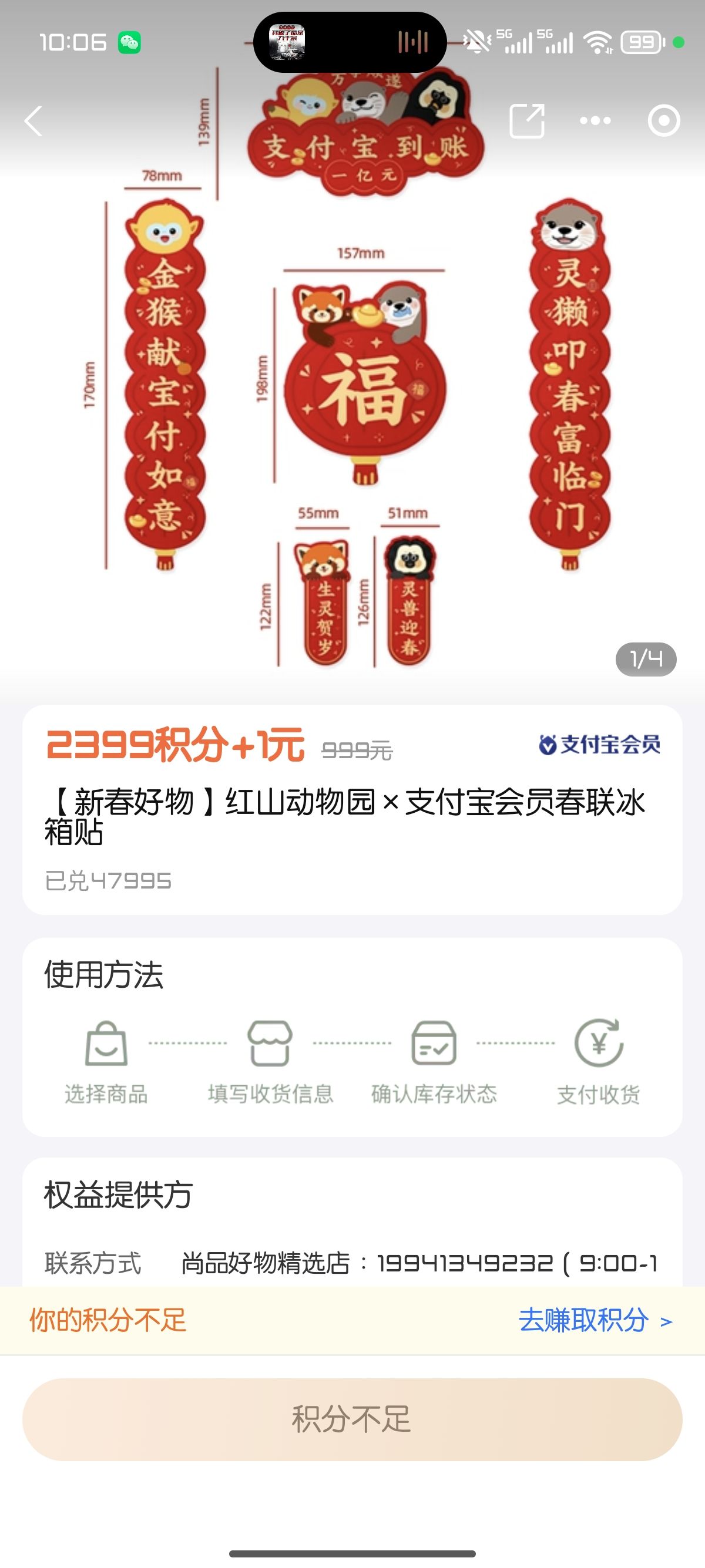 支付宝集福活动,就整到一个冰箱贴
