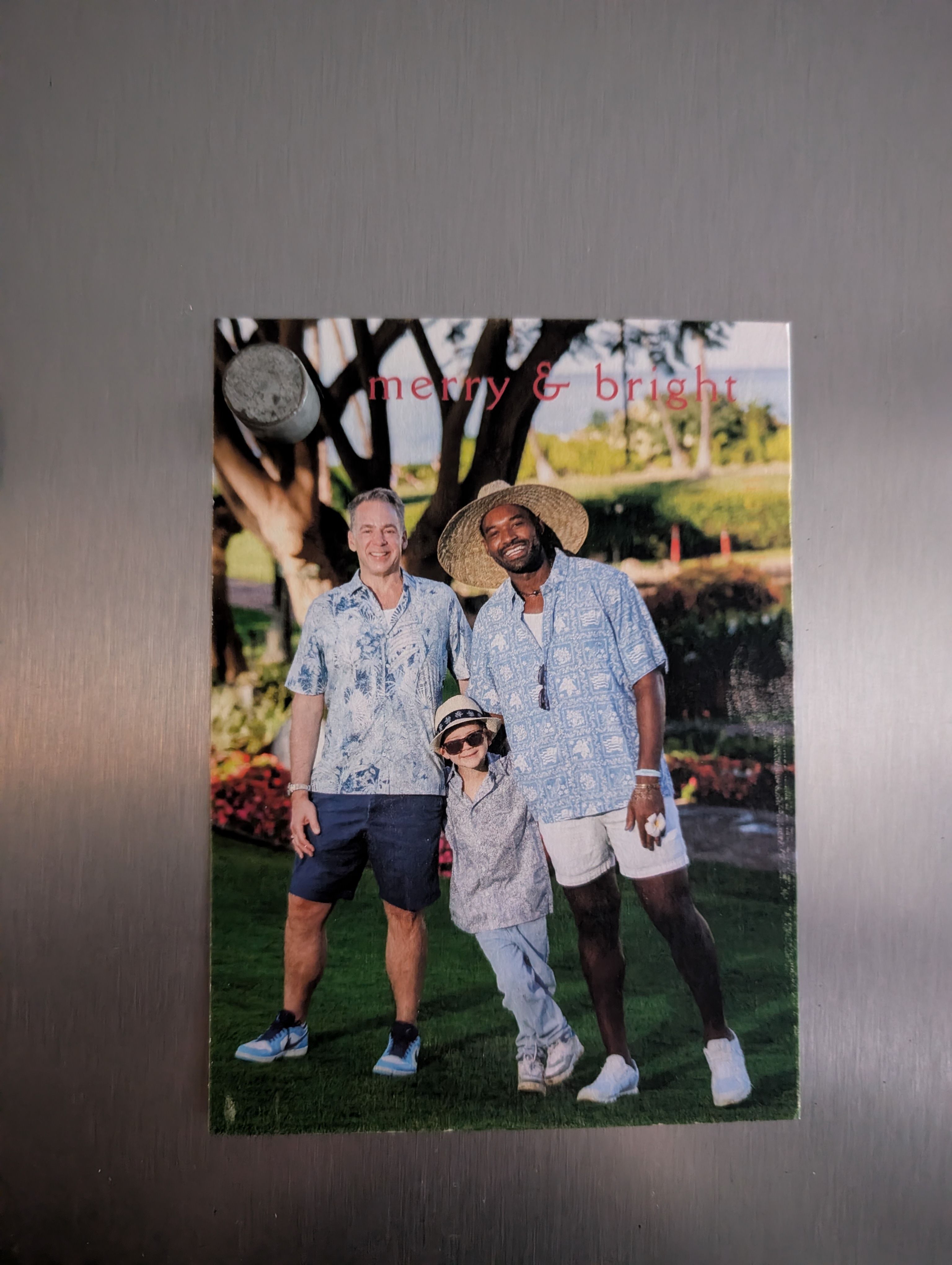 于是我们家冰箱上就多了一个贺年卡,但我俩完全不认识这家人😂