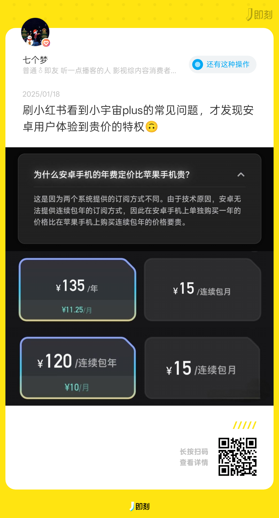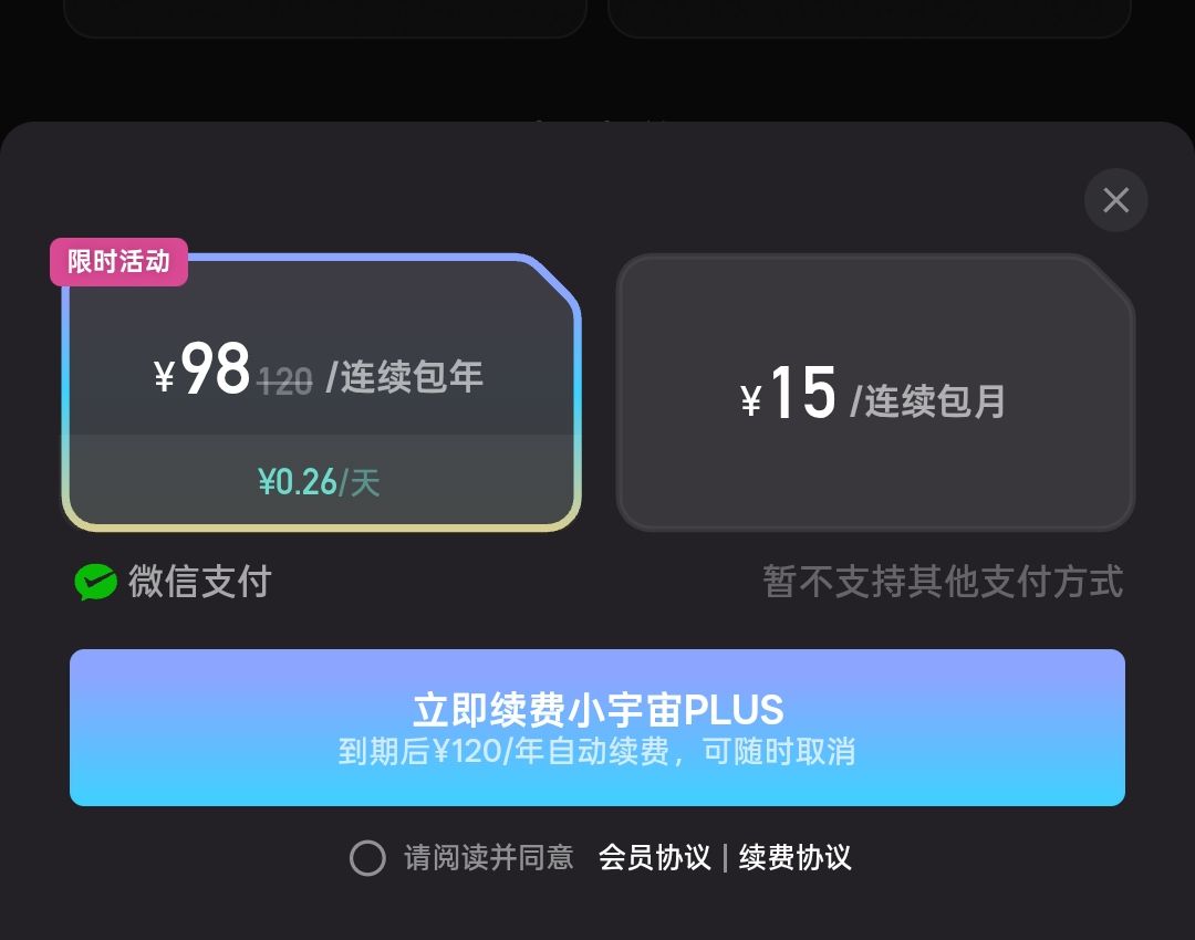 去年小宇宙安卓和苹果年费订阅不同,今天有活动才发现一样了