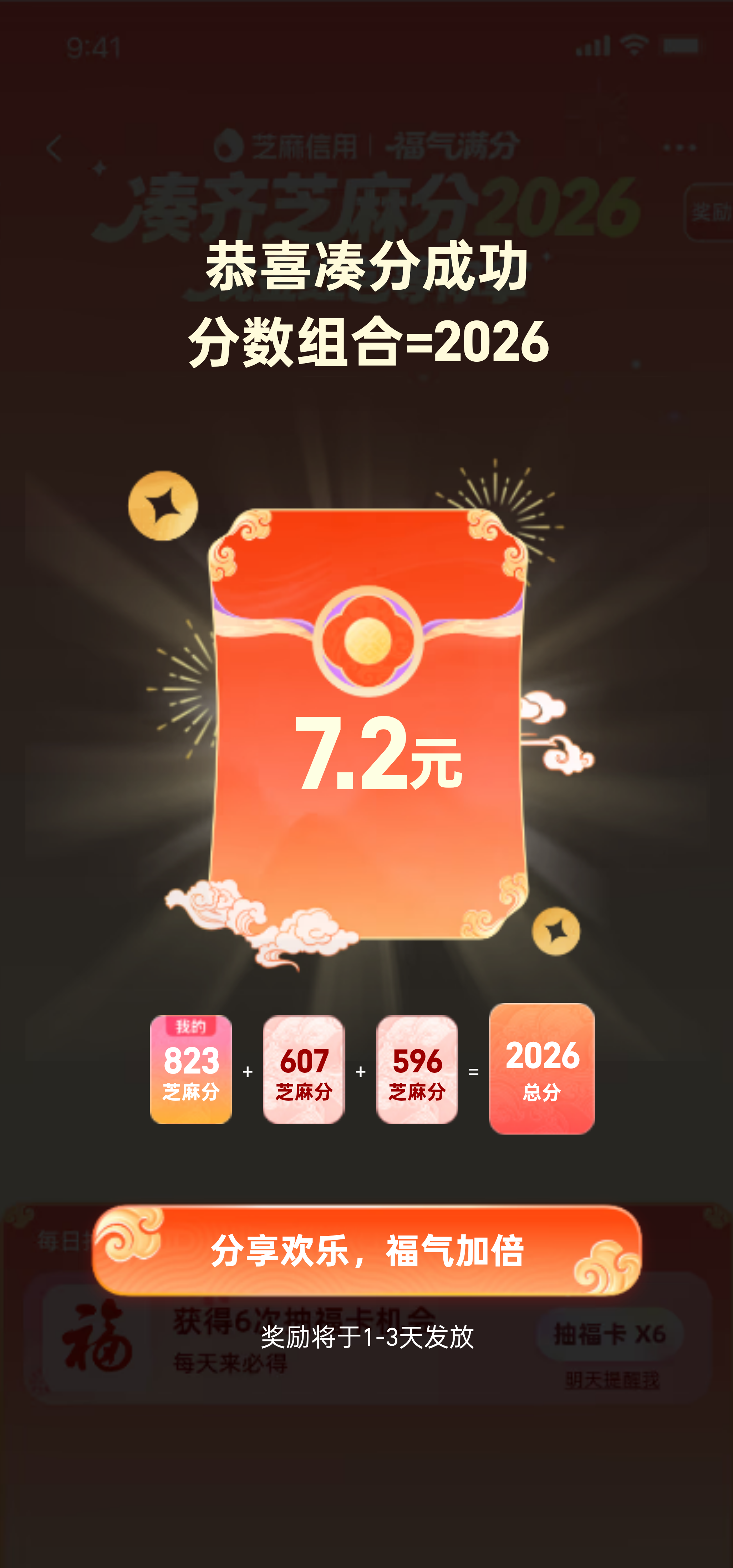 芝麻分组队,这个最好提前找到对应数字的队友再扫,不然很容易超
