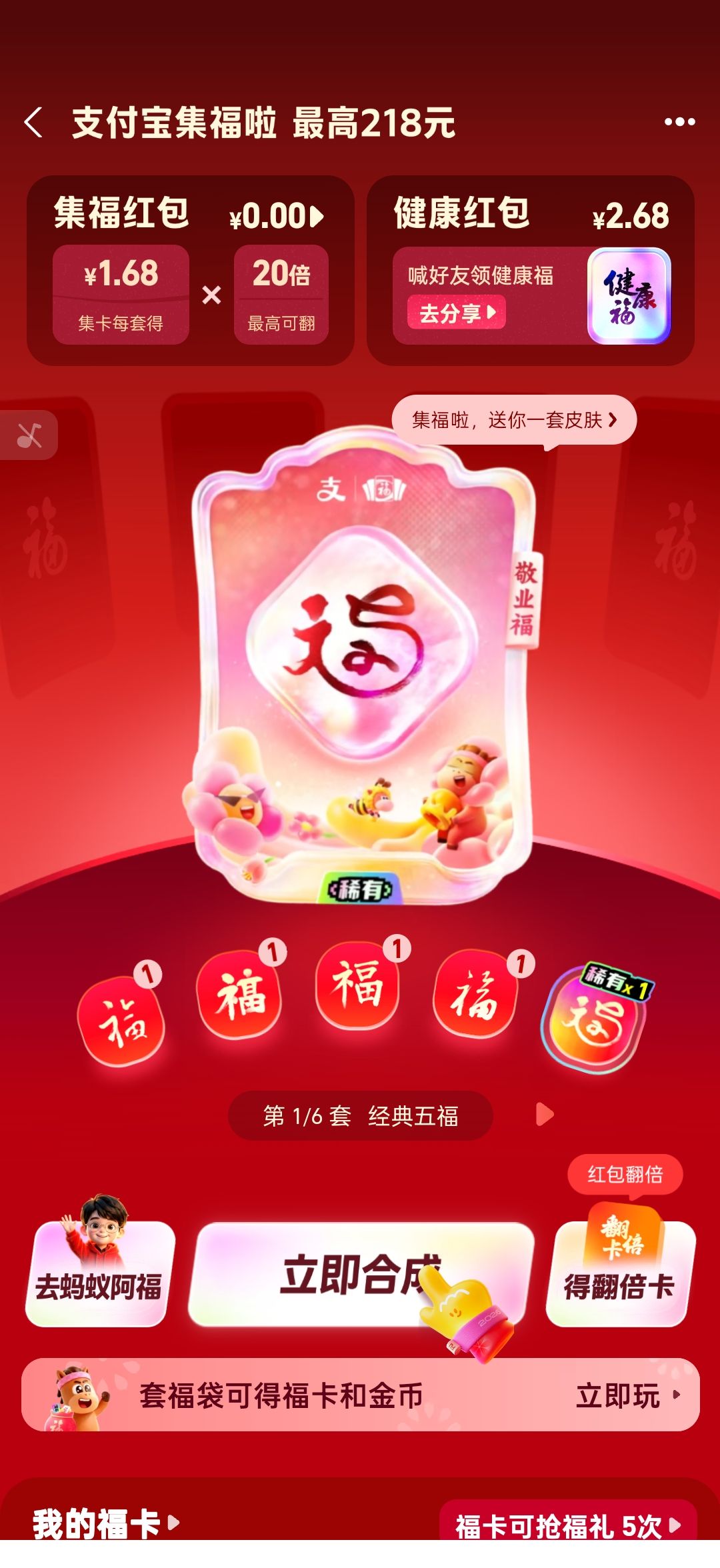 集五福,一开始就结束了,这次可收集6套