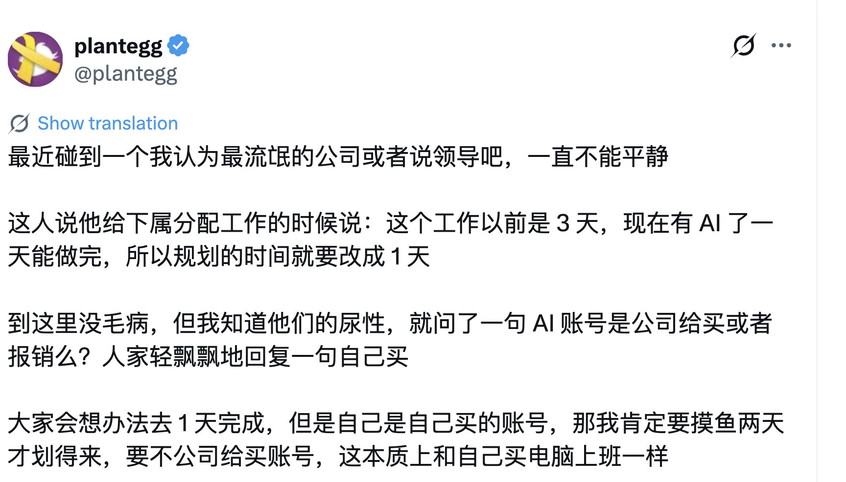 -mingyan-: 程序员老板招聘:我只招自带Claude max的员工,给你付esop