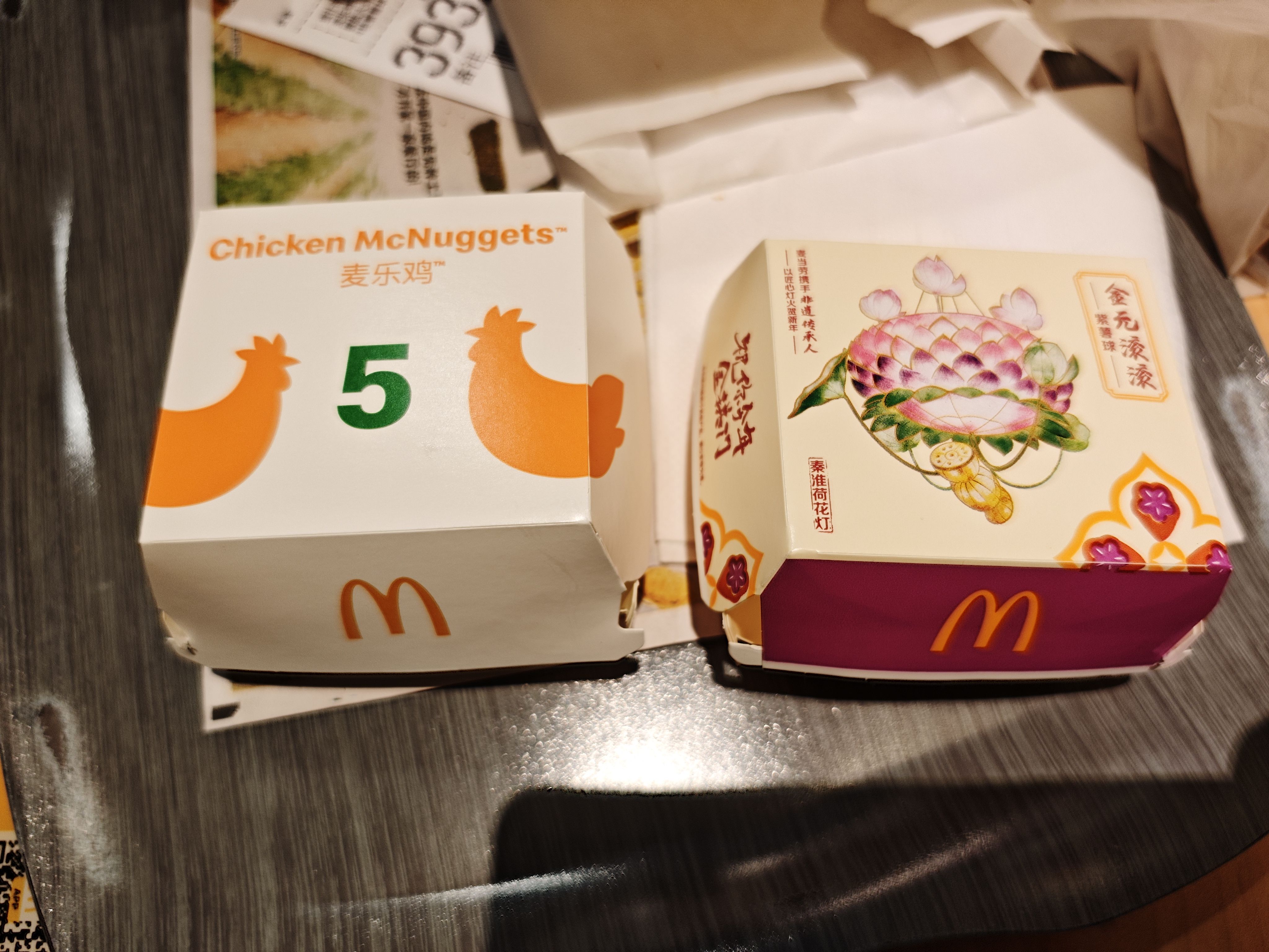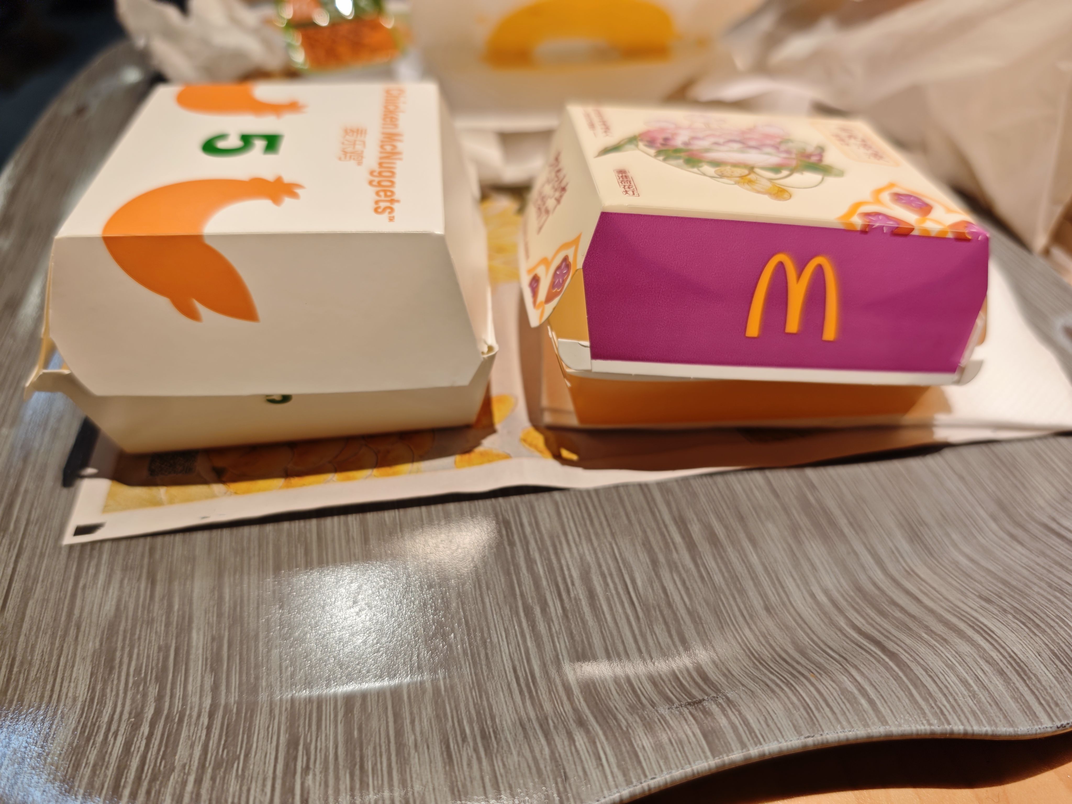 炸鸡块和紫薯球的盒子尺寸非常相近但有细微的差别,乍一看很不理解,摆弄之后我想到两种可能